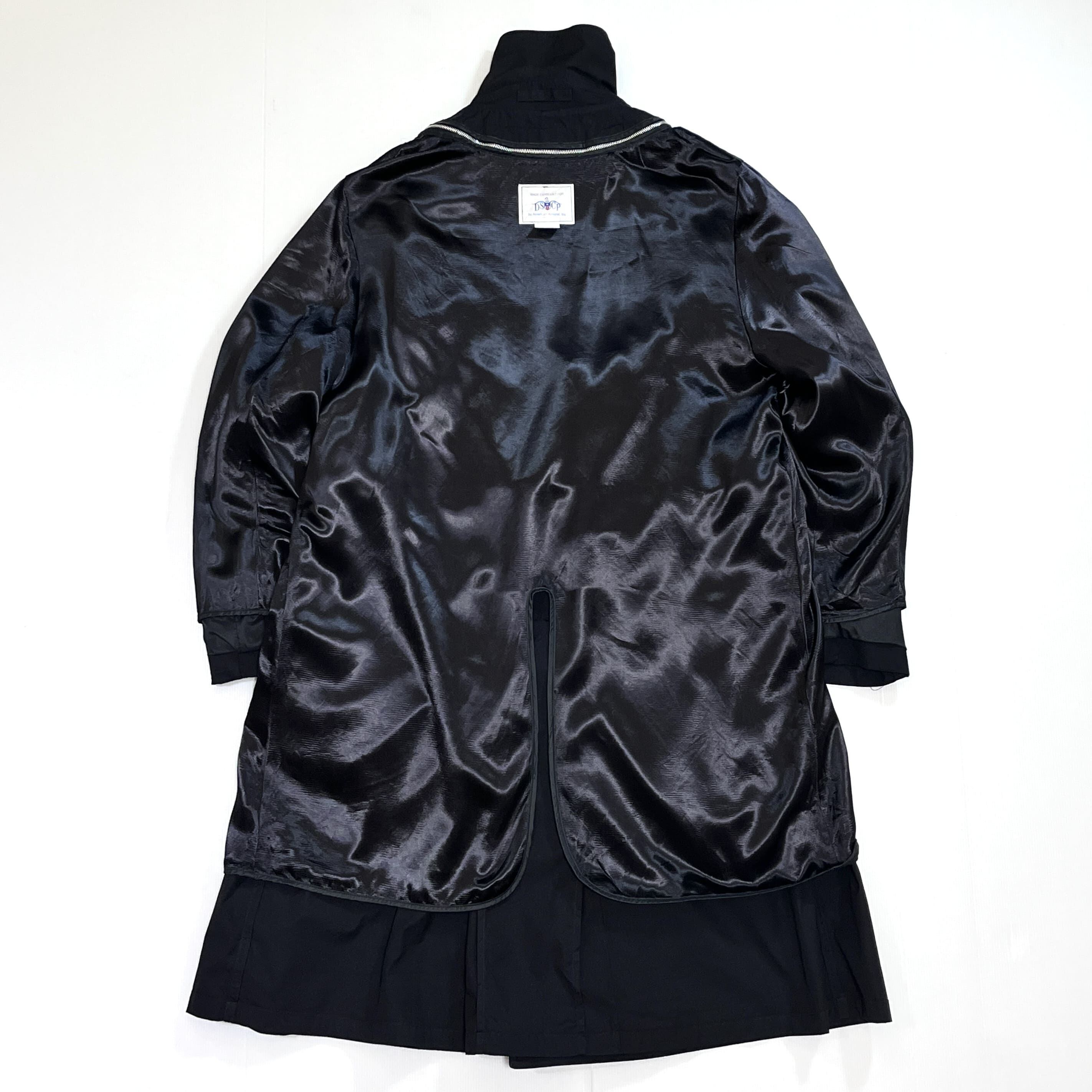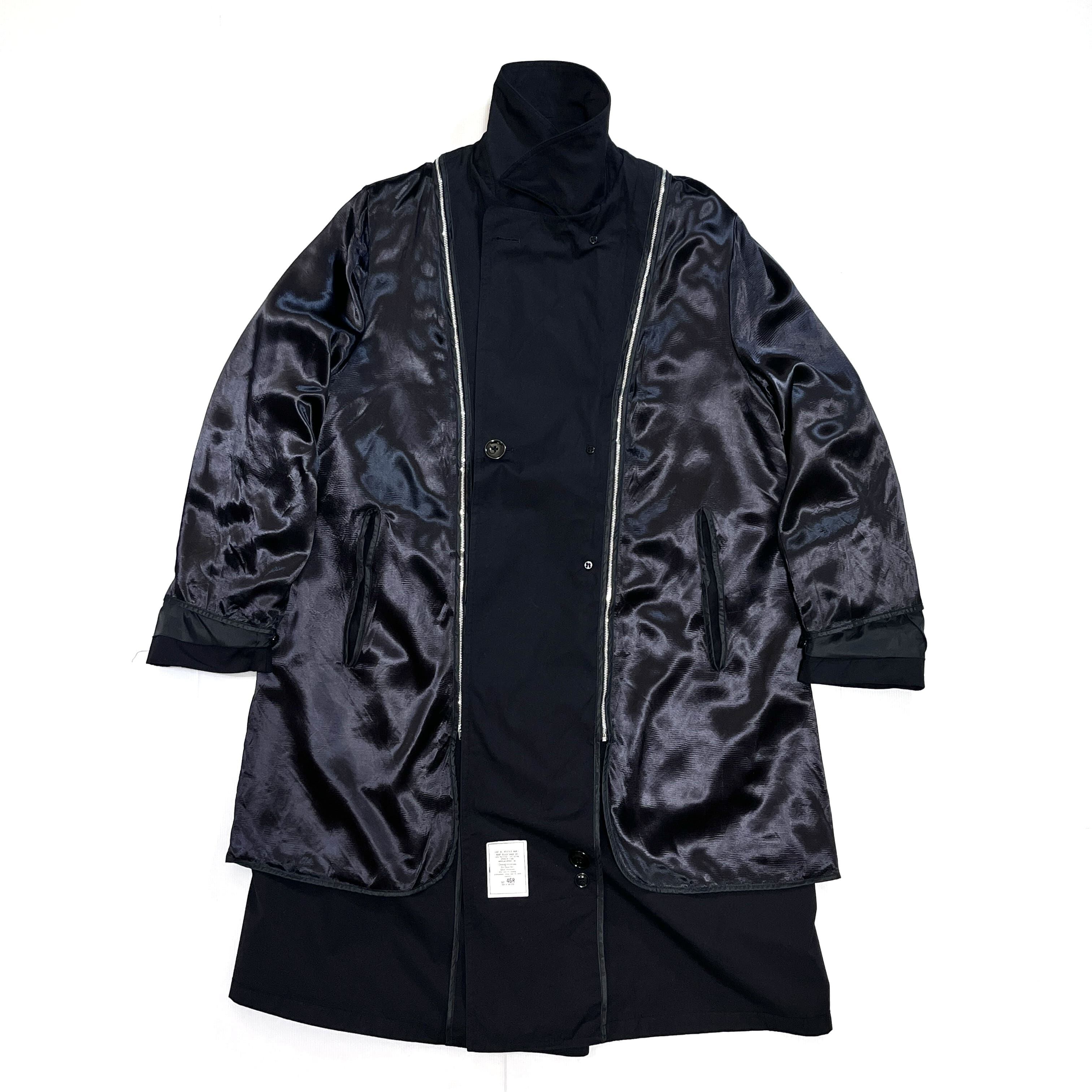 ・1995年USA製アメリカンアパレル社製、左右のどちらでも閉じることができるフロントボタン、取り外し可能のウエストベルト、ファスナーで着脱可能なサテンライナーで冬は暖かく、ライナーを外せば春や秋にも使えて季節に合わせて2wayで楽しめるコートです