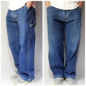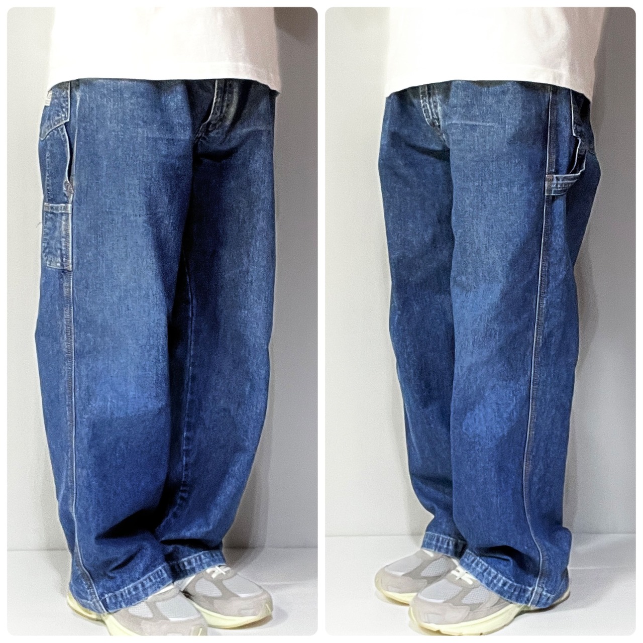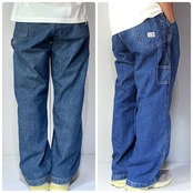 ・わたり幅や裾幅もしっかり広めのゆったりストレートでワイドバギーな極太シルエット、カーハートのダンガリーフィットと似たよく形でさらにワイドな感じです