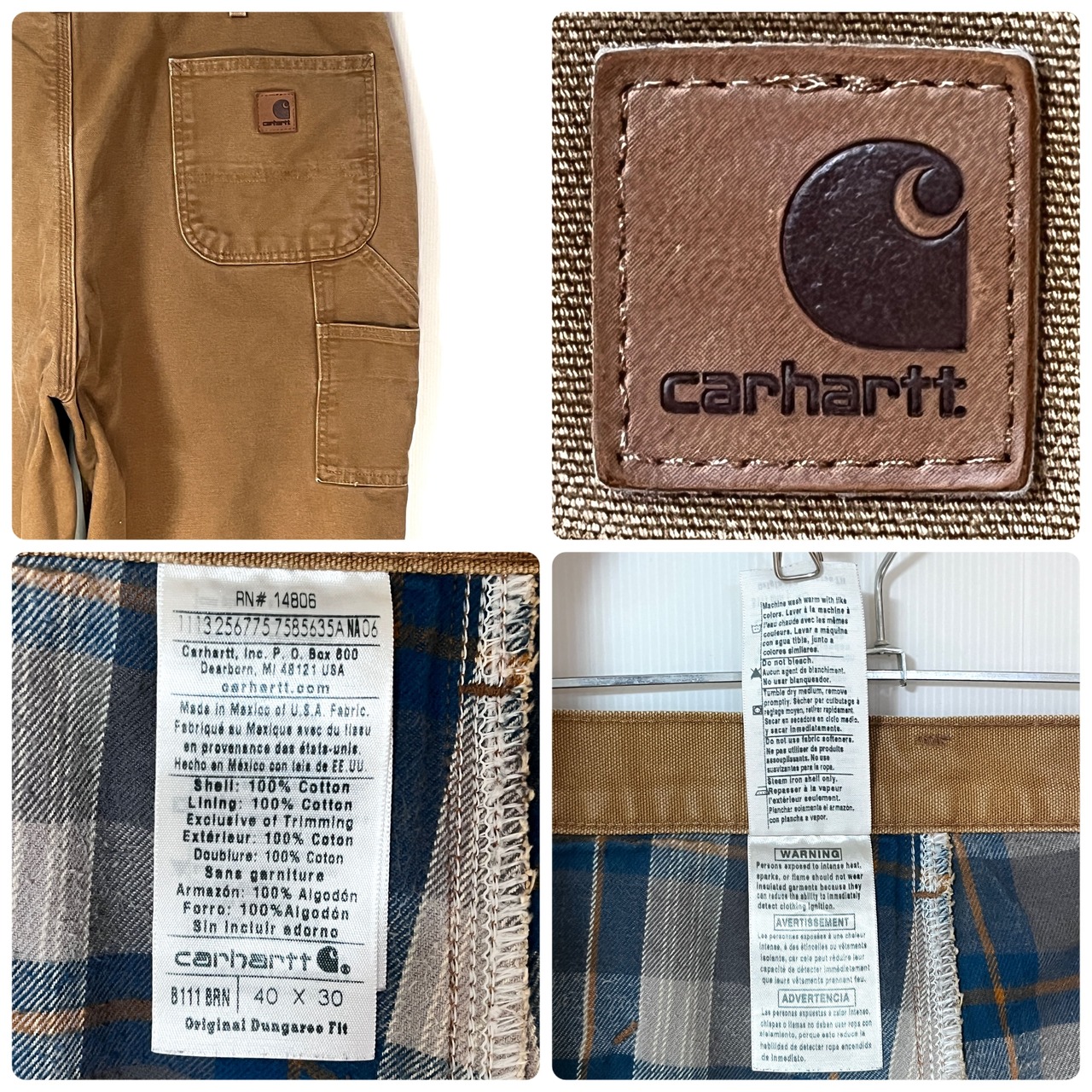 B111-BRN 1017 HEAVY COTTON CANVAS DUCK FLANNEL LINED PAINTER PANTS Original Dungaree Fit カーハート ヘビー ダック地 チェック フランネル ネルライナー ペインターパンツ オリジナルダンガリーフィット ワークパンツ メンズ ボトムス USA素材 メキシコ製 ネル裏地付き リアルワーク 防寒 防風 アウトドアウェア バイクウェア
