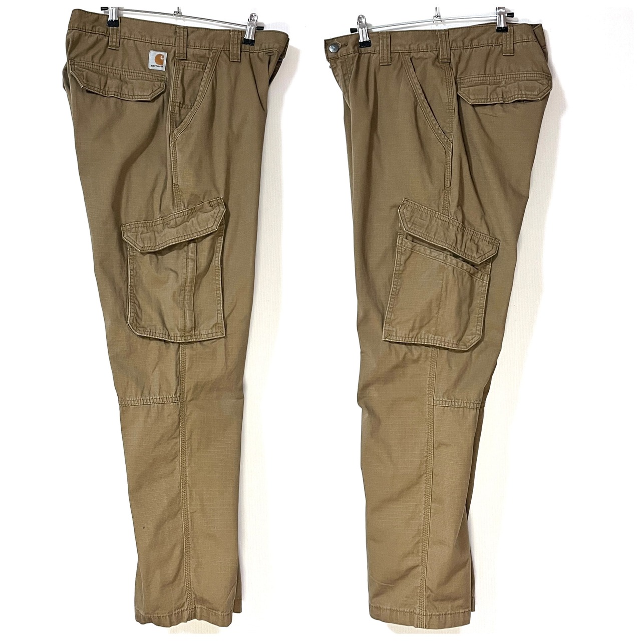 ・Force®コットンリップストップ素材、YKKフロントジップ、ベルクロフラップのカーゴポケット、刺繍ロゴピスネーム、立体裁断のヒザ裏とマチ付きの股、フェード感とアタリの出た雰囲気抜群のコヨーテカラー