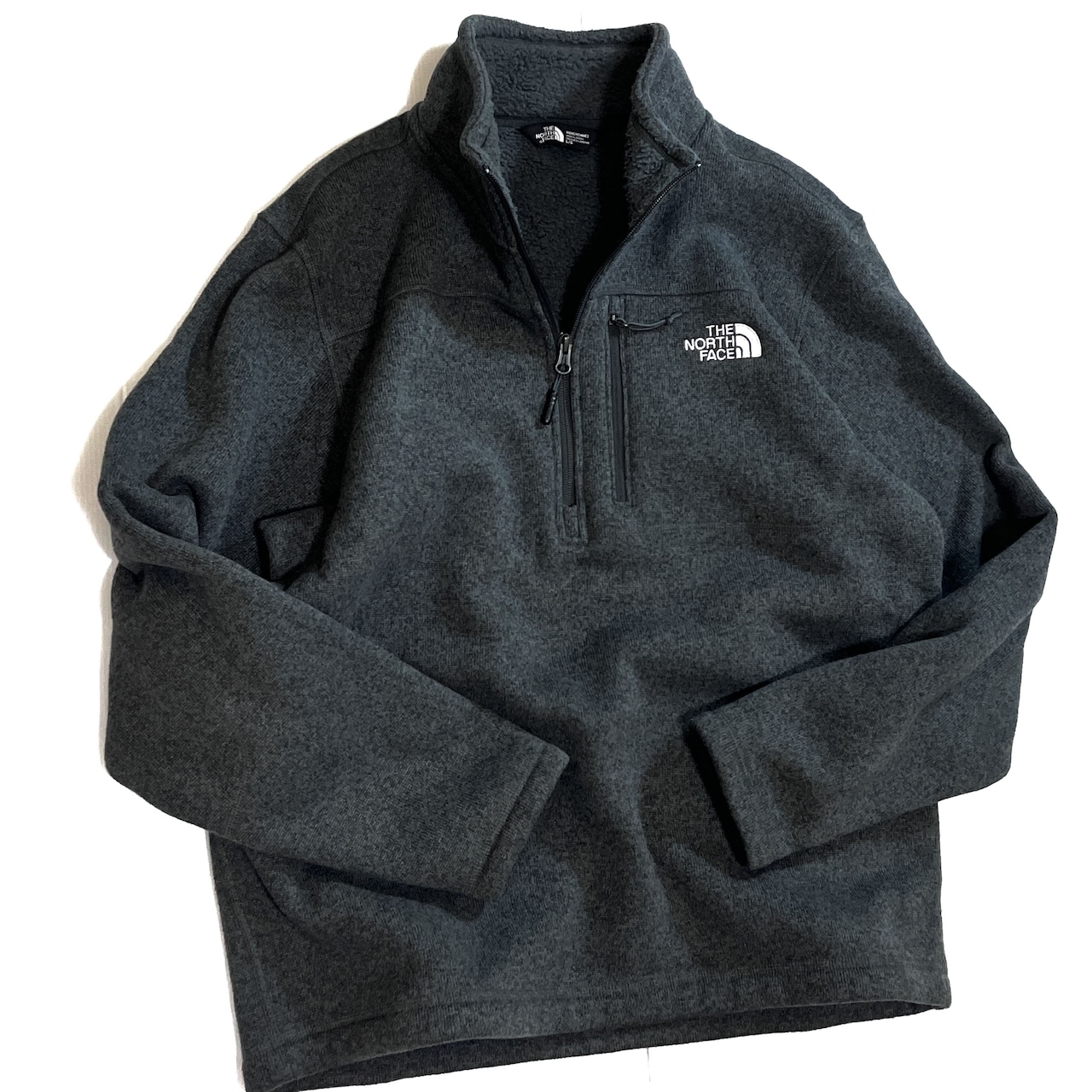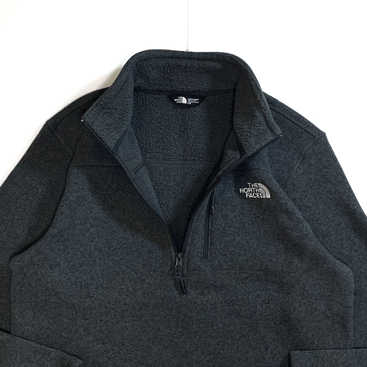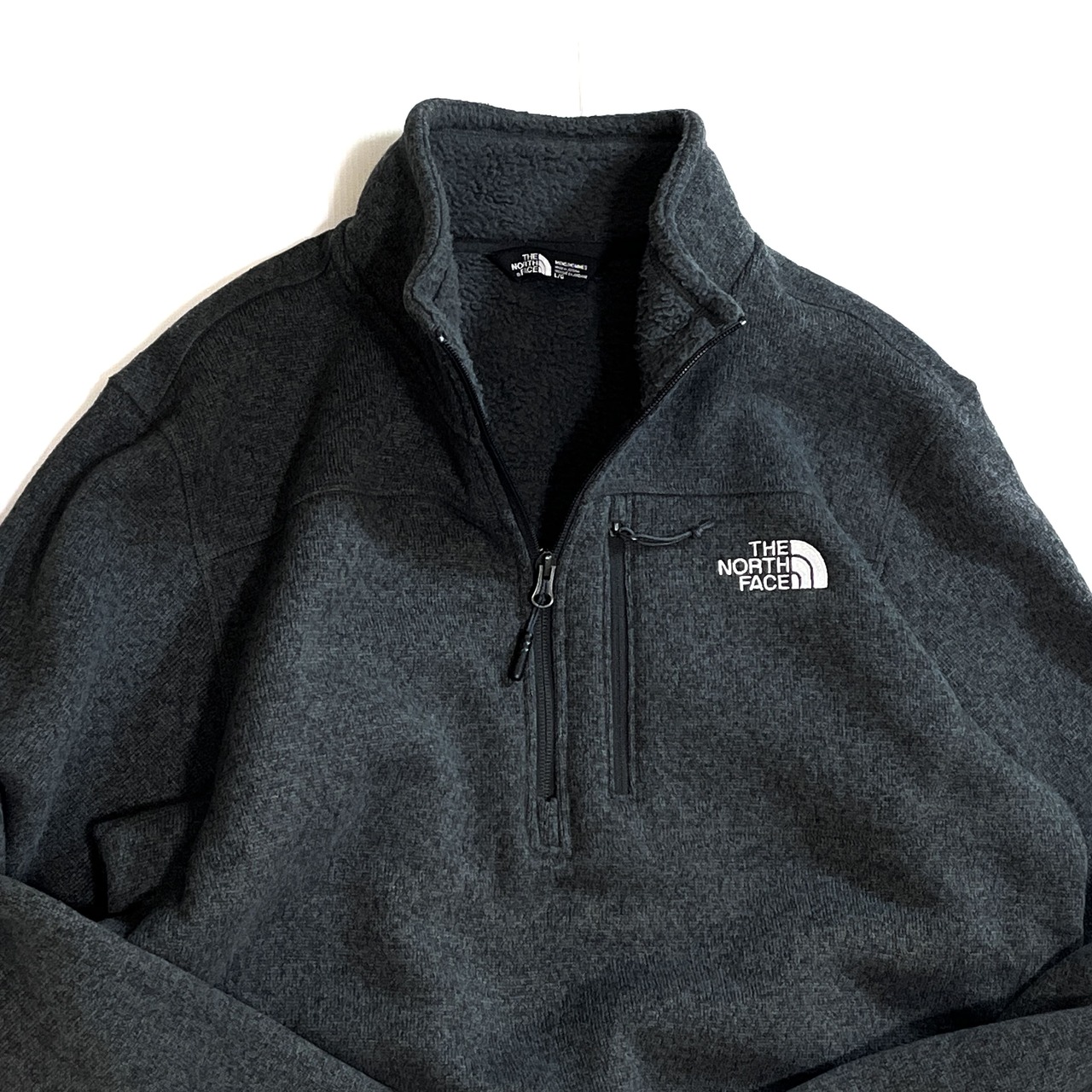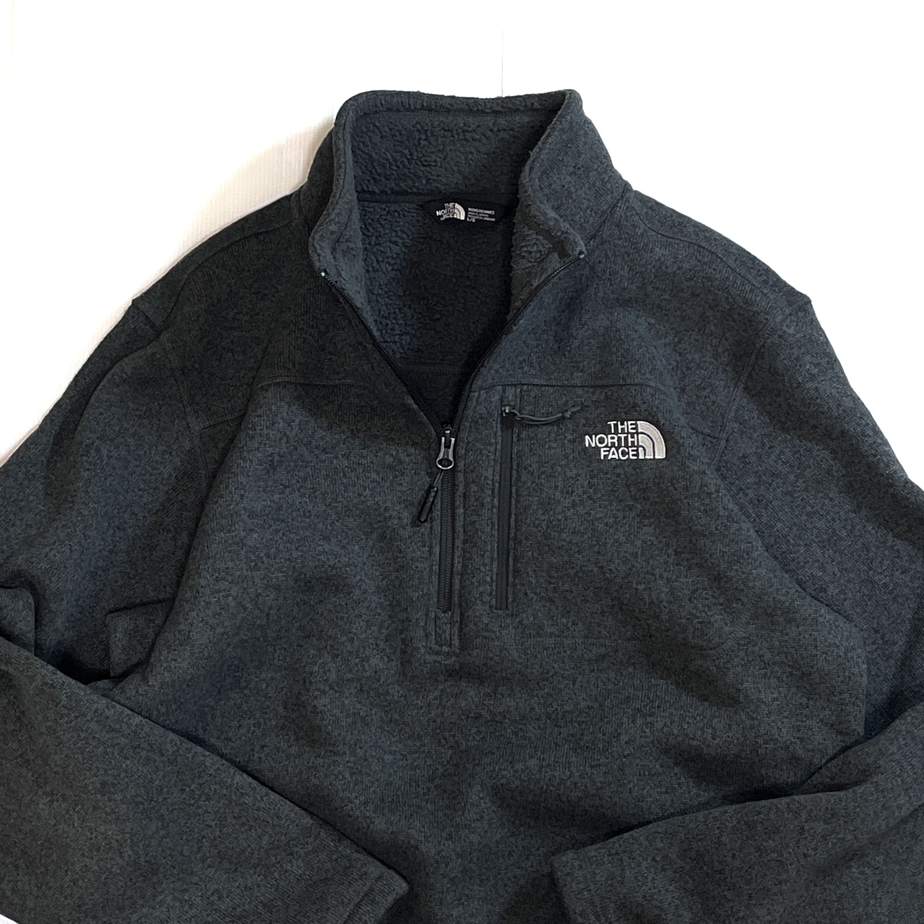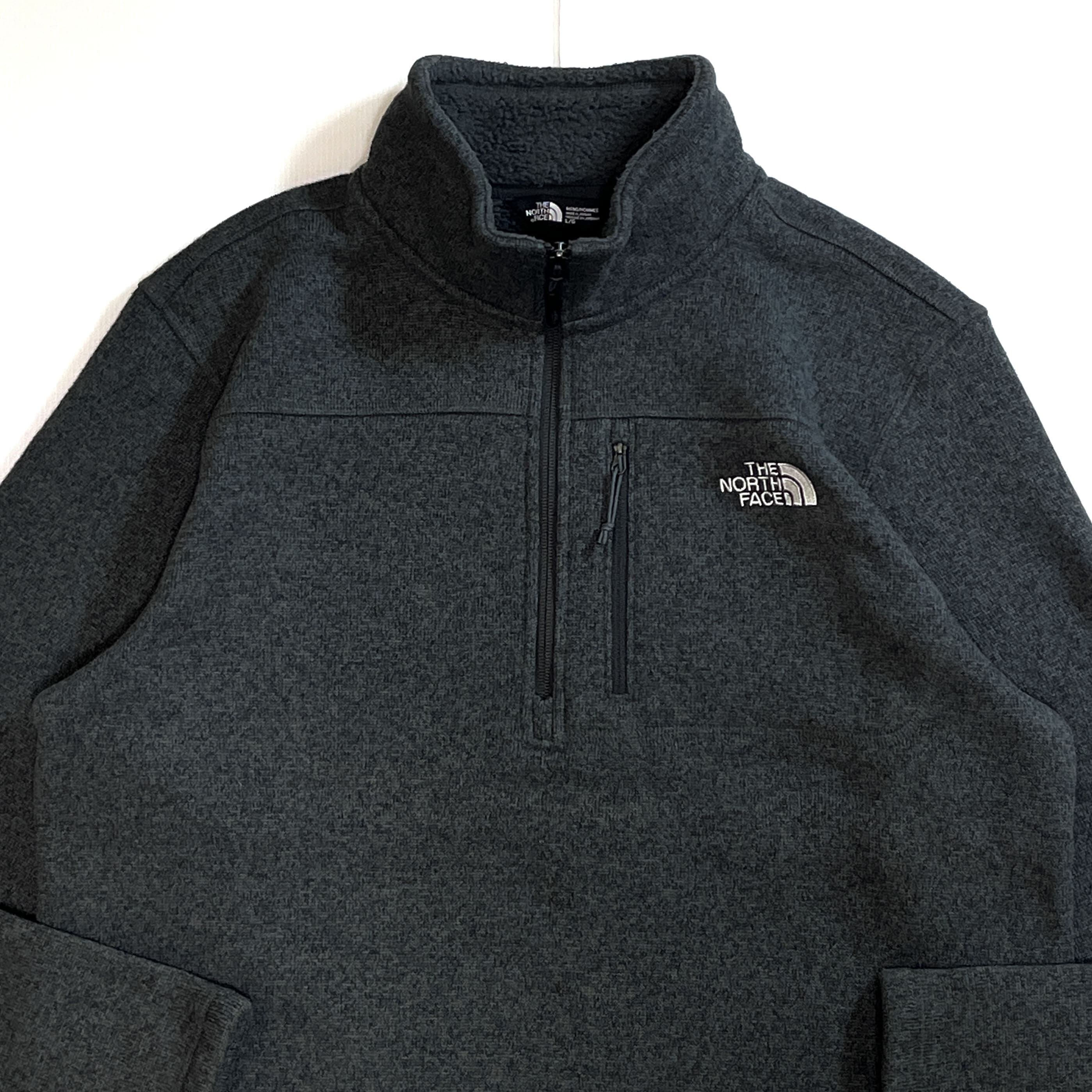 美品 THE NORTH FACE ザ ノースフェイス 【MEN'S L】ハーフジップ パイル ボアフリースライナー フリースジャケット チャコールグレー10s Gordon Lyons 1/4-Zip Half Zip Fleece 1/2 ZIP ワンポイント刺繍ロゴ 肉厚 裏ボアフリース ライトアウター ジャージ メンズ トップス キャンプ アウトドア p25113400