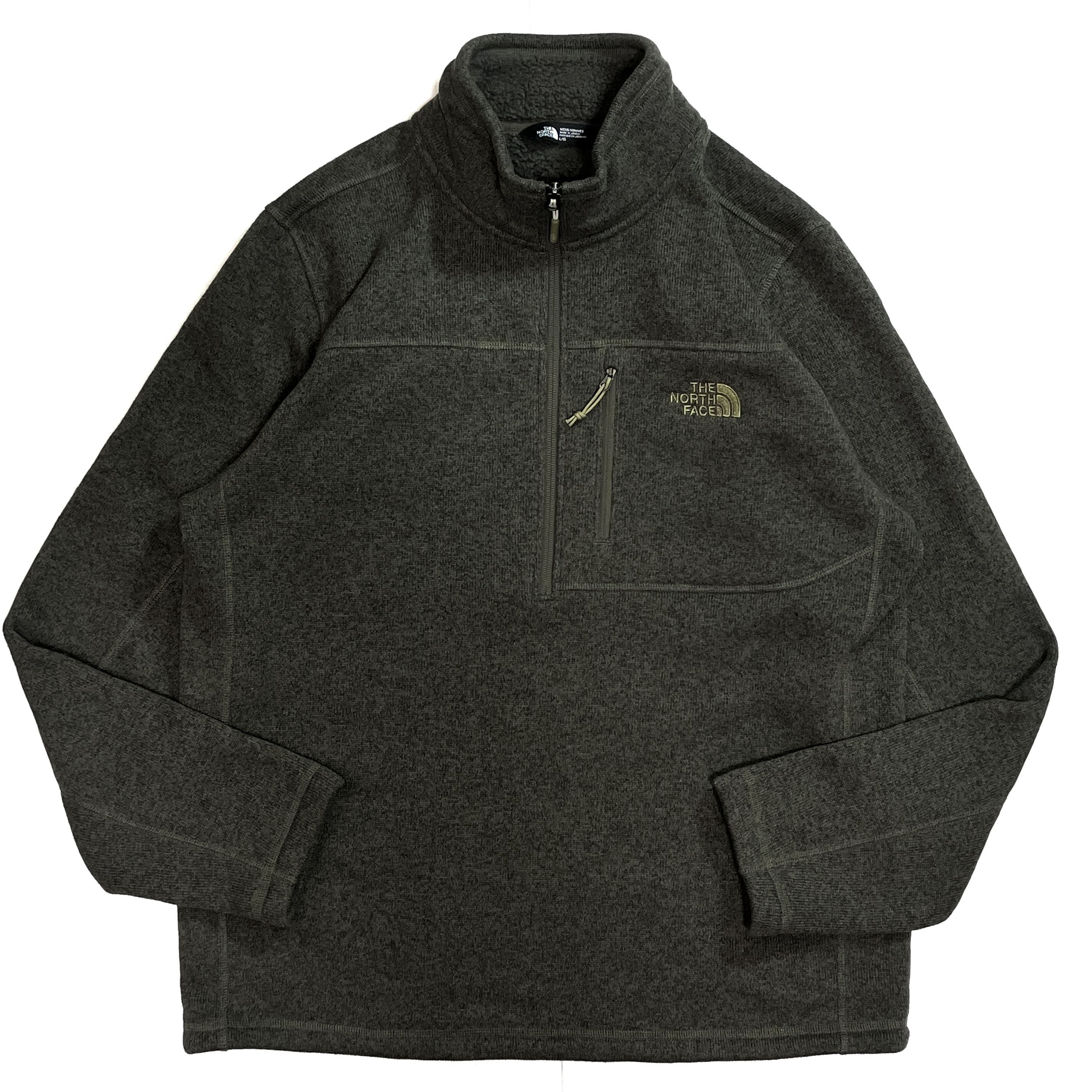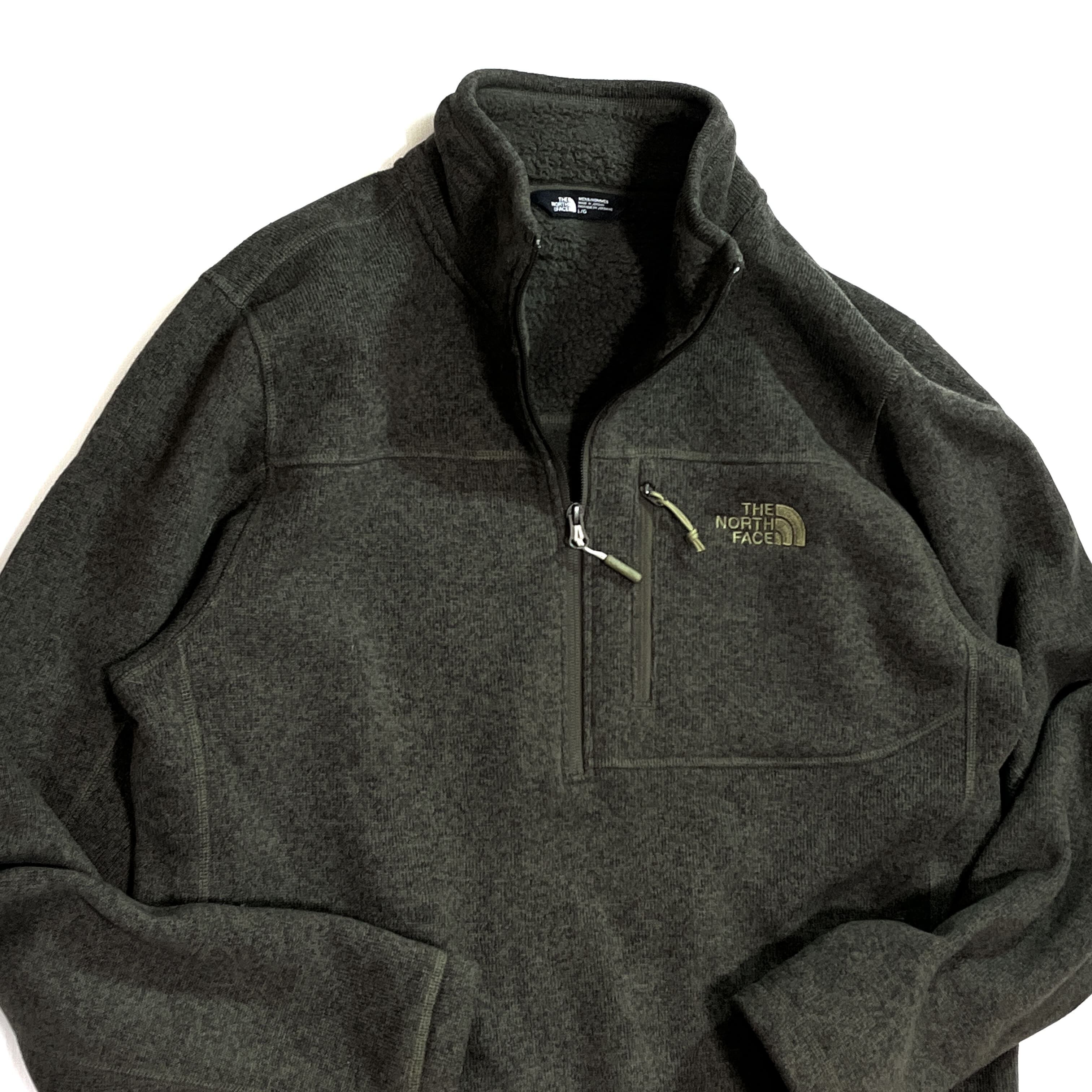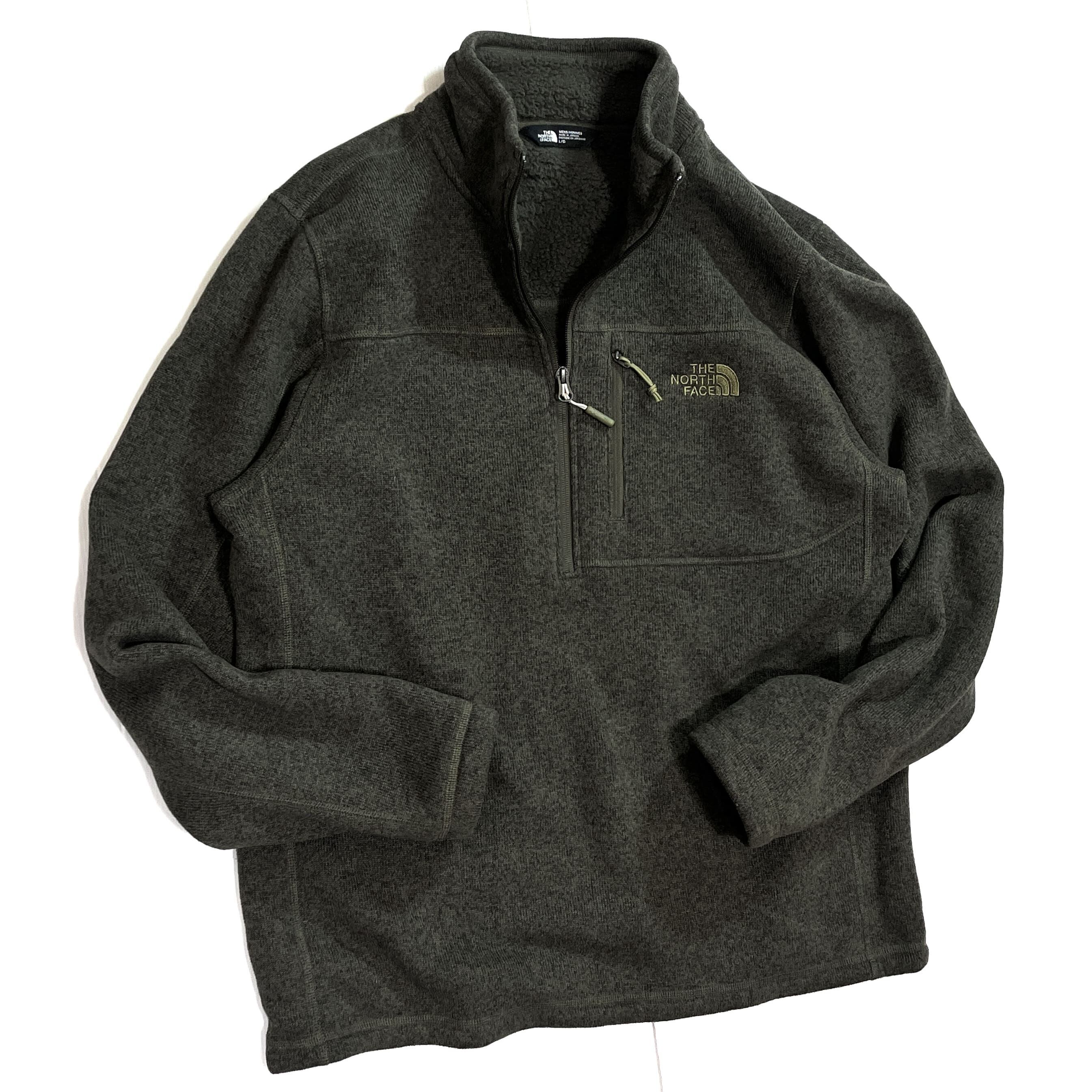 美品 THE NORTH FACE ザ ノースフェイス 【MEN'S L】ハーフジップ パイル ボアフリースライナー フリースジャケット カーキ オリーブグリーン 10s Gordon Lyons 1/4-Zip Half Zip Fleece 1/2 ZIP ワンポイント刺繍ロゴ 肉厚 裏ボアフリース ライトアウター ジャージ メンズ トップス キャンプ アウトドア p25113399
