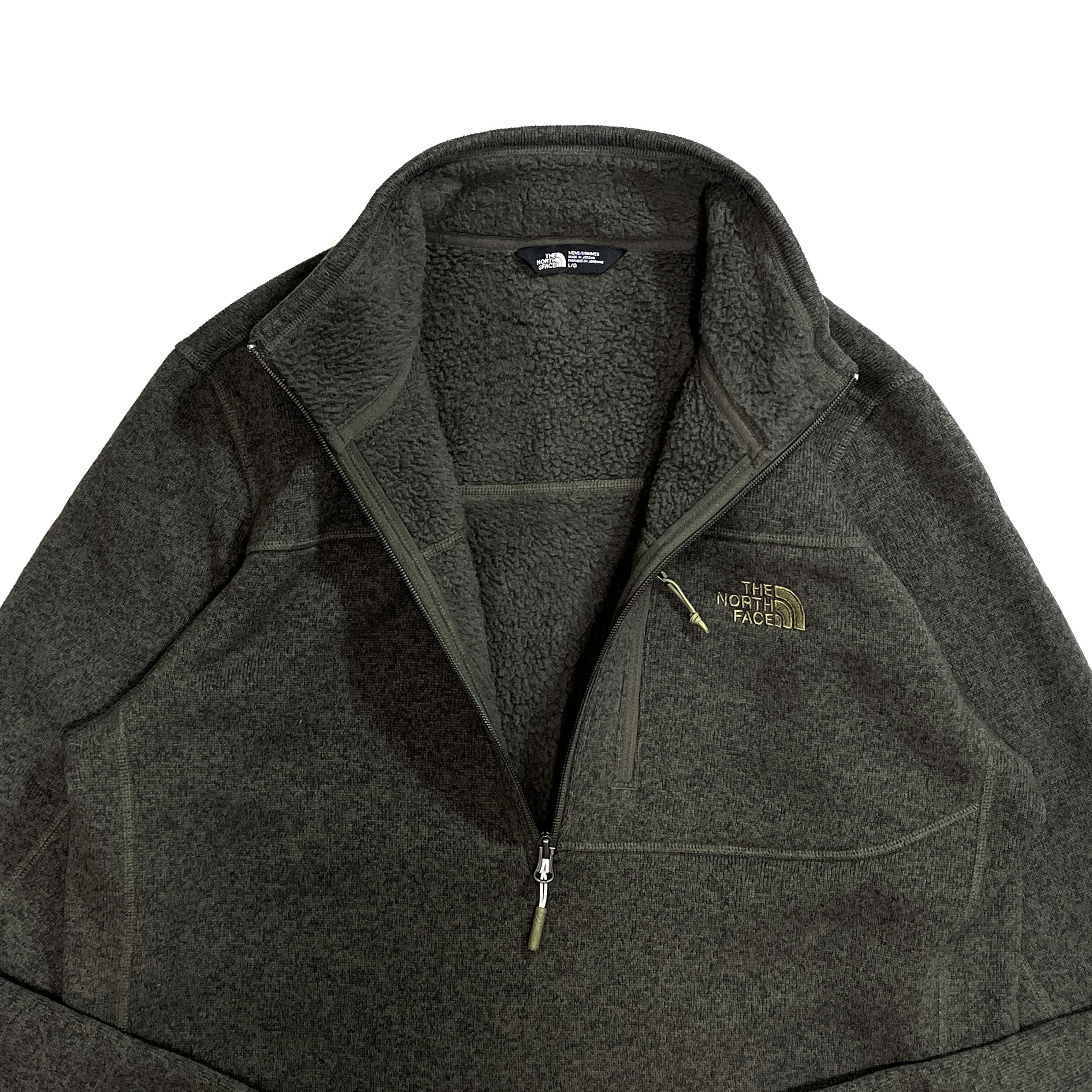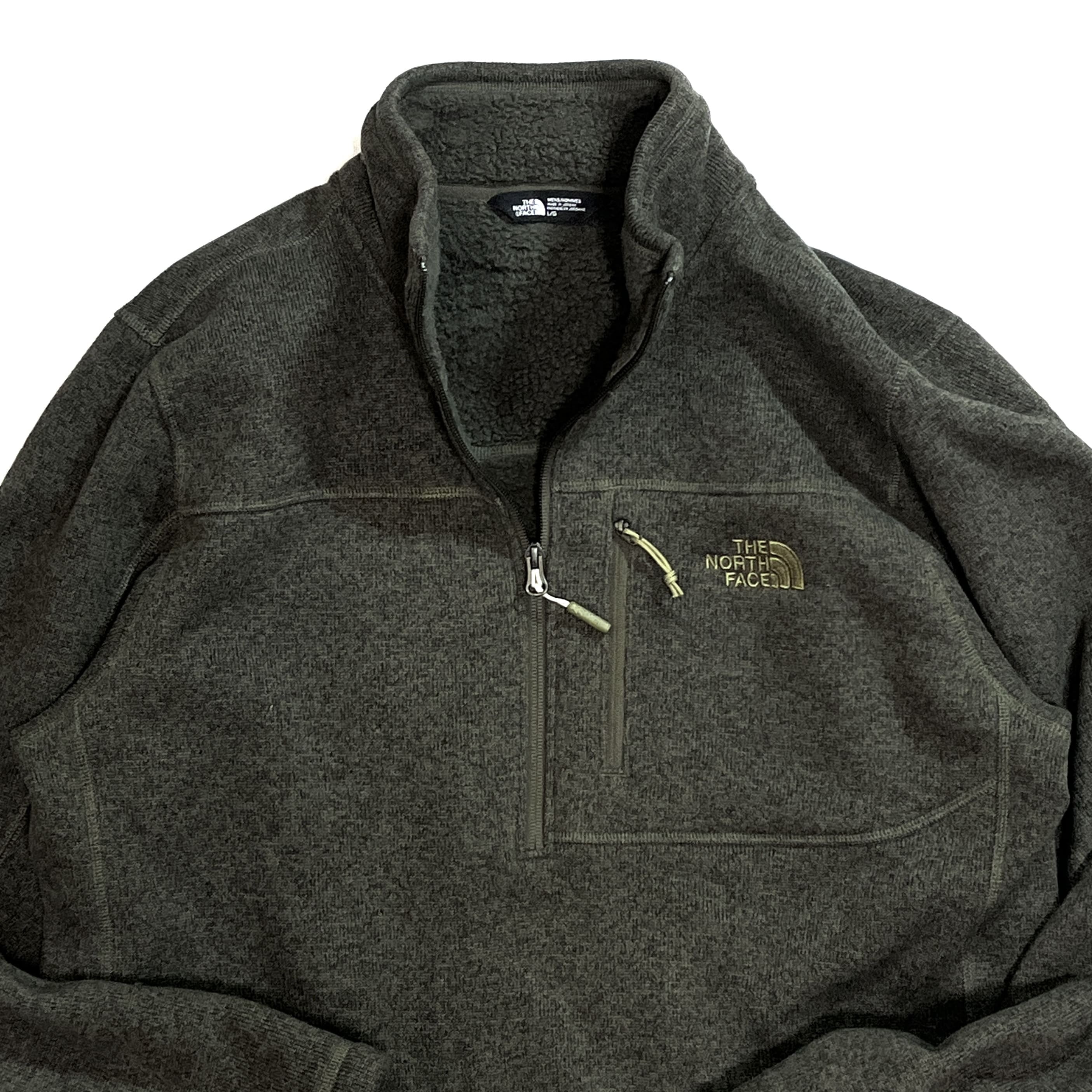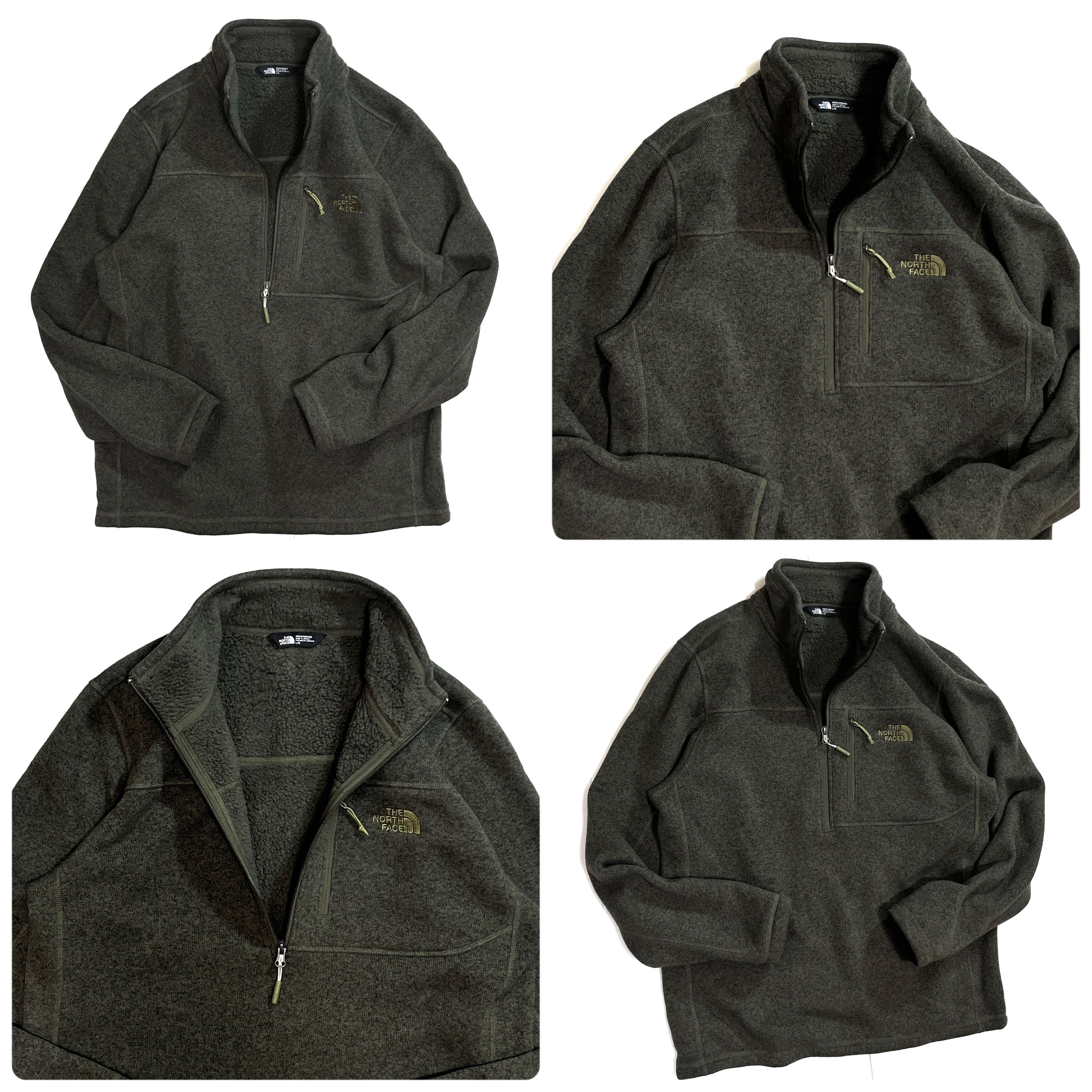 美品 THE NORTH FACE ザ ノースフェイス 【MEN'S L】ハーフジップ パイル ボアフリースライナー フリースジャケット カーキ オリーブグリーン 10s Gordon Lyons 1/4-Zip Half Zip Fleece 1/2 ZIP ワンポイント刺繍ロゴ 肉厚 裏ボアフリース ライトアウター ジャージ メンズ トップス キャンプ アウトドア p25113399