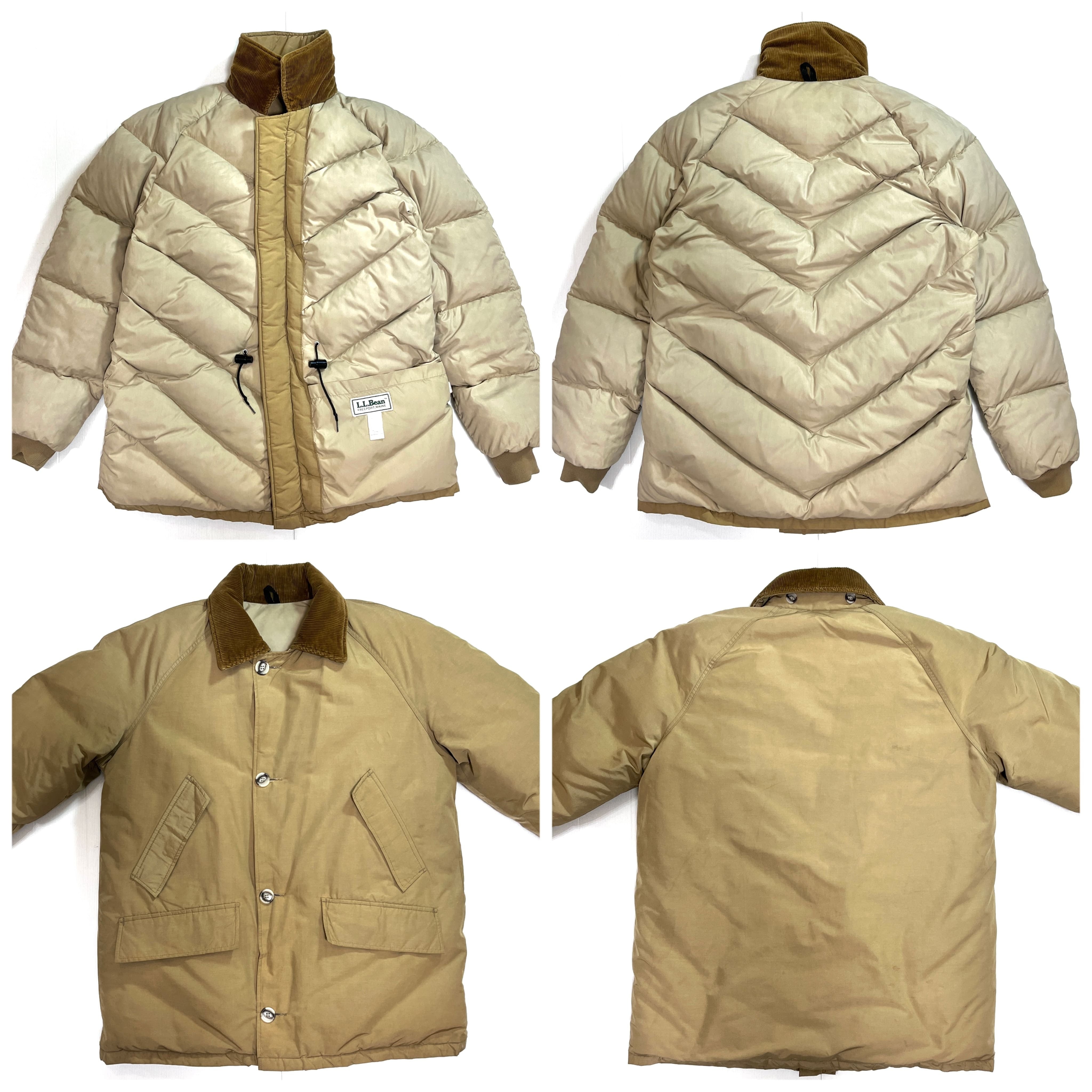80s USA製 L.L.Bean GOOSE DOWN MACKINAW JACKET 【TAN】【LARGE】 エルエルビーン 当時物 オリジナル ヴィンテージ マッキーノ ダウンジャケット タン ベージュ グースダウン 太畝コーデュロイ襟 襟コーズ ビーンズダウンマッキノー 最高級上位モデル 超防寒 80年代製 64クロス ロクヨン ダウンパンパン 1980年代 TMタグ f21123408 | June