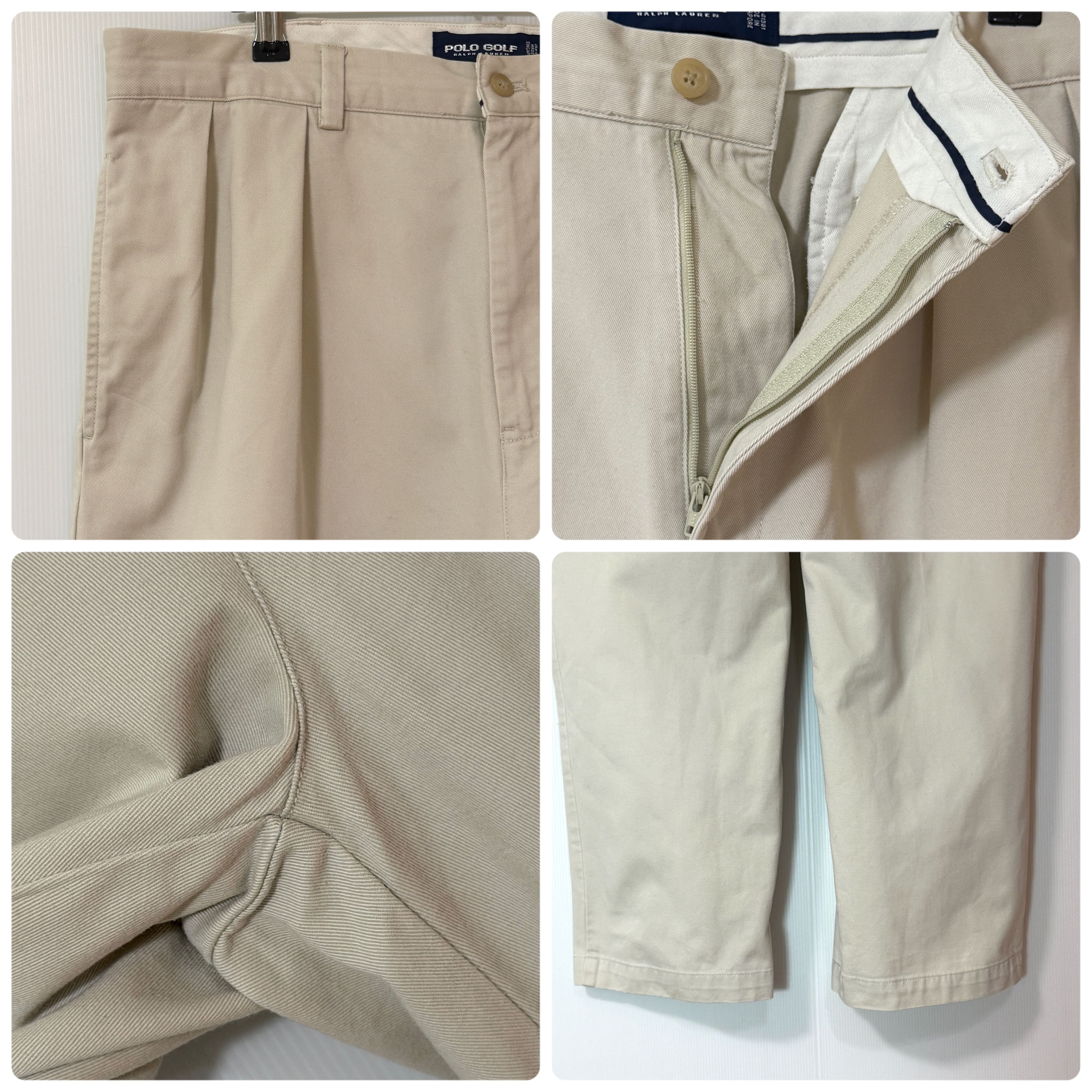 90s POLO GOLF Ralph Lauren CLASSIC GOLF PANT TWO TUCK PLEATED CHINO TROUSERS ポロゴルフ ラルフローレン クラシックゴルフパンツ ツータック チノパン 2タック インプリーツ スラックス トラウザース パンツ ワイドバギー テーパード メンズ ボトムス ポロチノ 100% COTTON 厚手 1990年代 ゴールデンサイズ