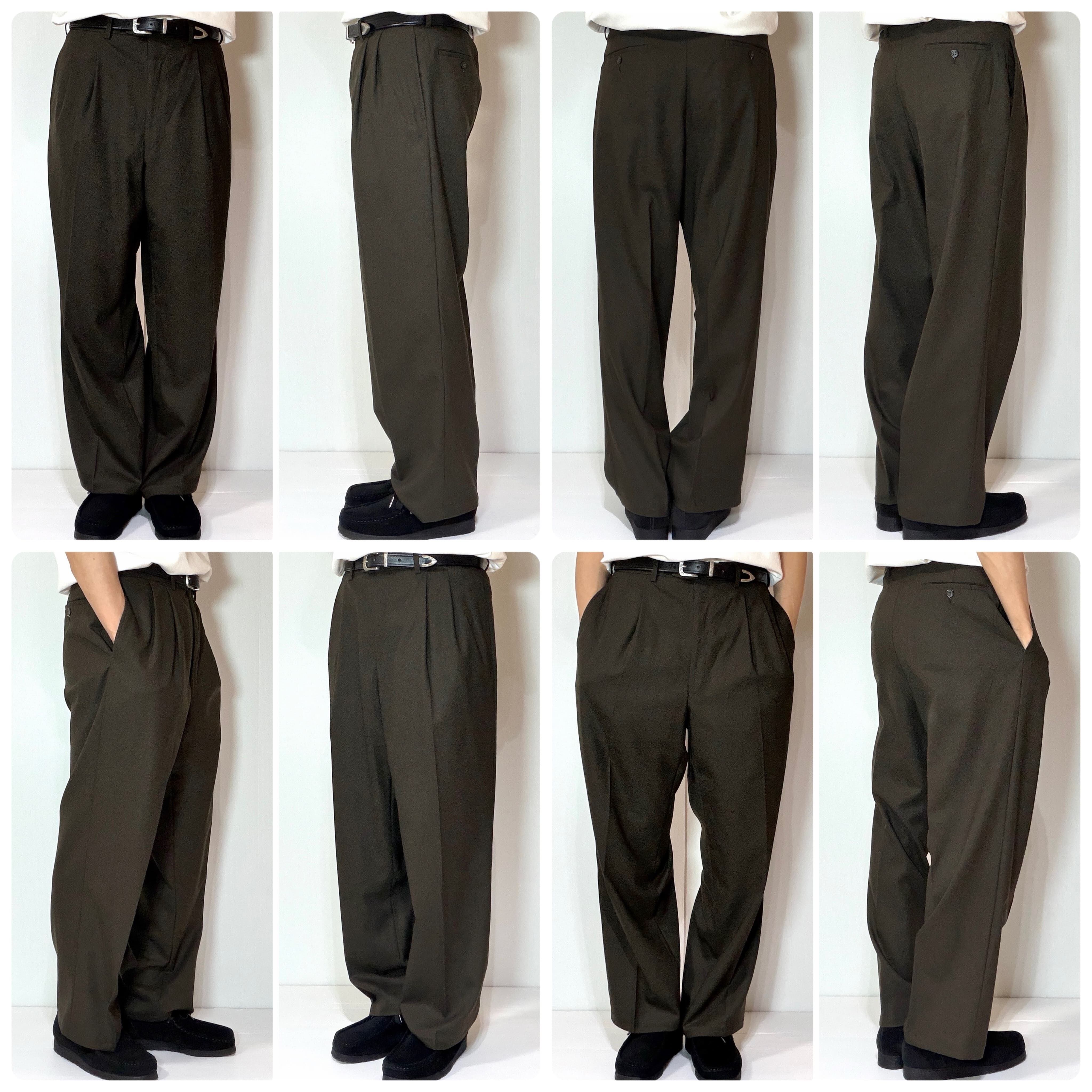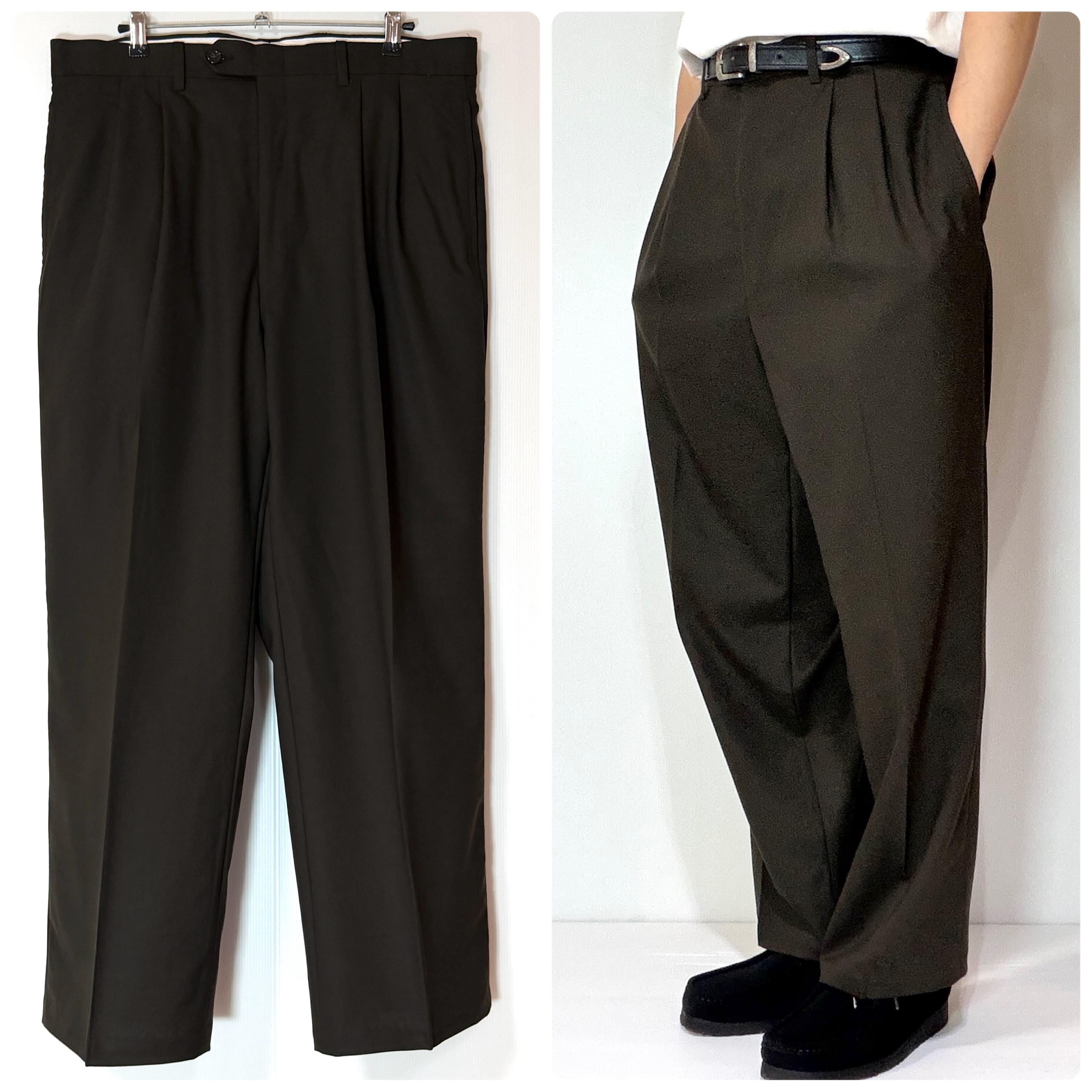 90s LAUREN ローレン TOTAL COMFORT トータル コンフォート ウール ツータック スラックス【W34L34】【実寸W34.5x L27.5】【ダークブラウン/こげ茶/DARK BROWN】薄手 サマーウール メンズ ドレス パンツ ボトムス ゴールデンサイズ メキシコ製 1990年 ゴールデンサイズ v25033129