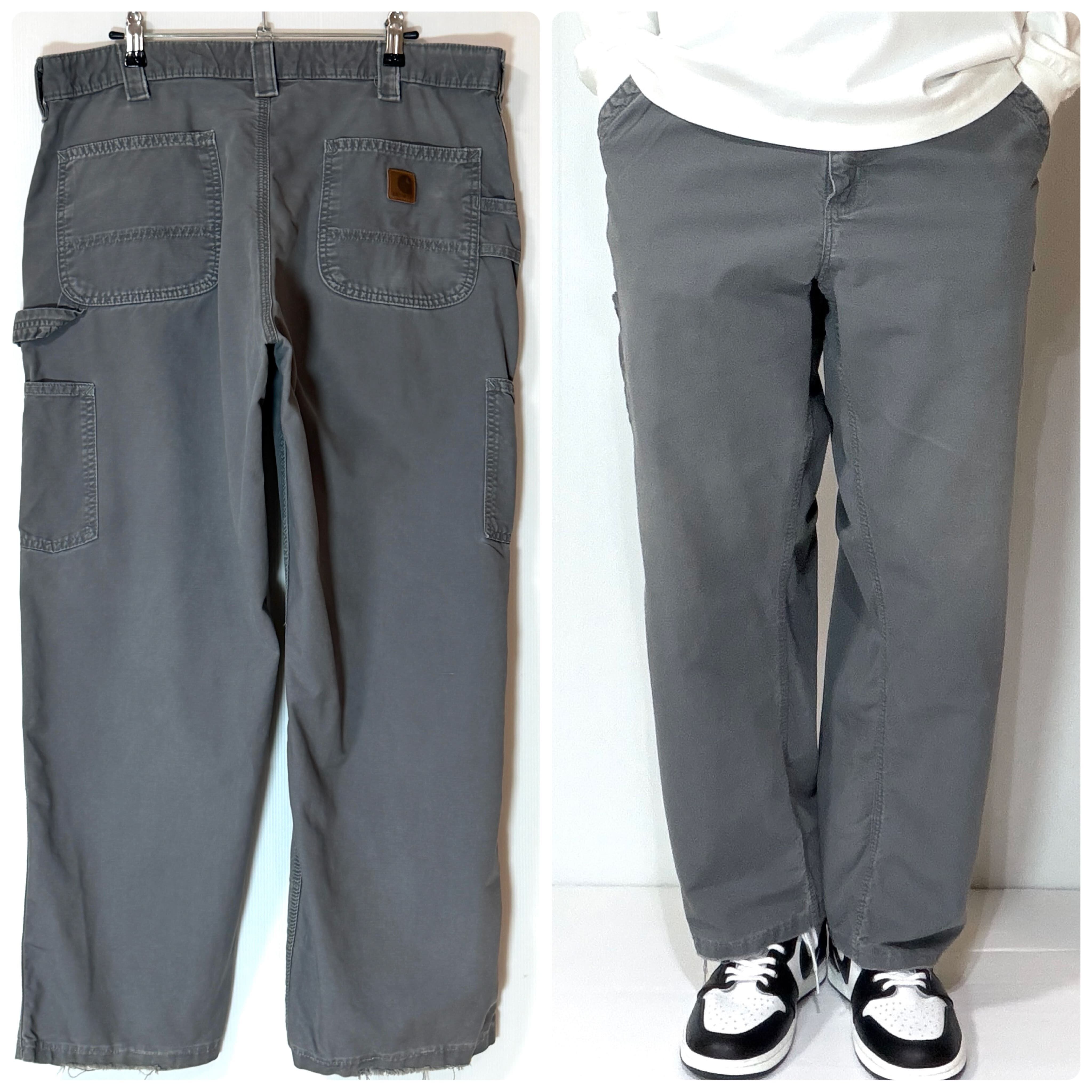 US企画 Carhartt カーハート ライトダック ペインターパンツ【実寸W36.5L28】【FAT/ファティーグ/チャコールグレー】B151 FAT Light Duck Painter Pants DUNGAREE FIT CANVAS WORK PANT ワンポイントレザーピスネーム レザーパッチ ライトオンス ダック地 ワークパンツ メンズ ボトムス ダンガリーフィット グッドフェード レアカラー US規格 アメリカ流通 雰囲気抜群p25123431