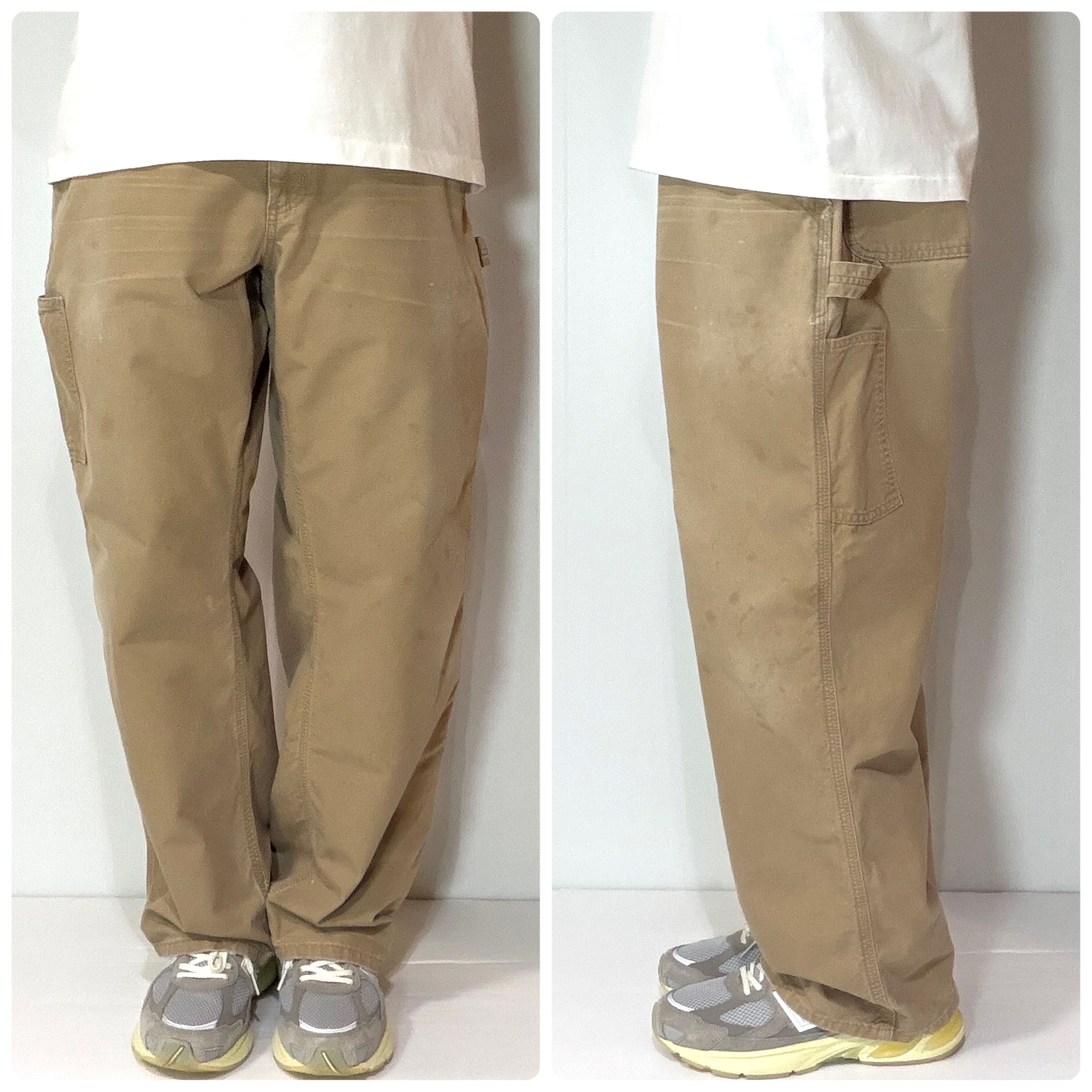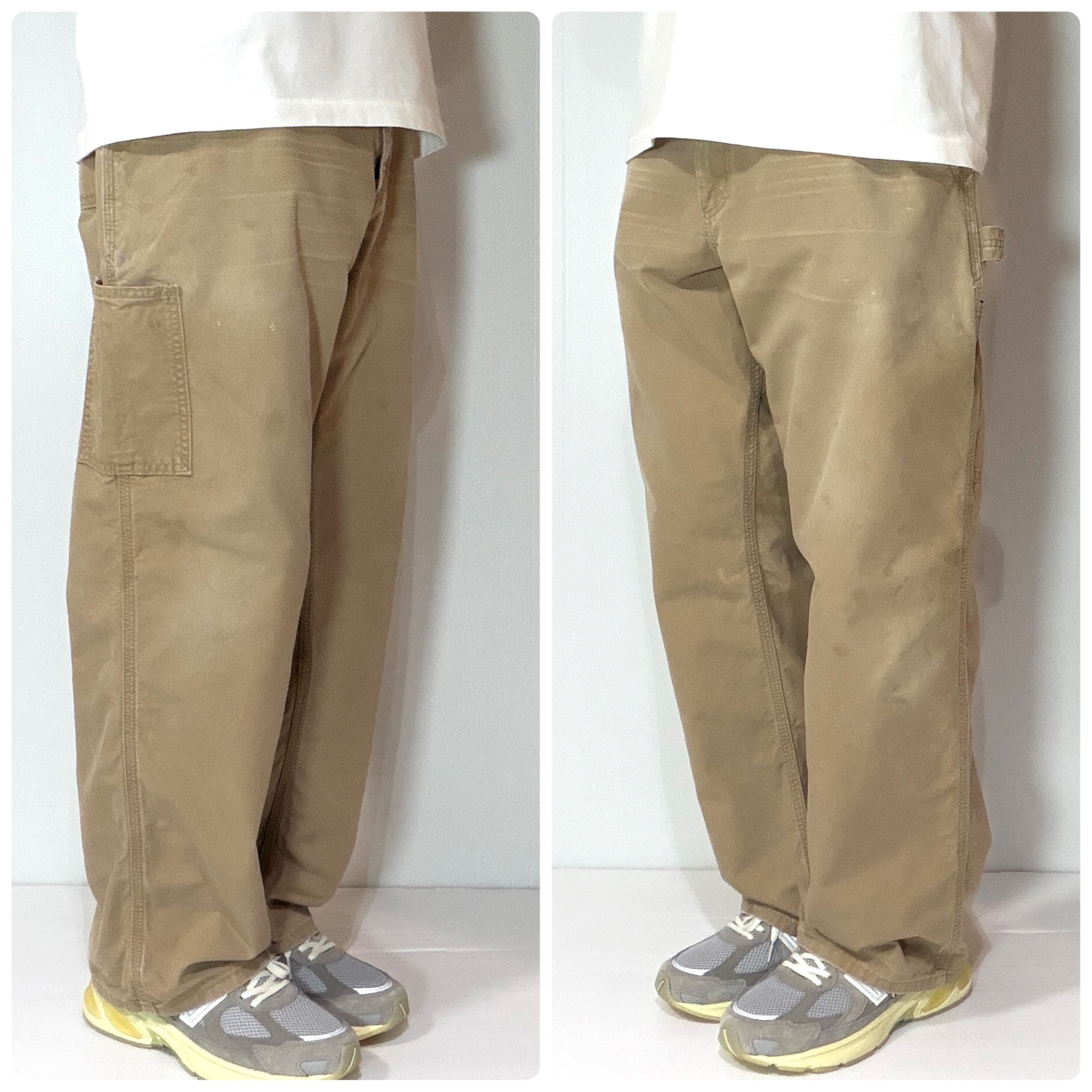 鬼ヒゲ Carhartt カーハート B151 DKH ライトダック ペインターパンツ Loose Original Fit【W38L30】【DKH/ダークカーキ/ベージュ】 Light Duck Painter Pants CANVAS WORK PANT ワンポイントレザーピスネーム レザーパッチ ライトオンスダック地 ワークパンツ メンズ ボトムス ルーズオリジナルフィット リアルワーク 鬼ヒゲグッドフェード 極太ワイドバギー 10s メキシコ製 US企画 アメリカ流通 p25113395