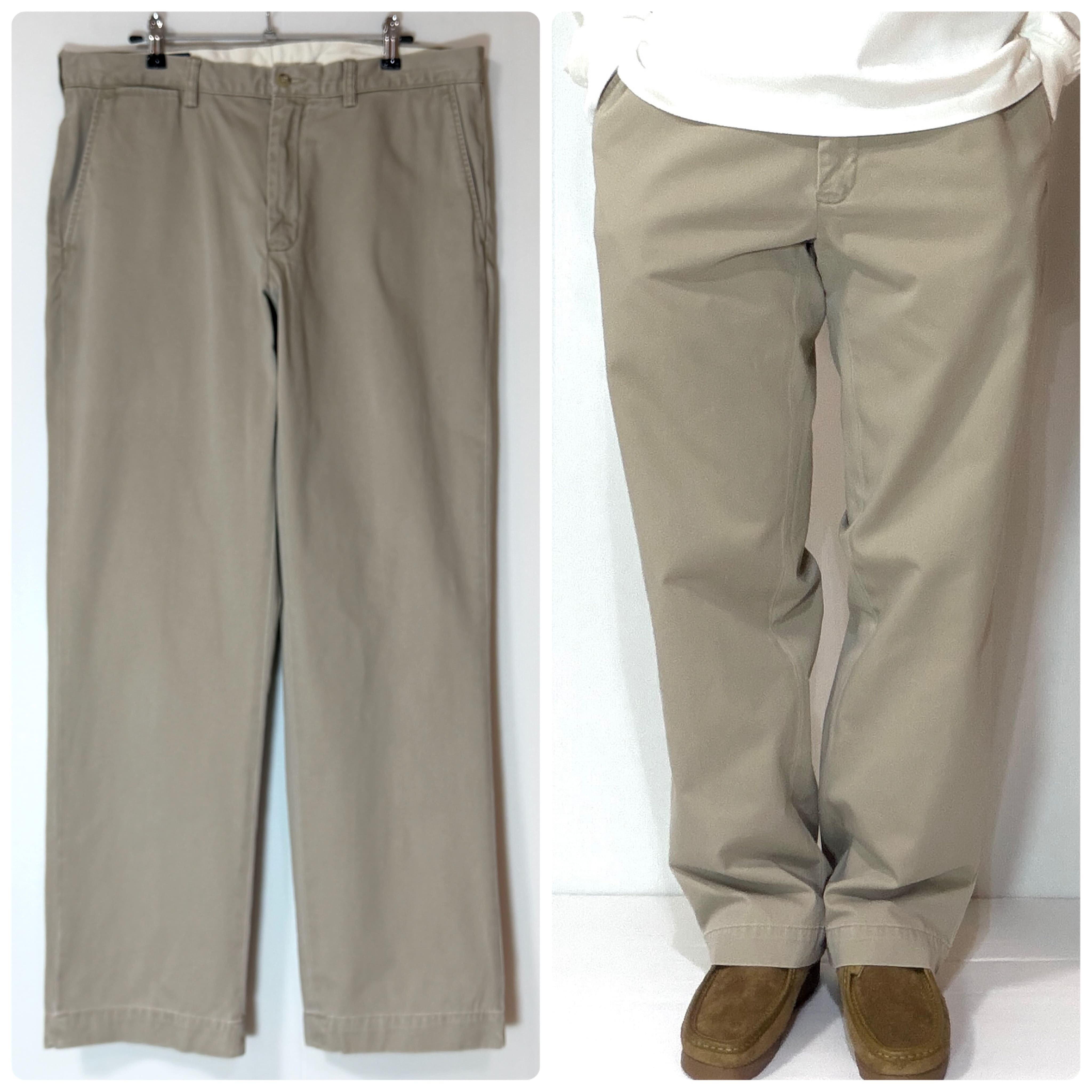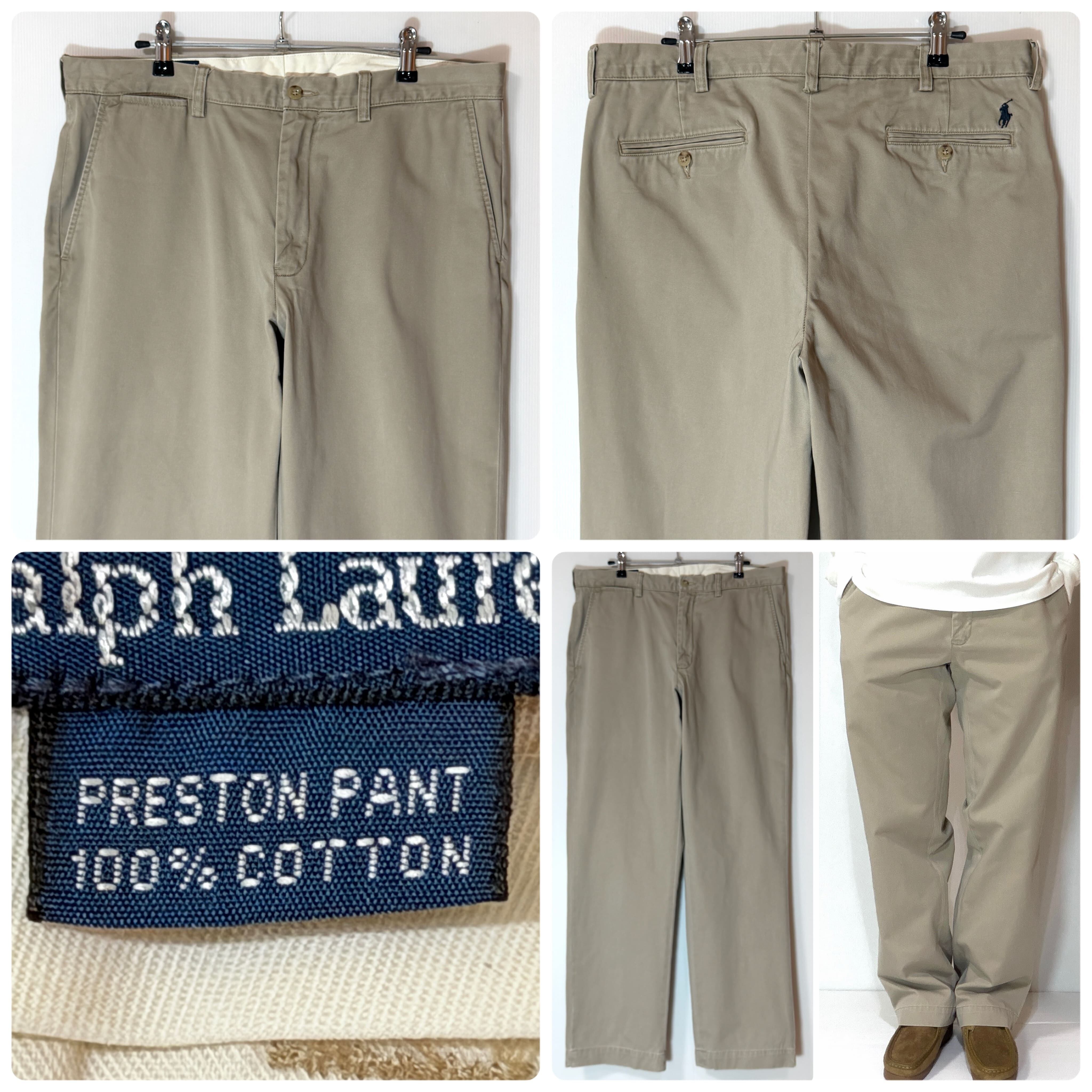 90s Polo by Ralph Lauren NO TUCK CLASSIC CHINO PRESTON PANT 100% HEAVY WEIGHT COTTON TROUSERS PONY LOGO ポロラルフローレン ノータック チノパン プレストンパンツ ポニー刺繡ロゴ 肉厚 厚手 コットン ヘビーチノクロス スラックス パンツ ワイド メンズ ボトムス ポロチノ クラシックチノ トラウザーズ 希少モデル 1990年代