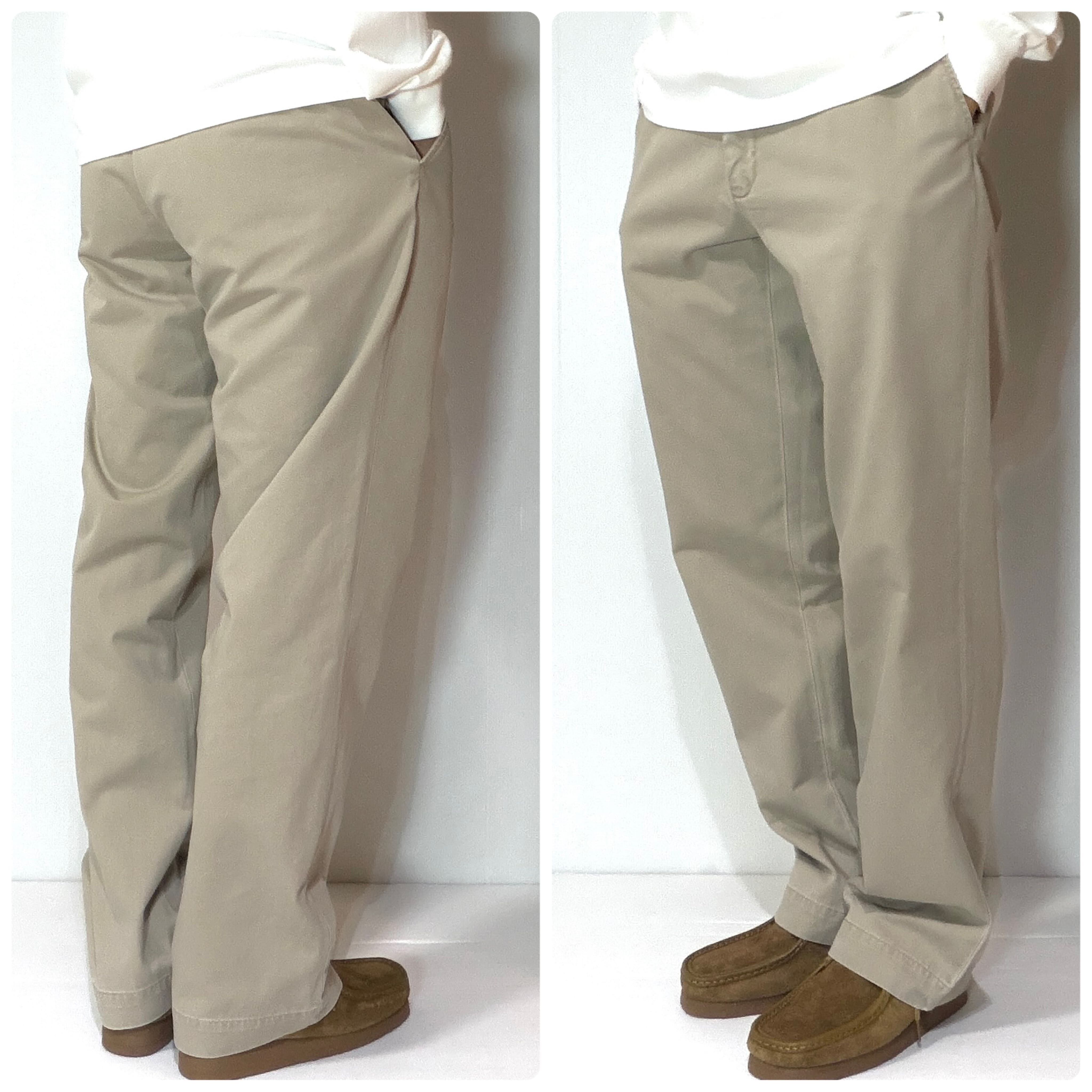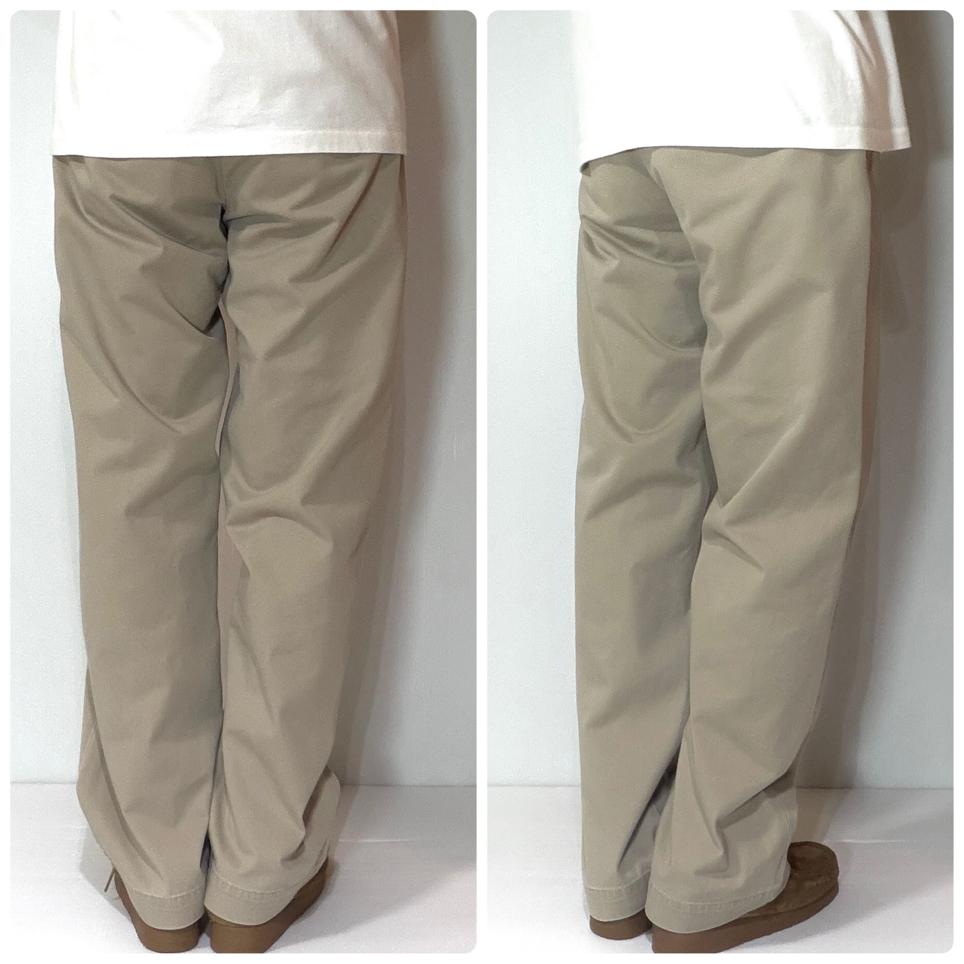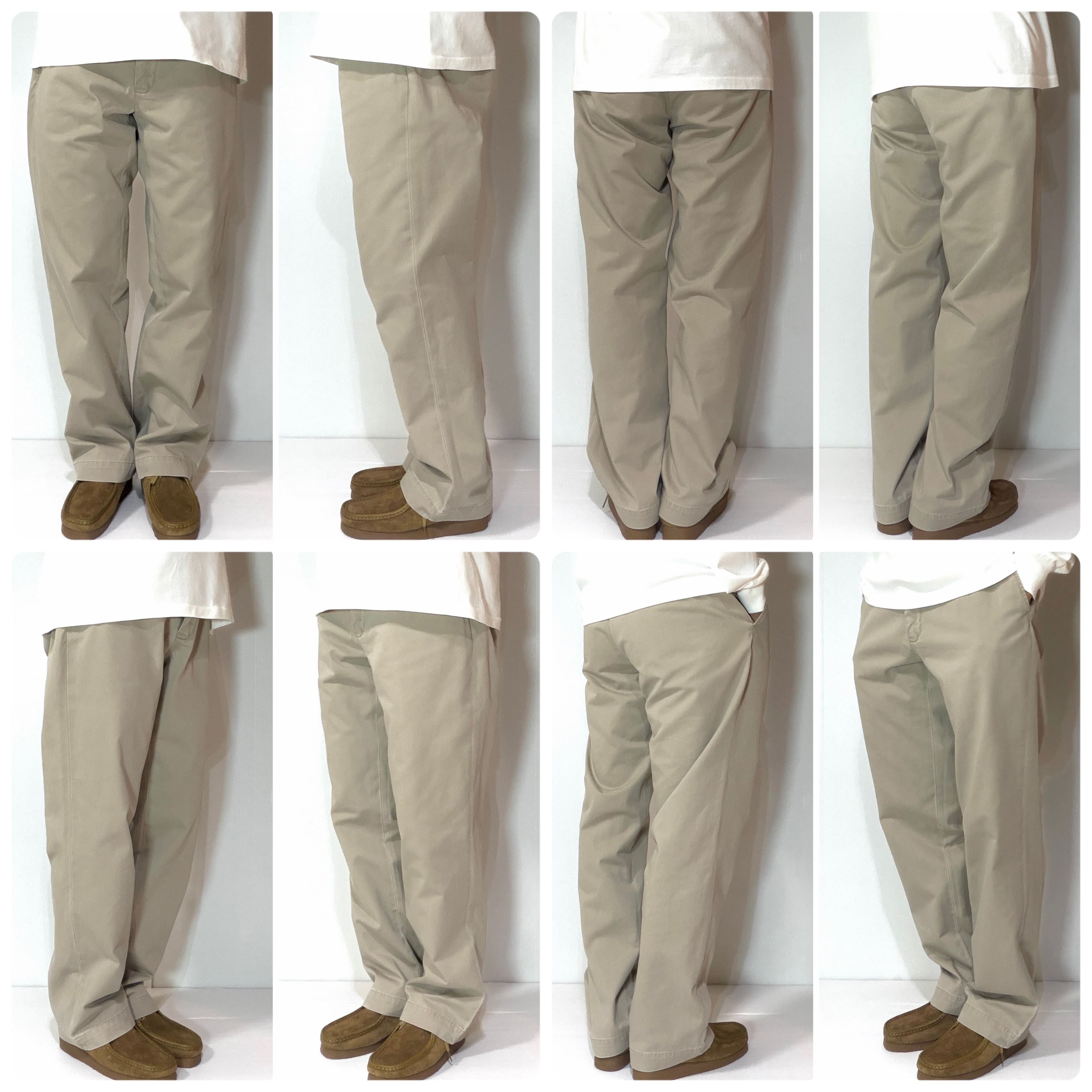 ・90年代を代表する定番モデルの「PROSPECT PANT」(プロスペクトパンツ)とよく似た形ですが、プロスペクトパンツよりもテーパードがきいてなくストンと綺麗に落ちる裾幅が広めのワイドなシルエットです。