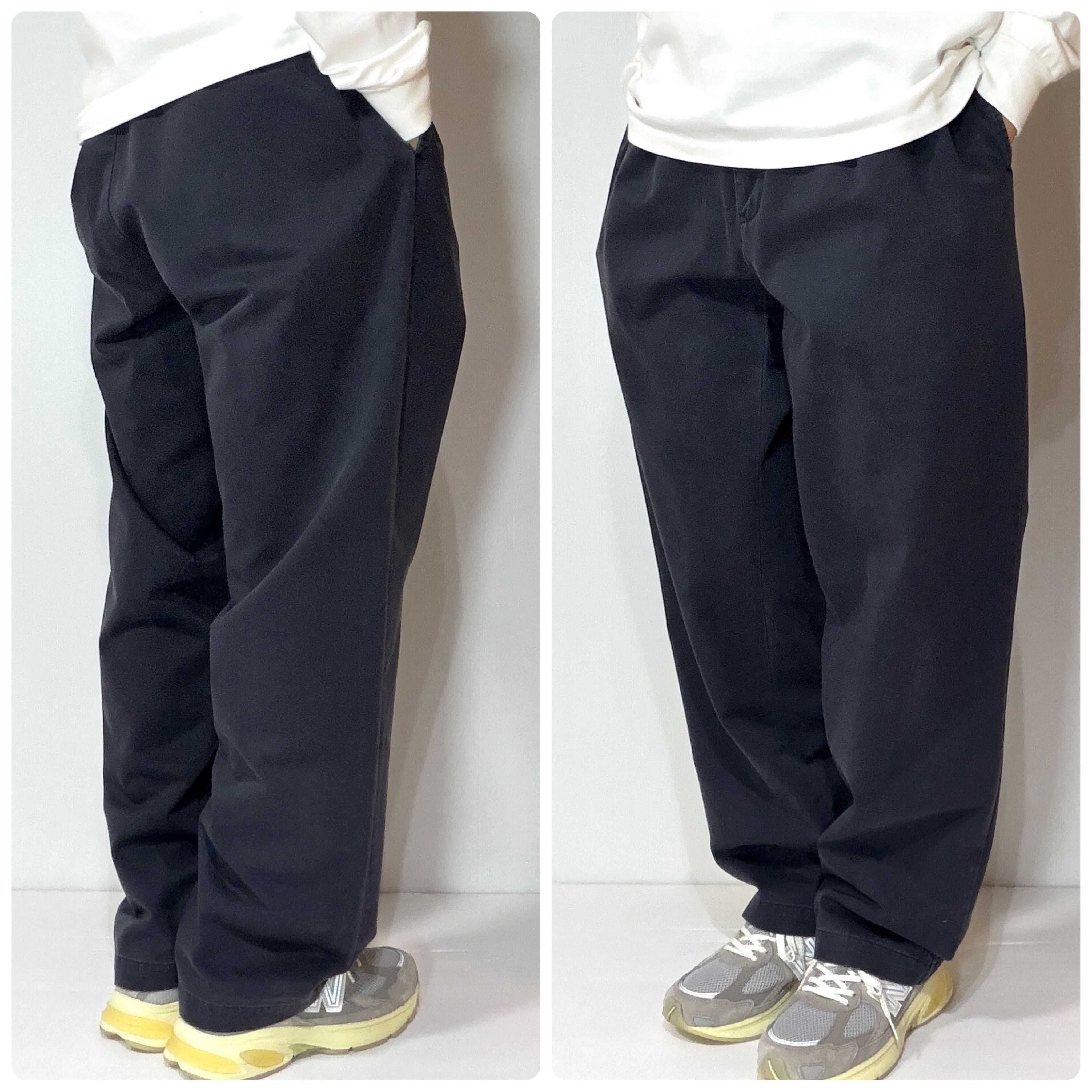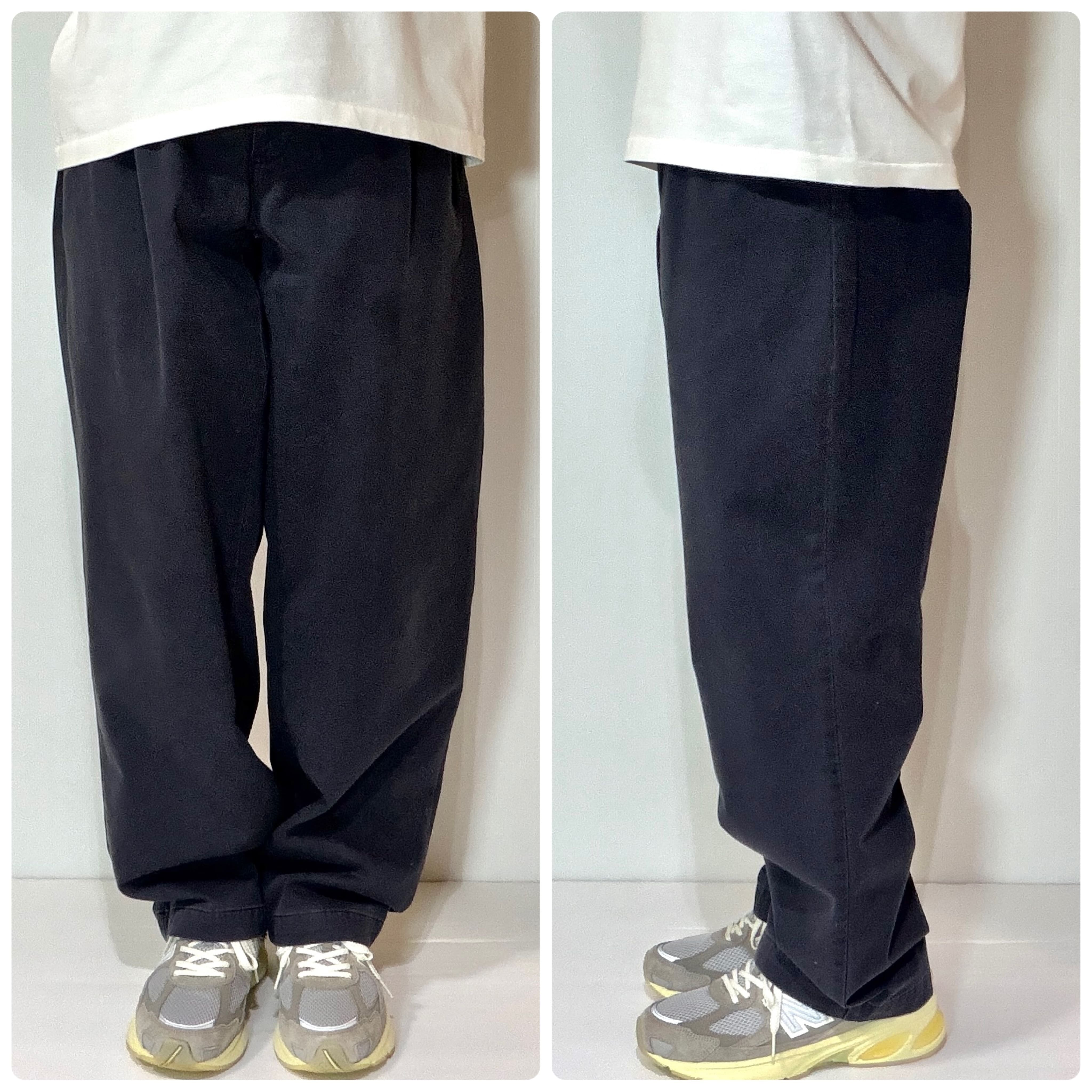 ・厚手のチノクロスのコットンツイル素材で腰回りやわたり幅やゆったりとしたツータックのワイドなシルエット