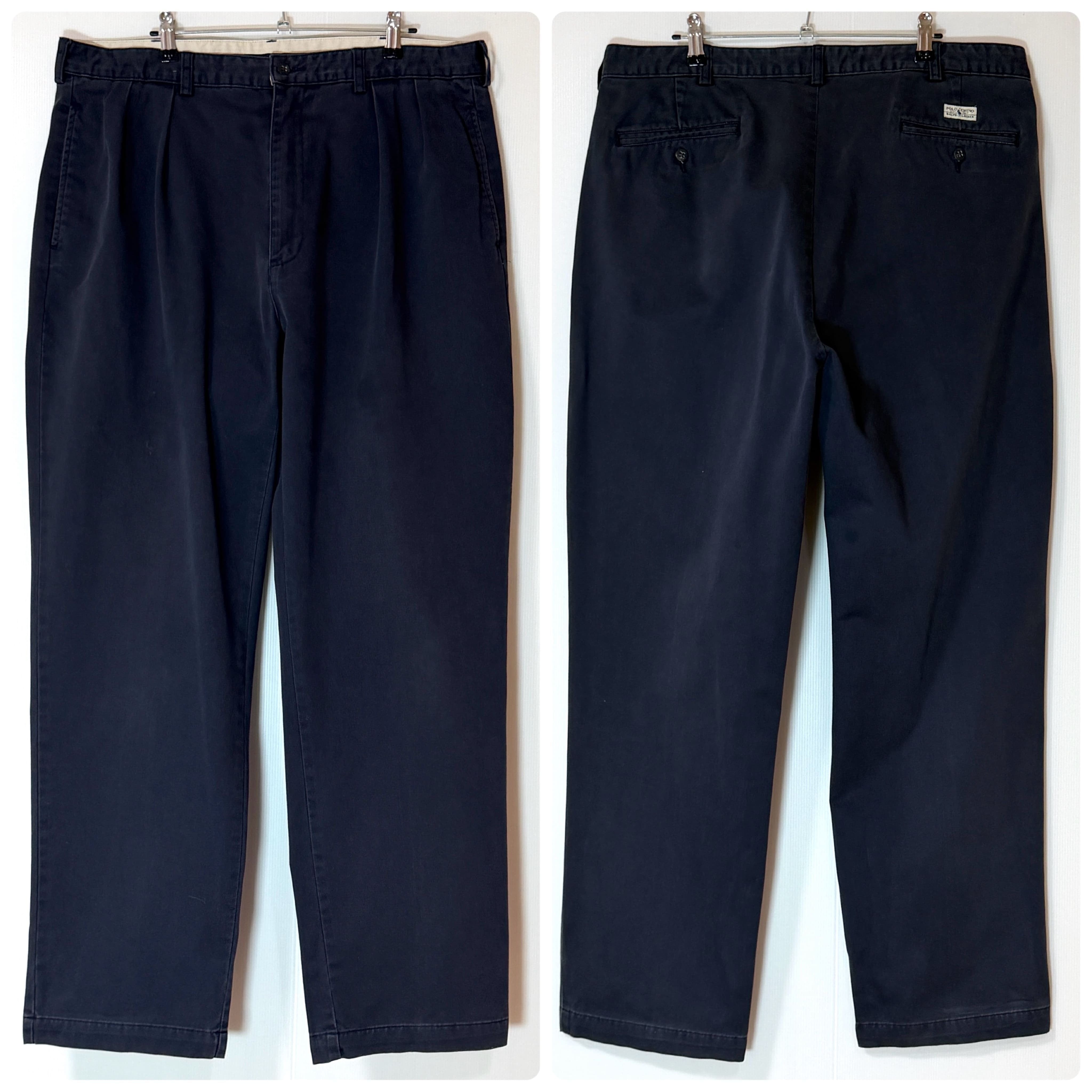 90s Polo Ralph Lauren ポロラルフローレン ツータック チノパン【W38L32】【ネイビー/紺/NAVY】ANDREW PANT アンドリューパンツ 2タック インプリーツ スラックス トラウザース パンツ ワイドバギー テーパード メンズ ボトムス ポロチノ 厚手 コットン 極太1990年代 TWO TUCK PLEATED CHINO TROUSERS100% COTTON p25123437