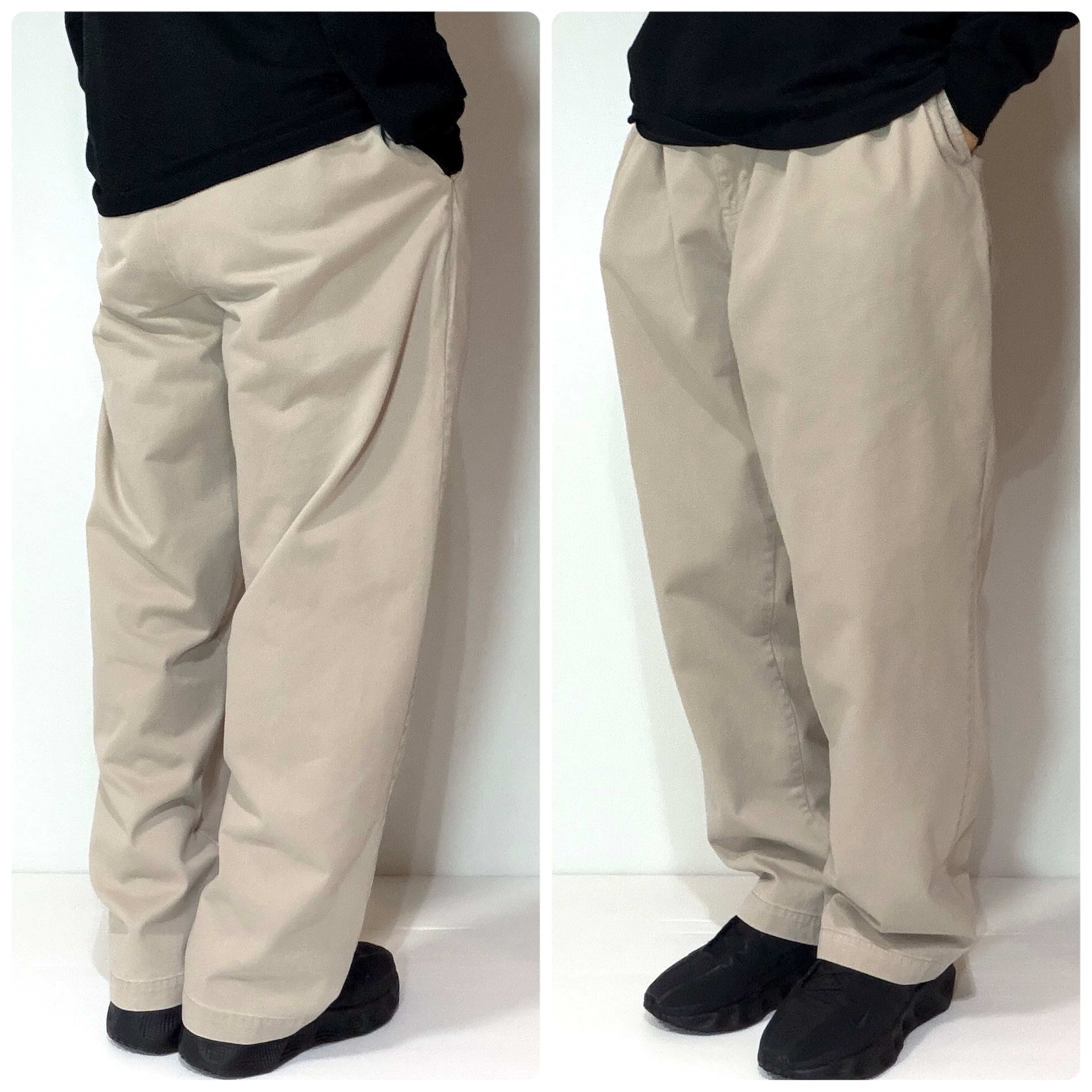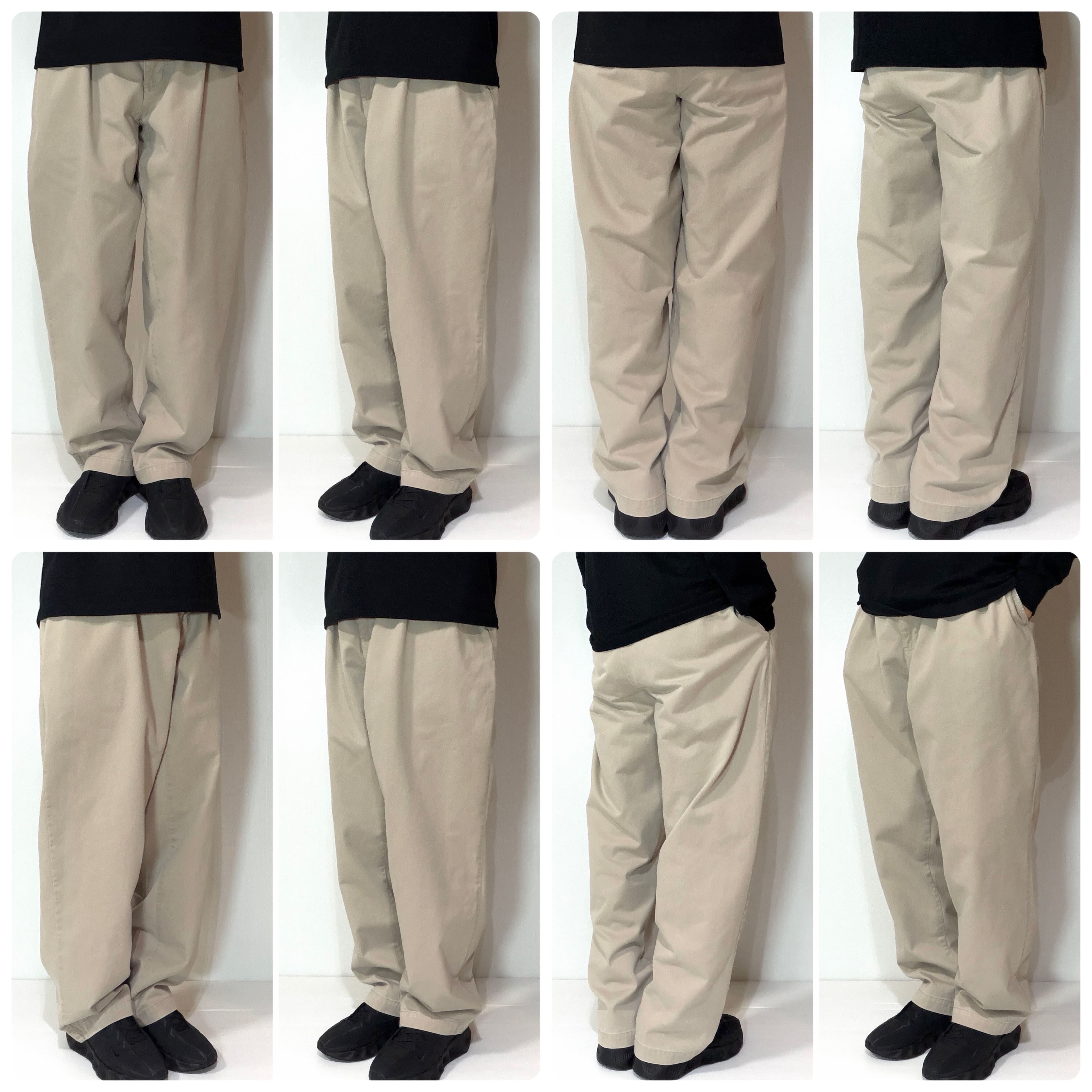 ・厚手のチノクロスのコットンツイル素材で腰回りやわたり幅やゆったりとしたツータックのワイドなシルエット