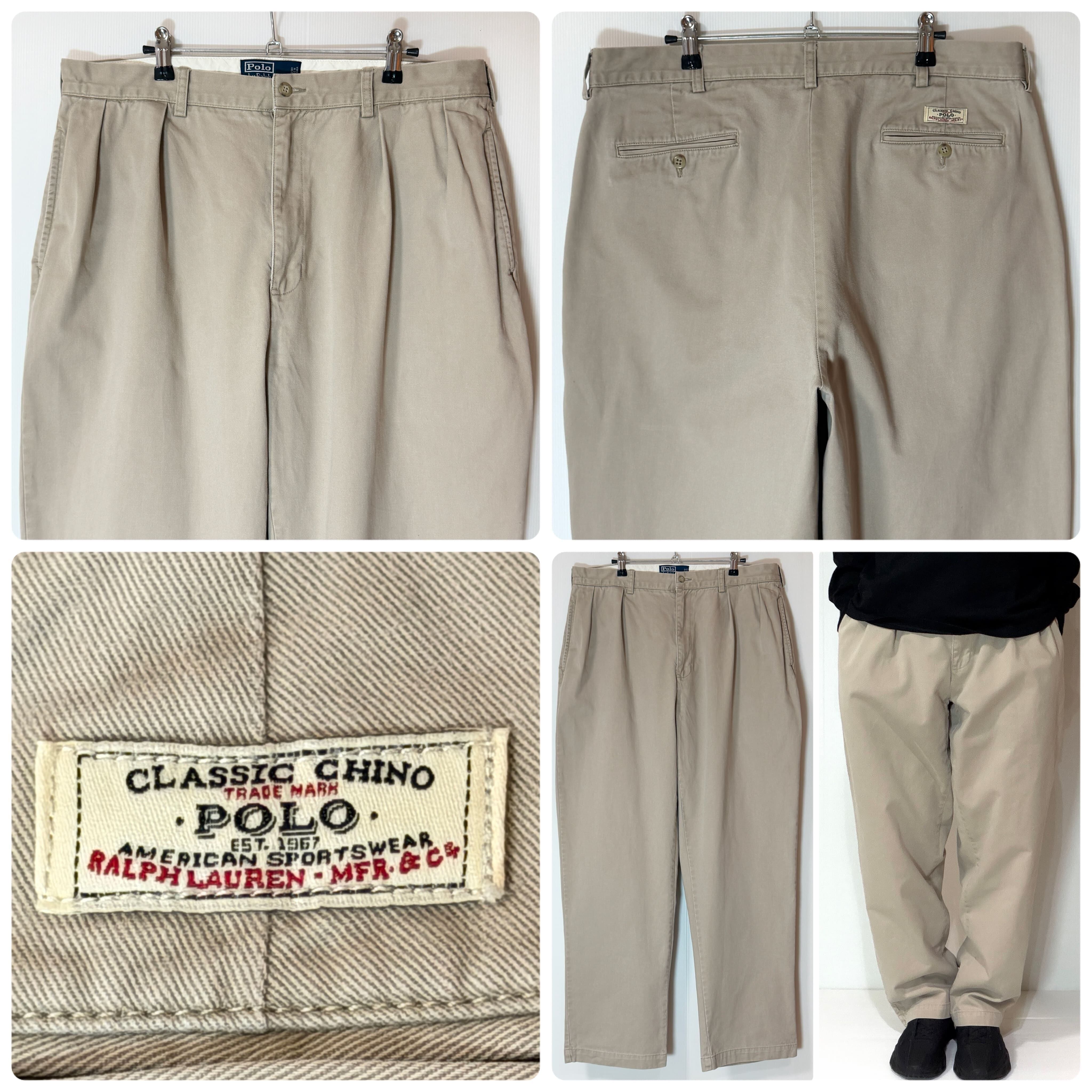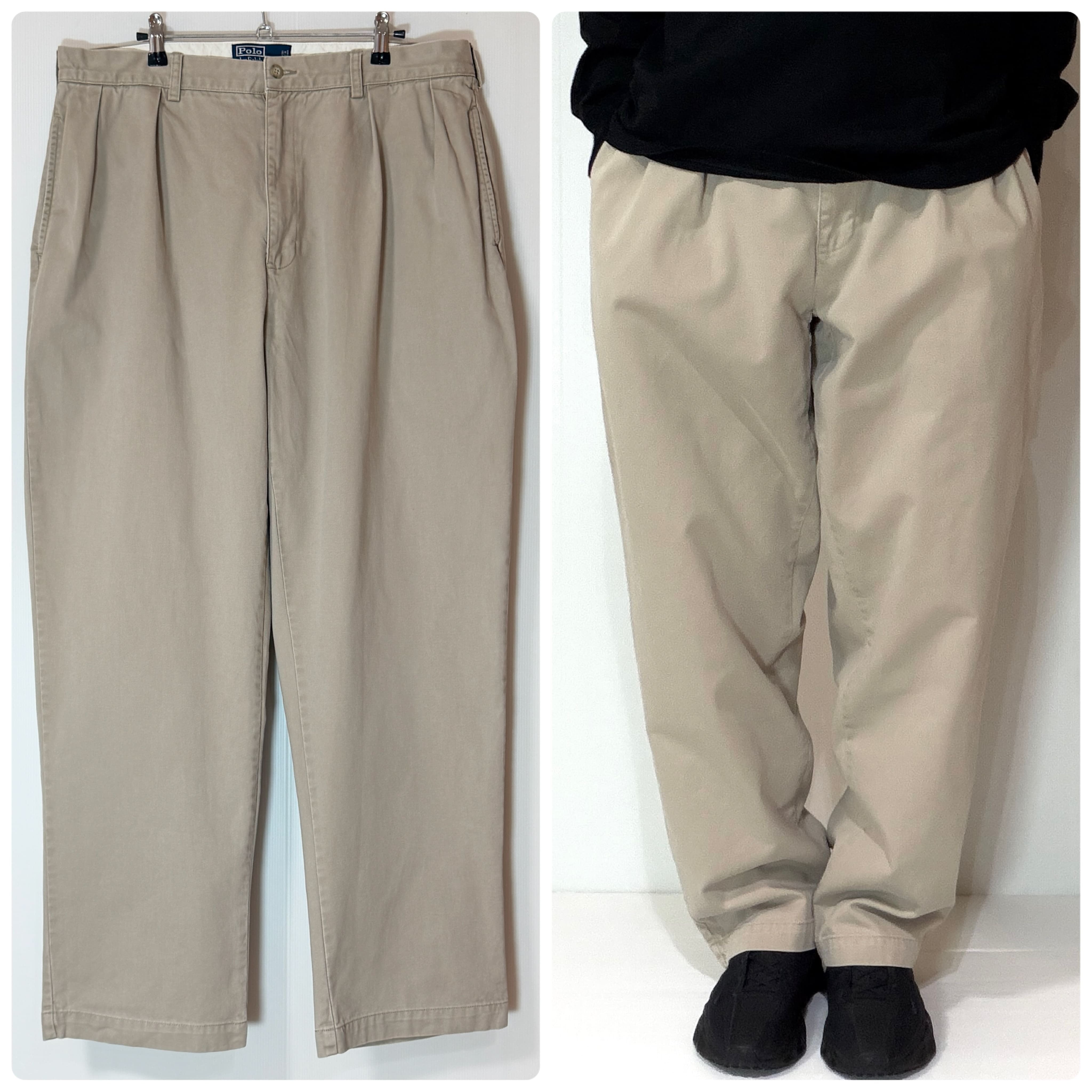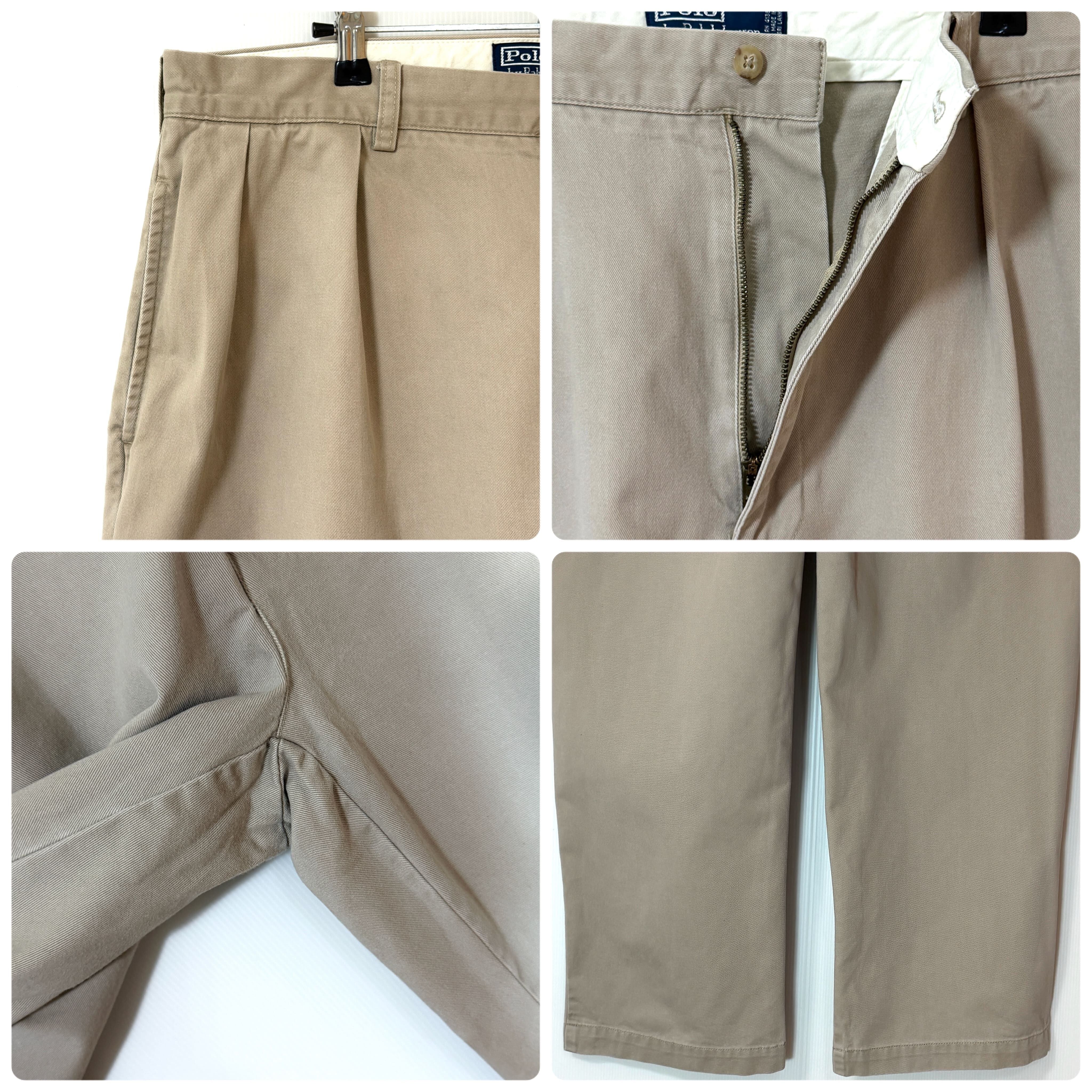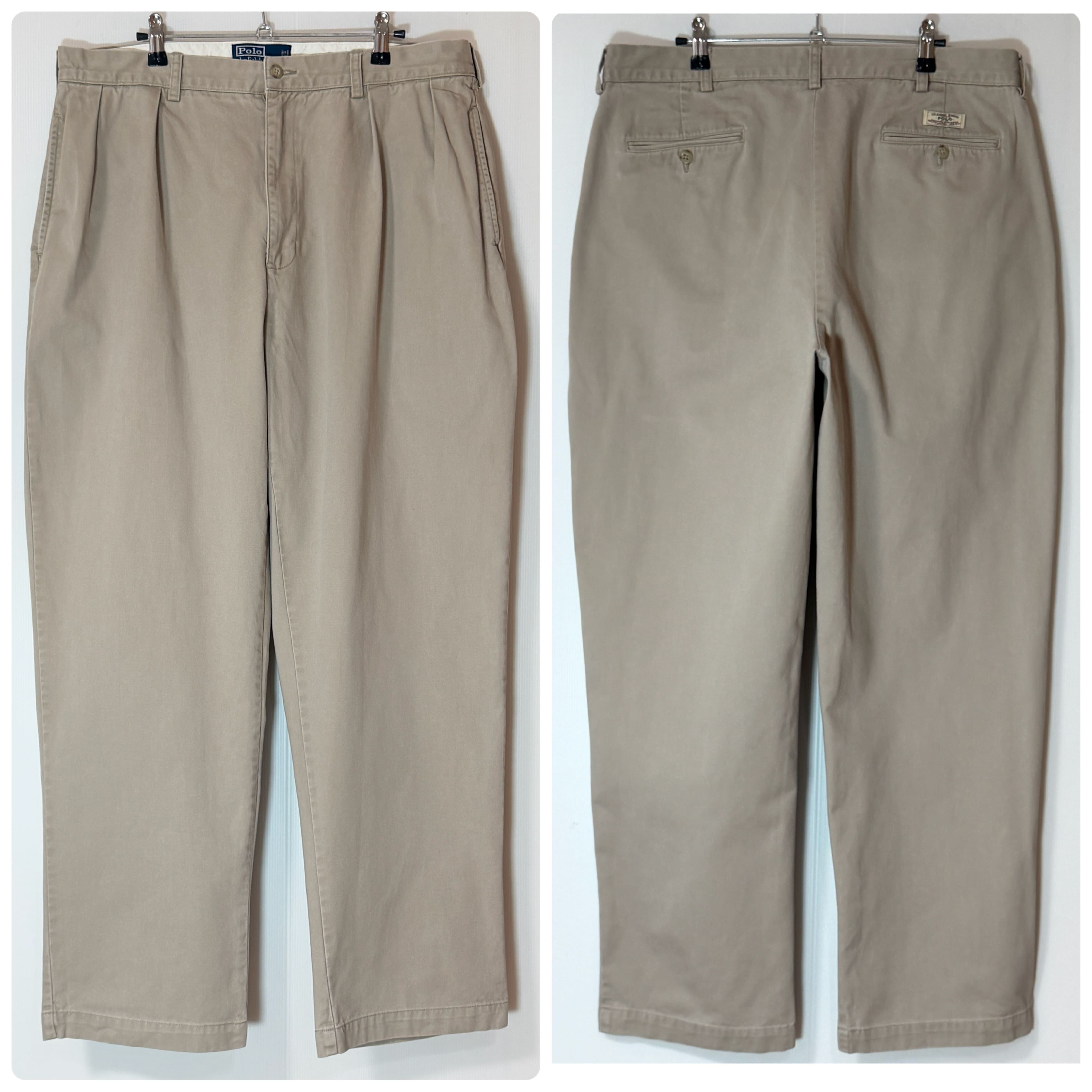 美品 90s Polo Ralph Lauren ポロラルフローレン ツータック チノパン【W38L32】【ベージュ/beige】 ANDREW PANT アンドリューパンツ 2タック インプリーツ スラックス トラウザース パンツ ワイドバギー テーパード メンズ ボトムス ポロチノ 厚手 コットン 極太1990年代 TWO TUCK PLEATED CHINO TROUSERS100% COTTON p25123436
