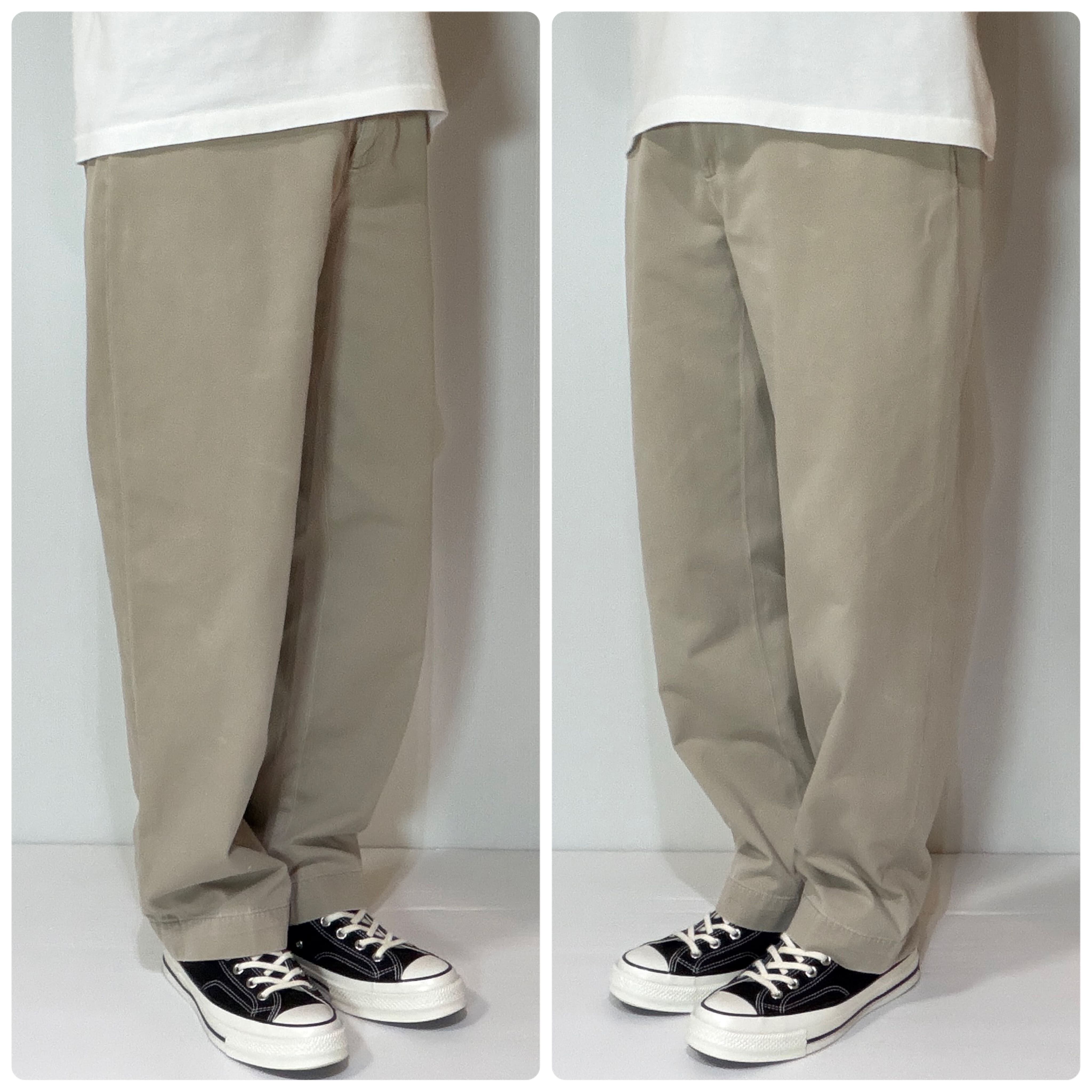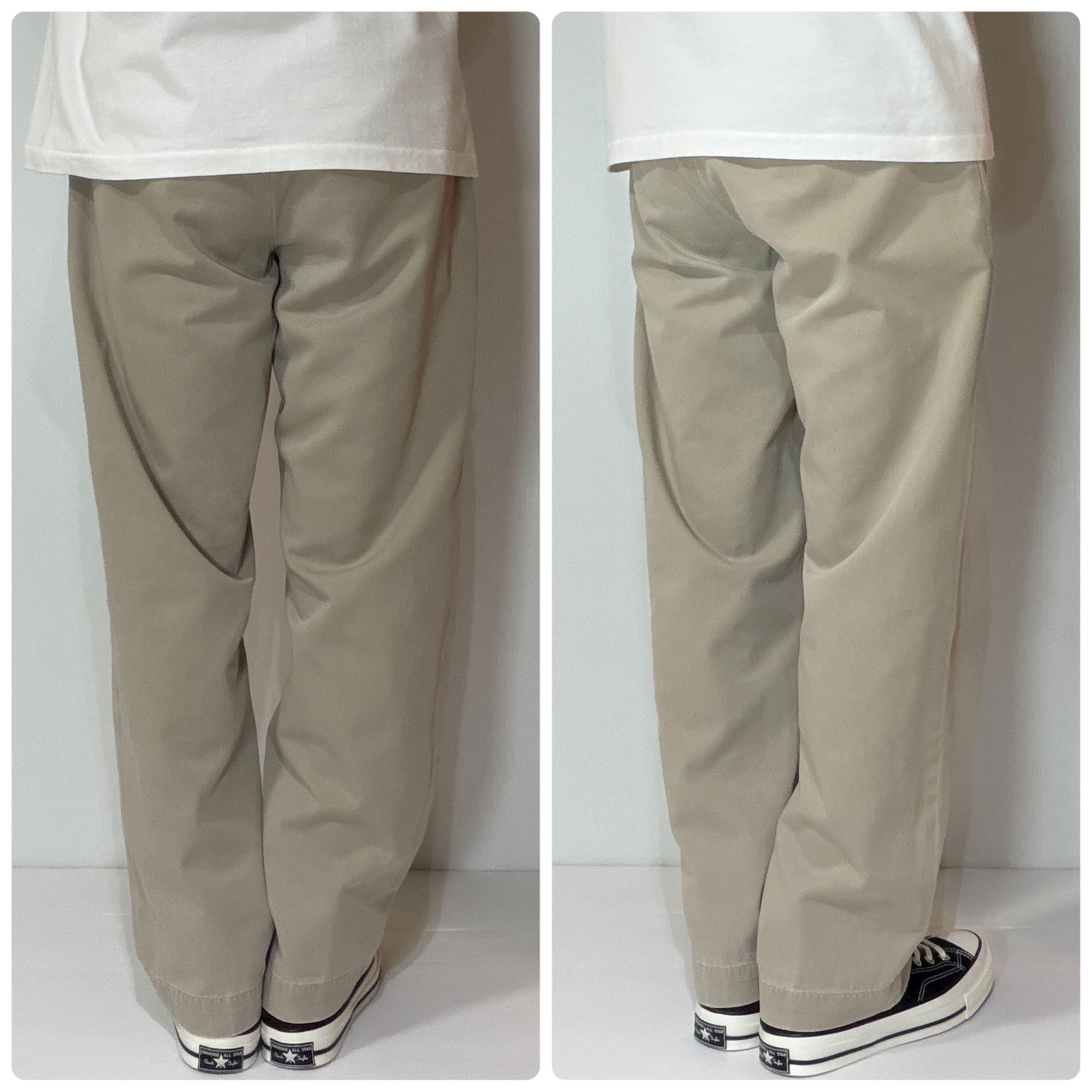 ・腰回りやワタリ幅はしっかり太めなワイドテーパードのストレートシルエット