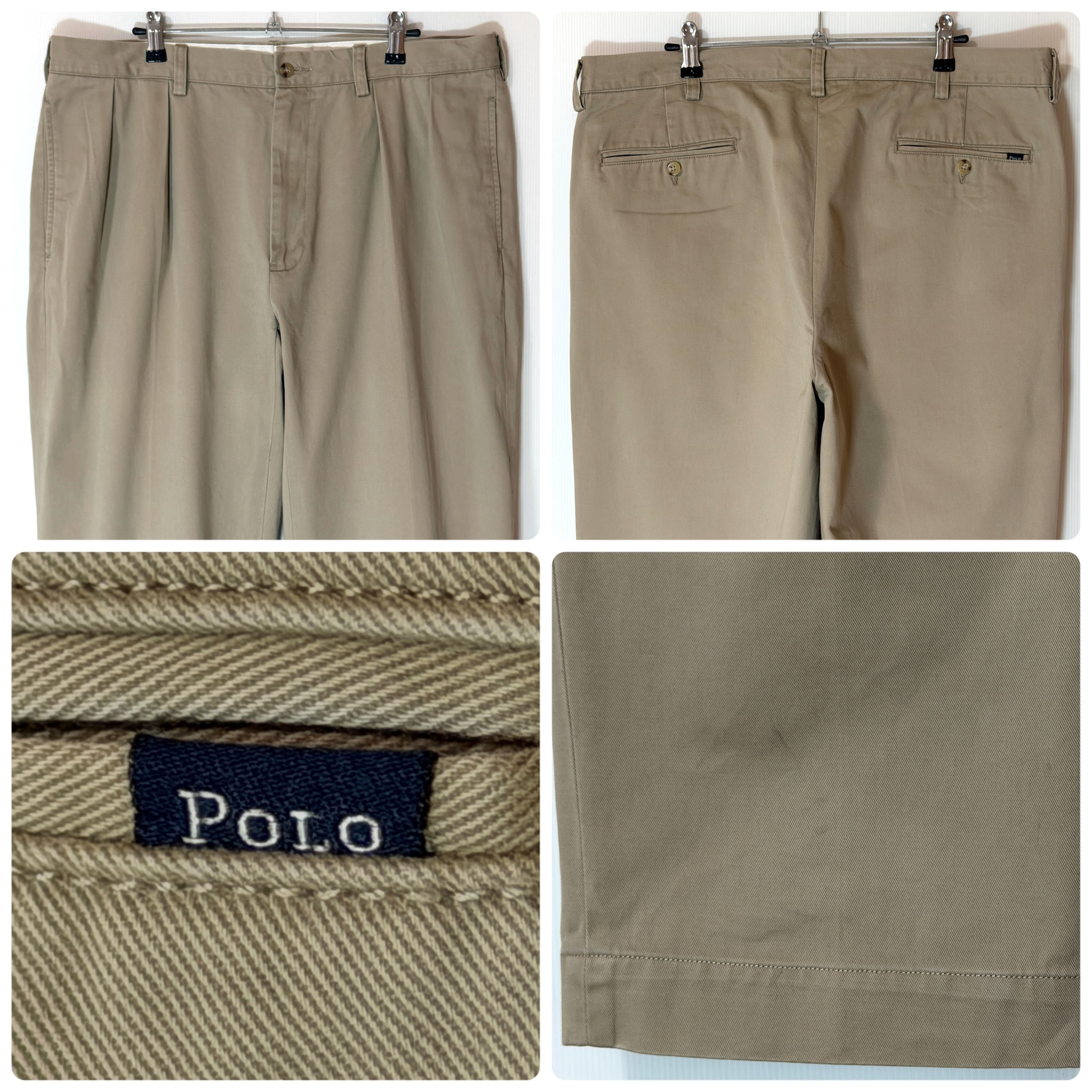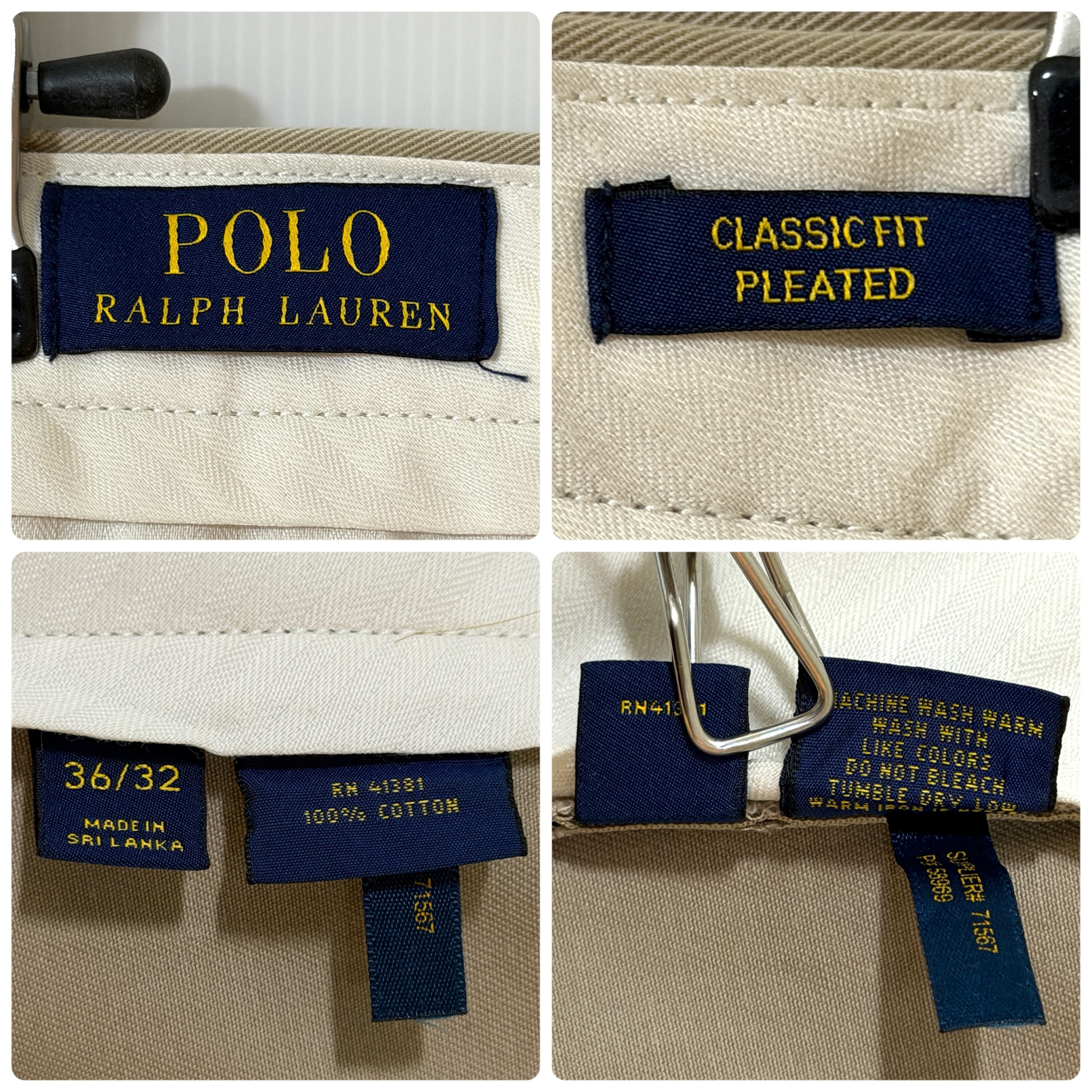 美品 Polo Ralph Lauren ポロラルフローレン ツータック チノパン【W36L32】【ベージュ/Beige】 CLASSIC FIT PLEATED クラシックフィットプリーテッド インプリーツ スラックス トラウザーズ ワンポイント刺繍ロゴピスネーム 厚手 コットン ワイドパンツ テーパード 極太 ワイドバギー メンズ ボトムス ポロチノ 希少 レアモデル TWO TUCK CHINO 100% COTTON TROUSERS p25123422