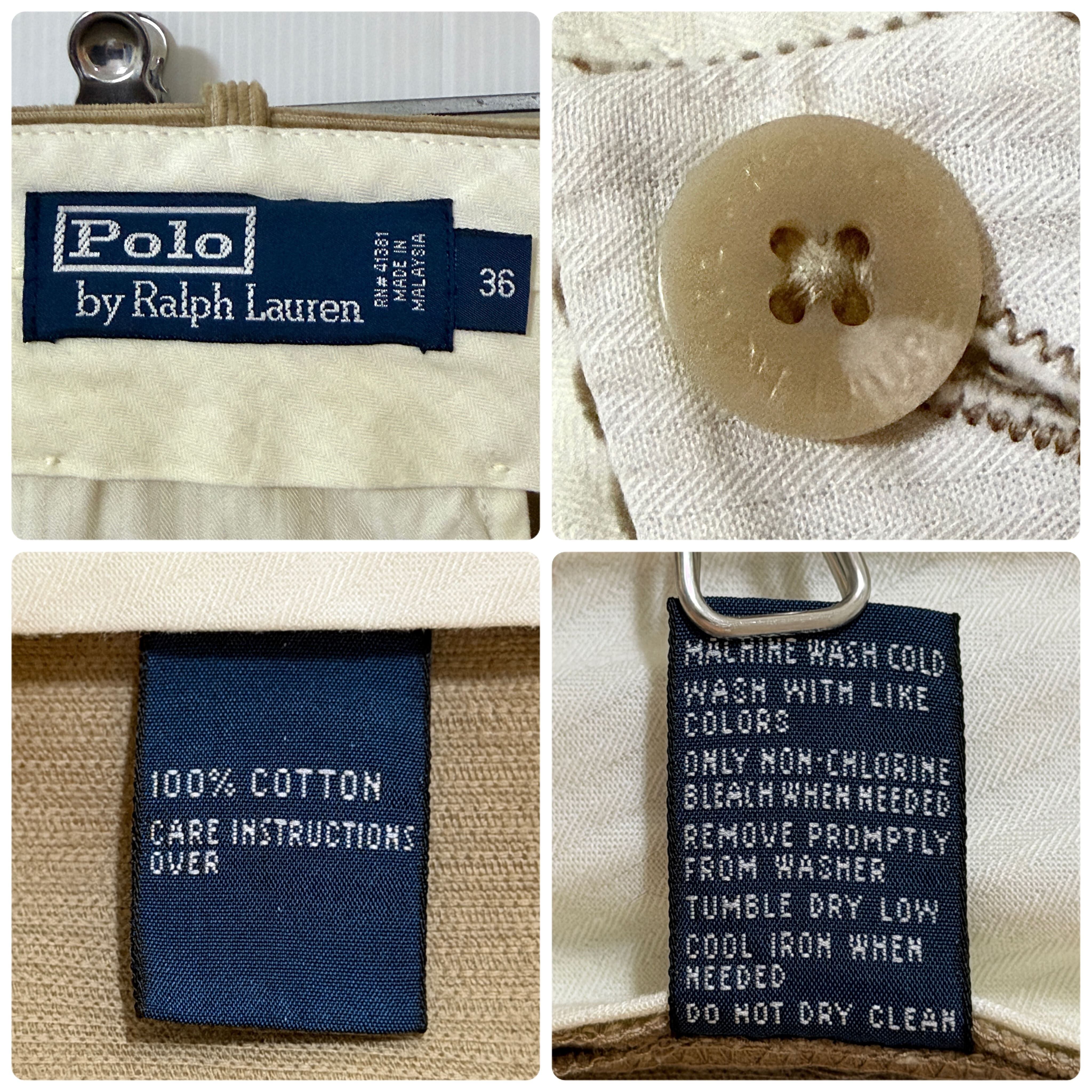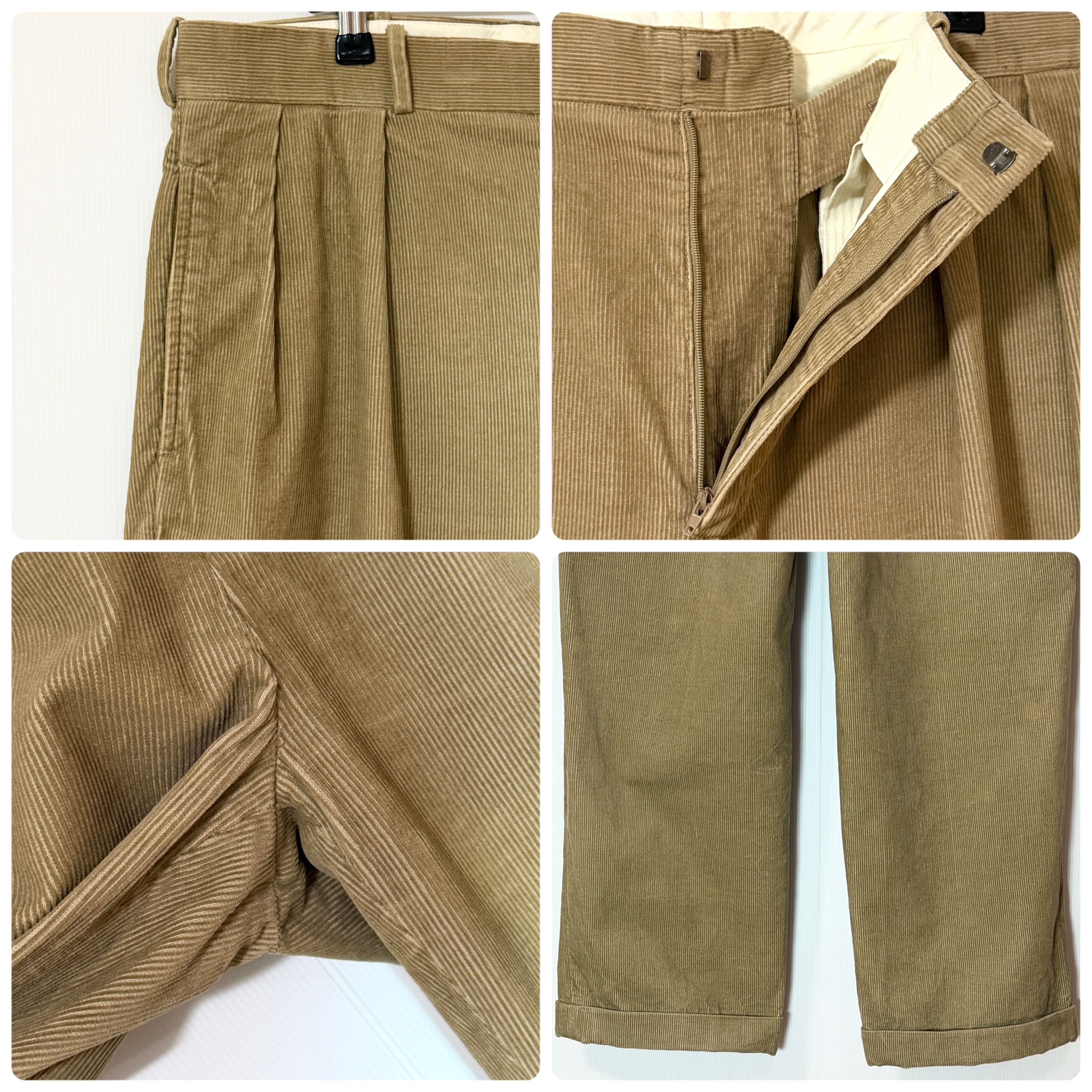 美品 90s Polo by Ralph Lauren ポロラルフローレン ツータック 細畝 コーデュロイパンツ【W36L32】【ベージュ/Beige】2タック インプリーツ 肉厚 ヘビーウェイトチノ スラックス トラウザース パンツ ワイド テーパード メンズ ボトムス ポロチノ クラシックチノ 細うね two-tuck pleated heavy weight corduroy classic chino trousers 100% COTTON p26013462