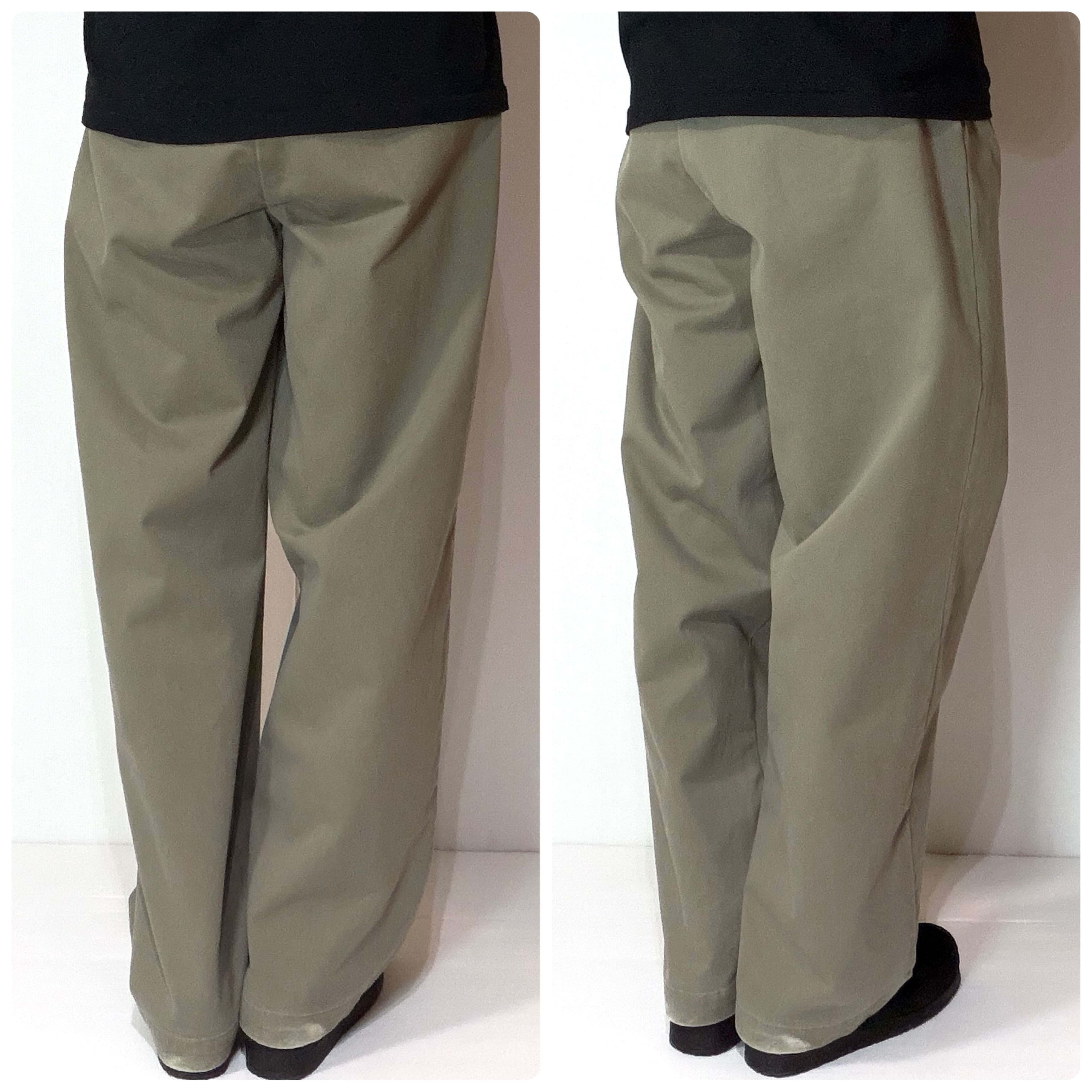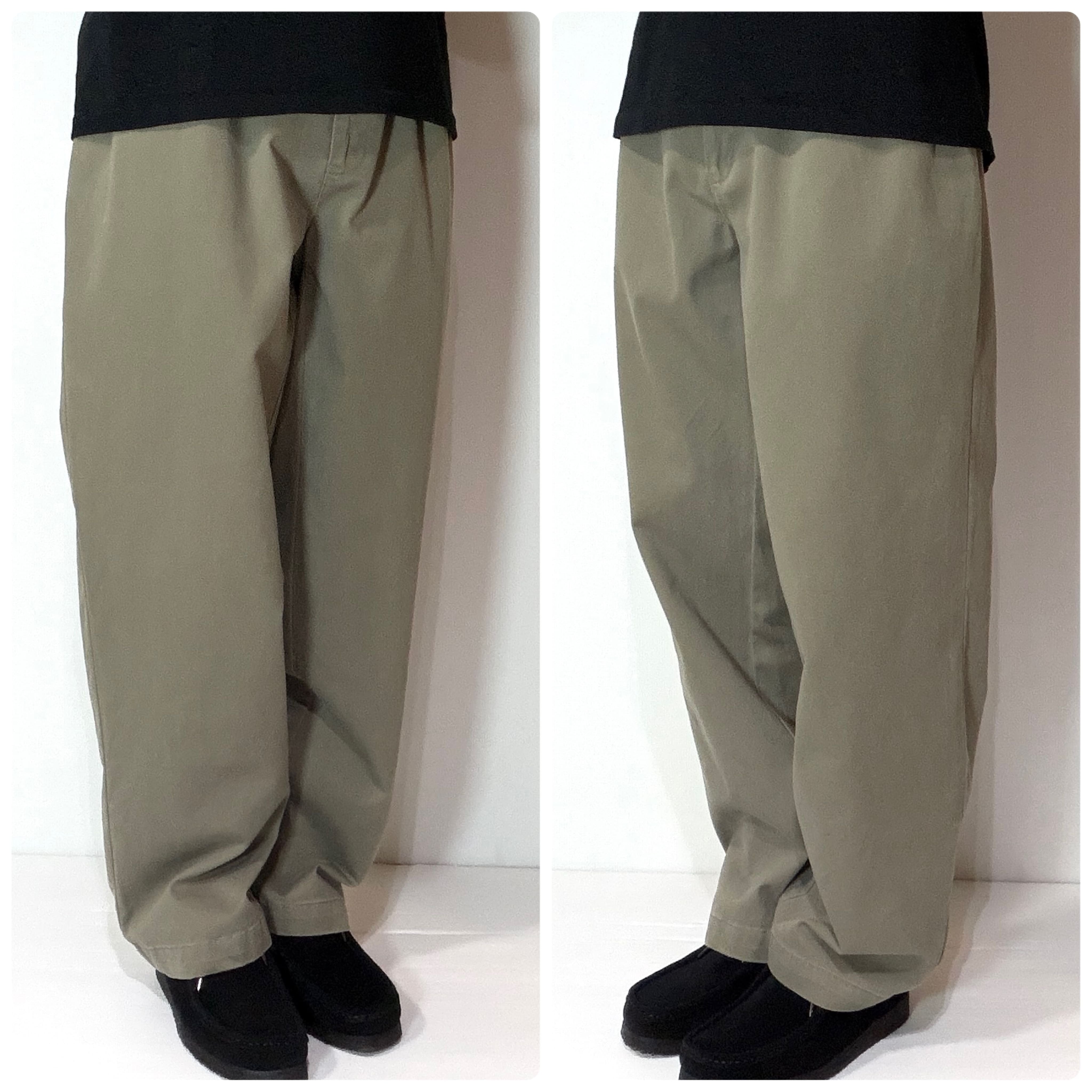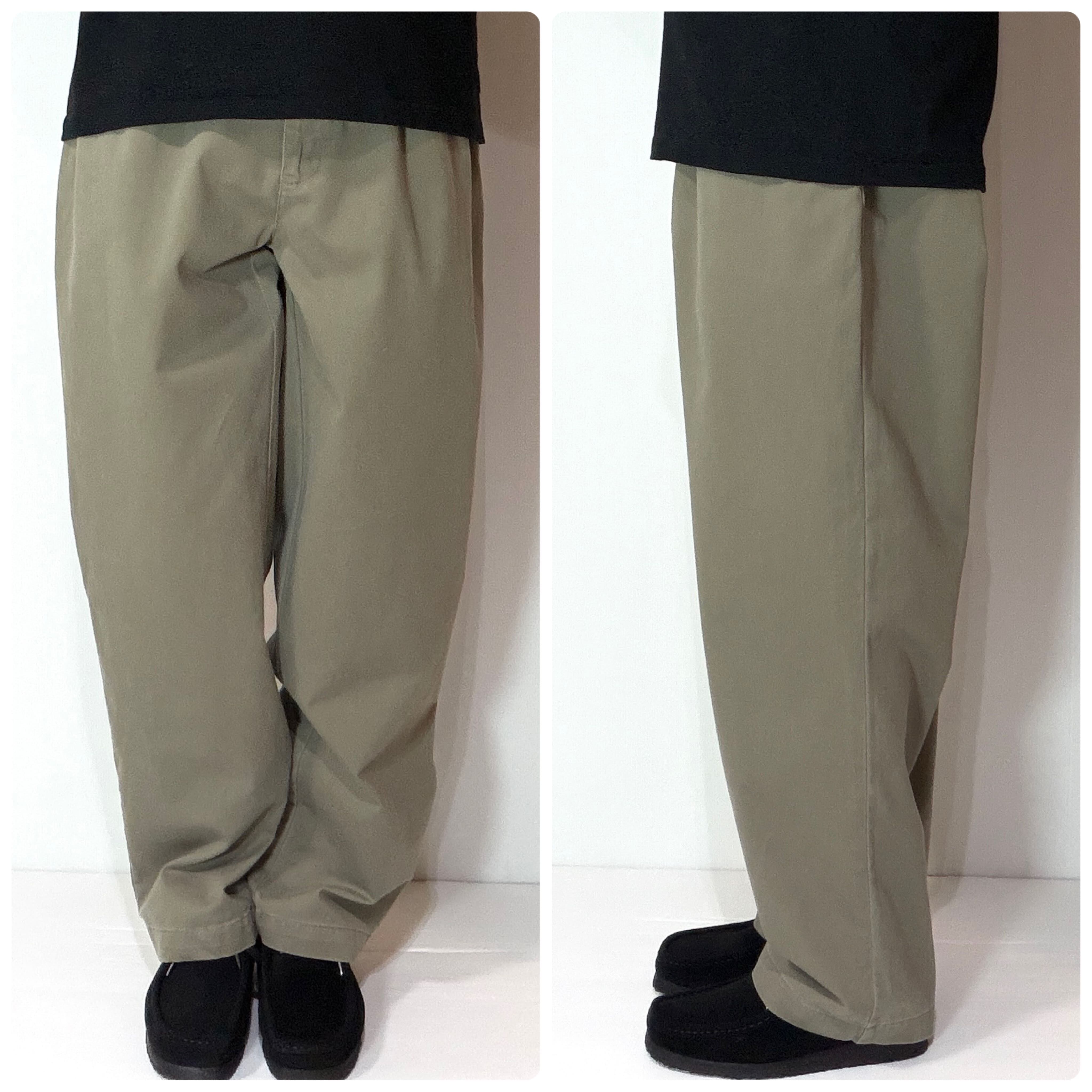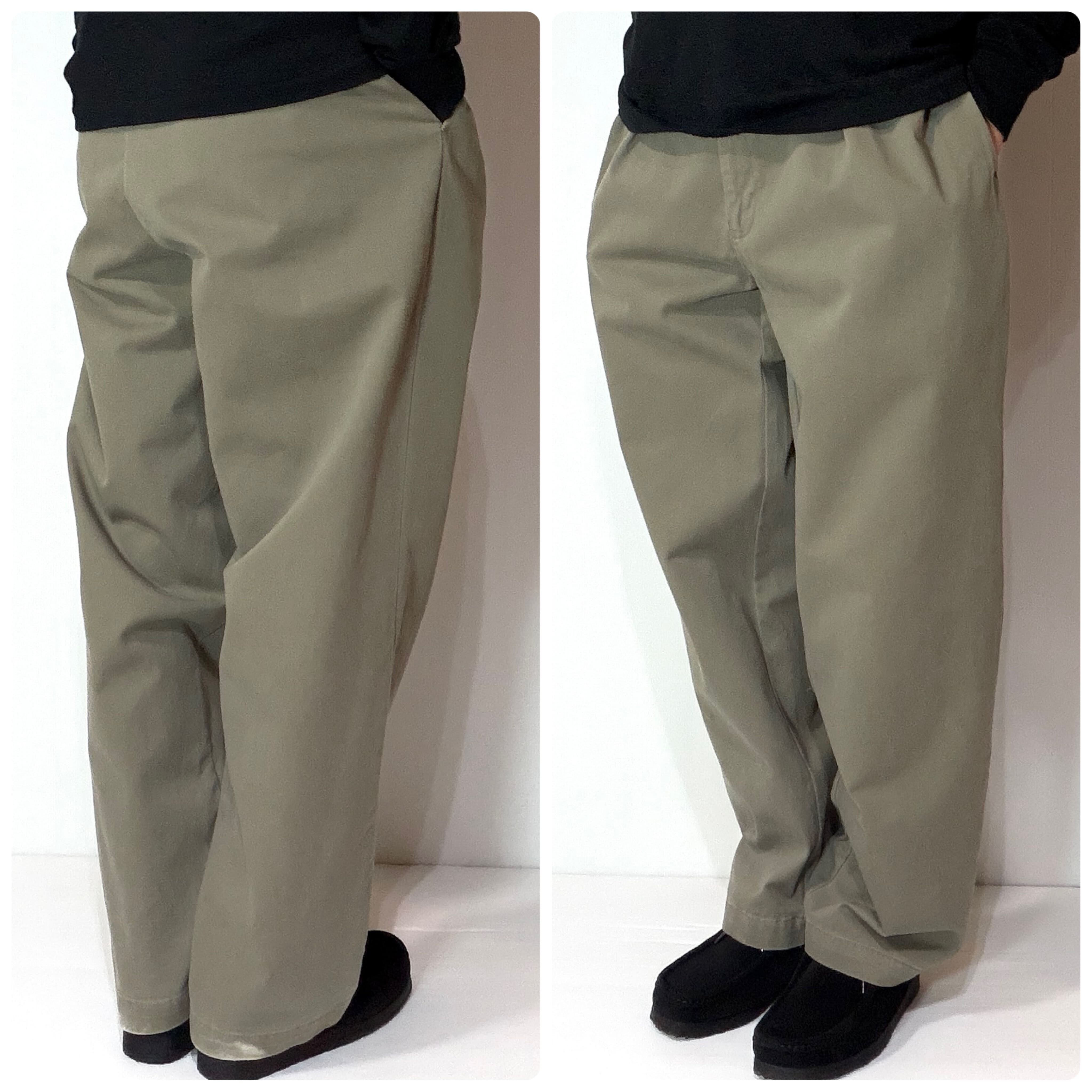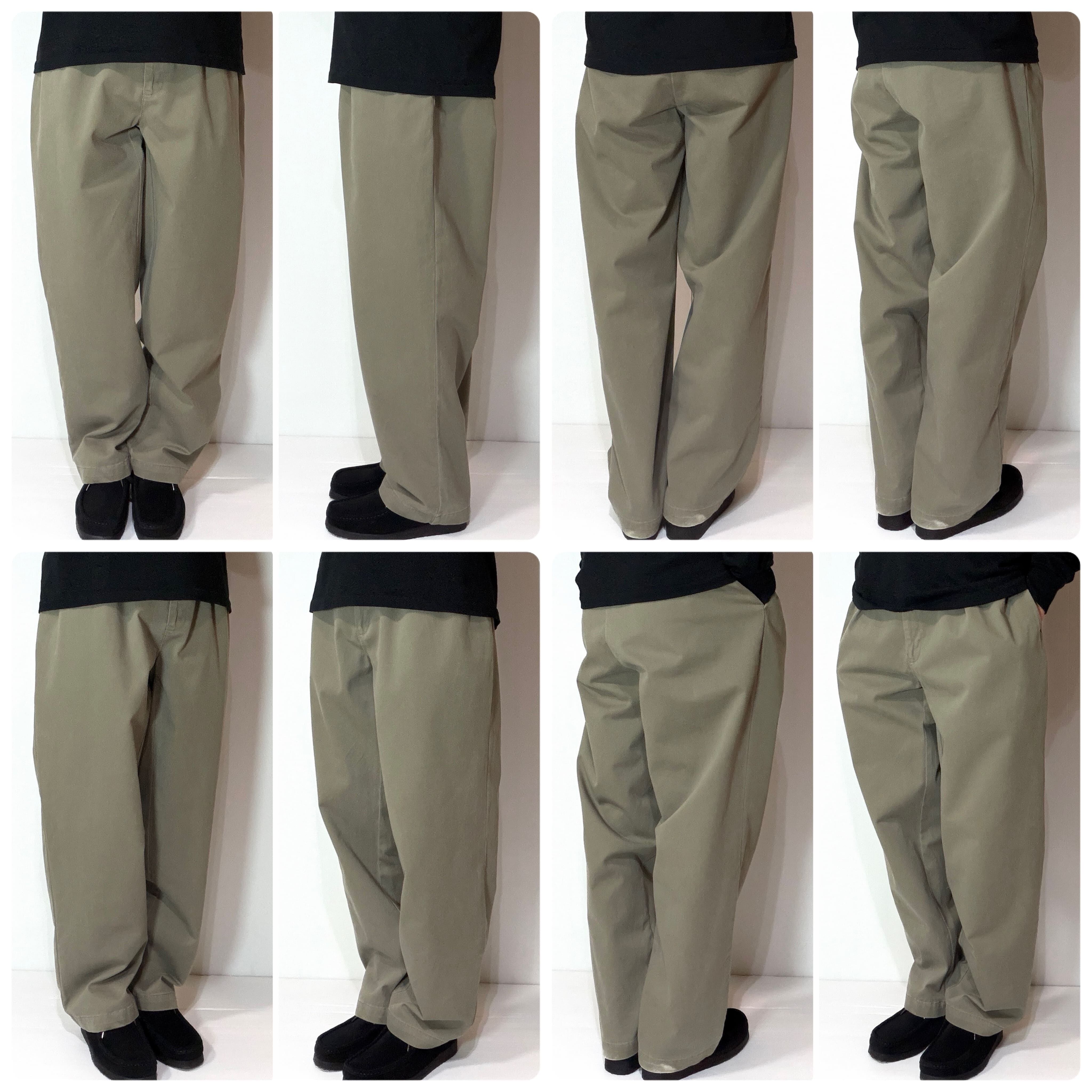 ・厚手のチノクロスのコットンツイル素材で腰回りやわたり幅やゆったりとしたツータックのワイドなシルエット