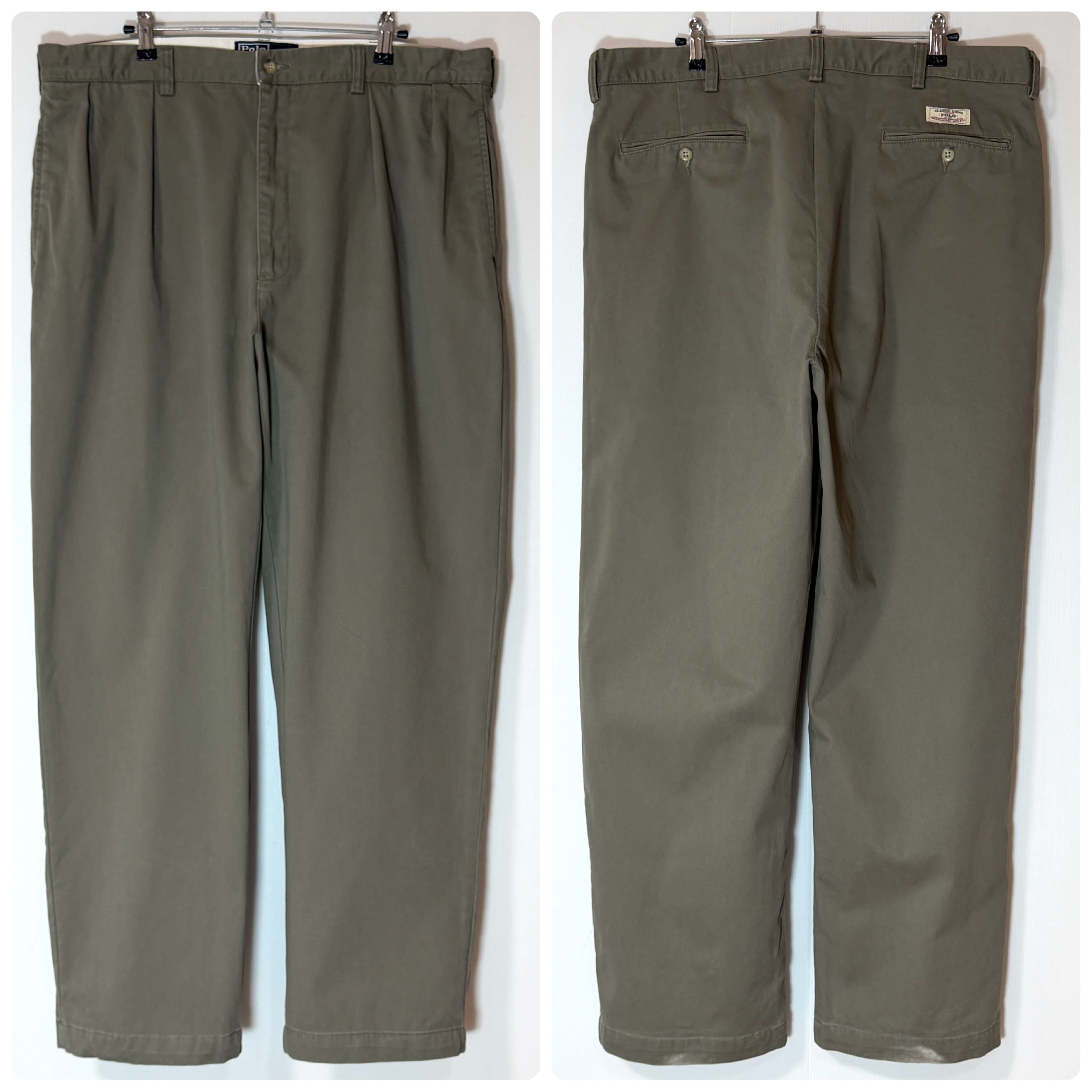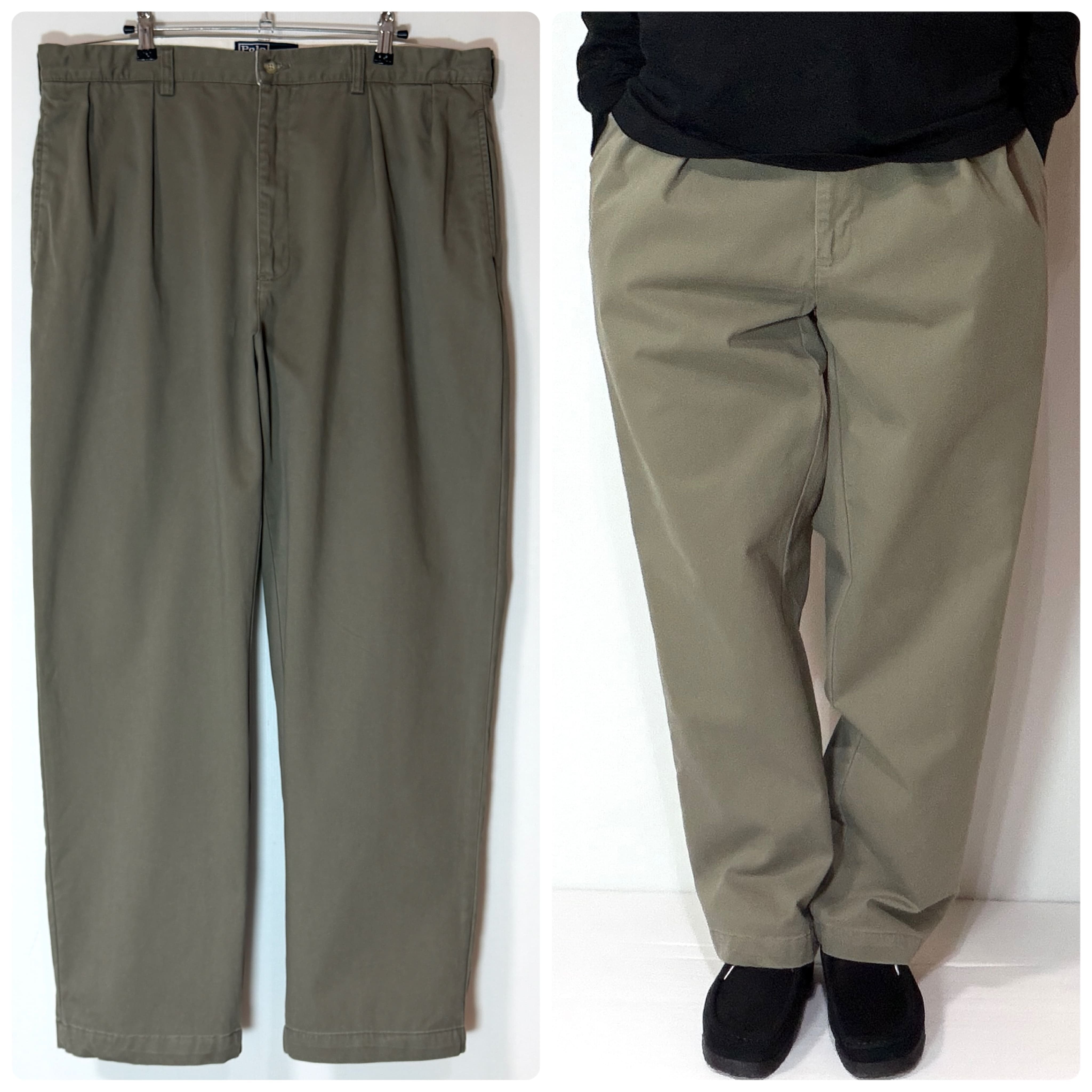 90s Polo Ralph Lauren ANDREW PANT ポロラルフローレン ツータック チノパン アンドリューパンツ 2タック インプリーツ スラックス トラウザース パンツ ワイドバギー テーパード メンズ ボトムス ポロチノ 厚手 コットン 極太 1990年代 two tuck pleated chino trousers 100% COTTON