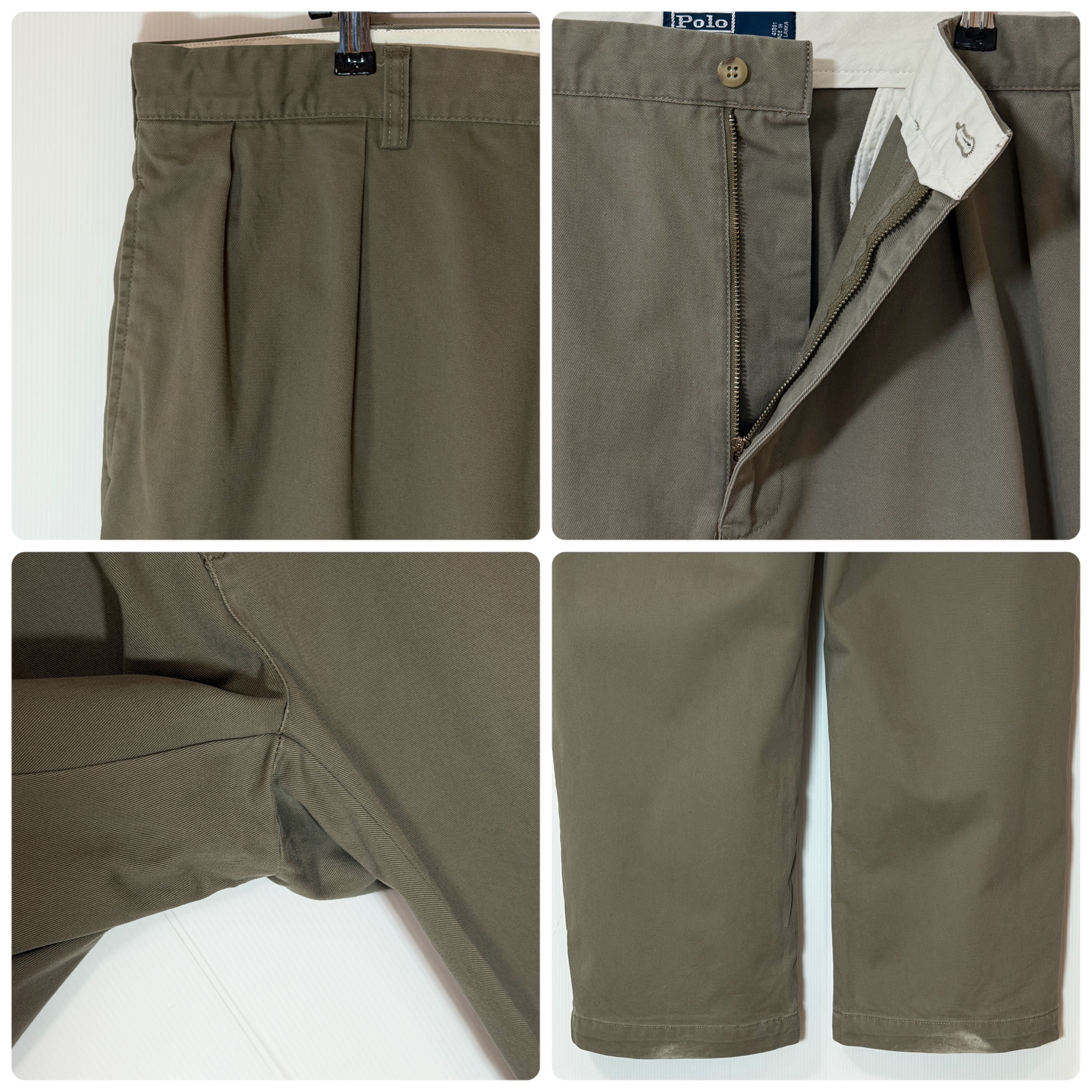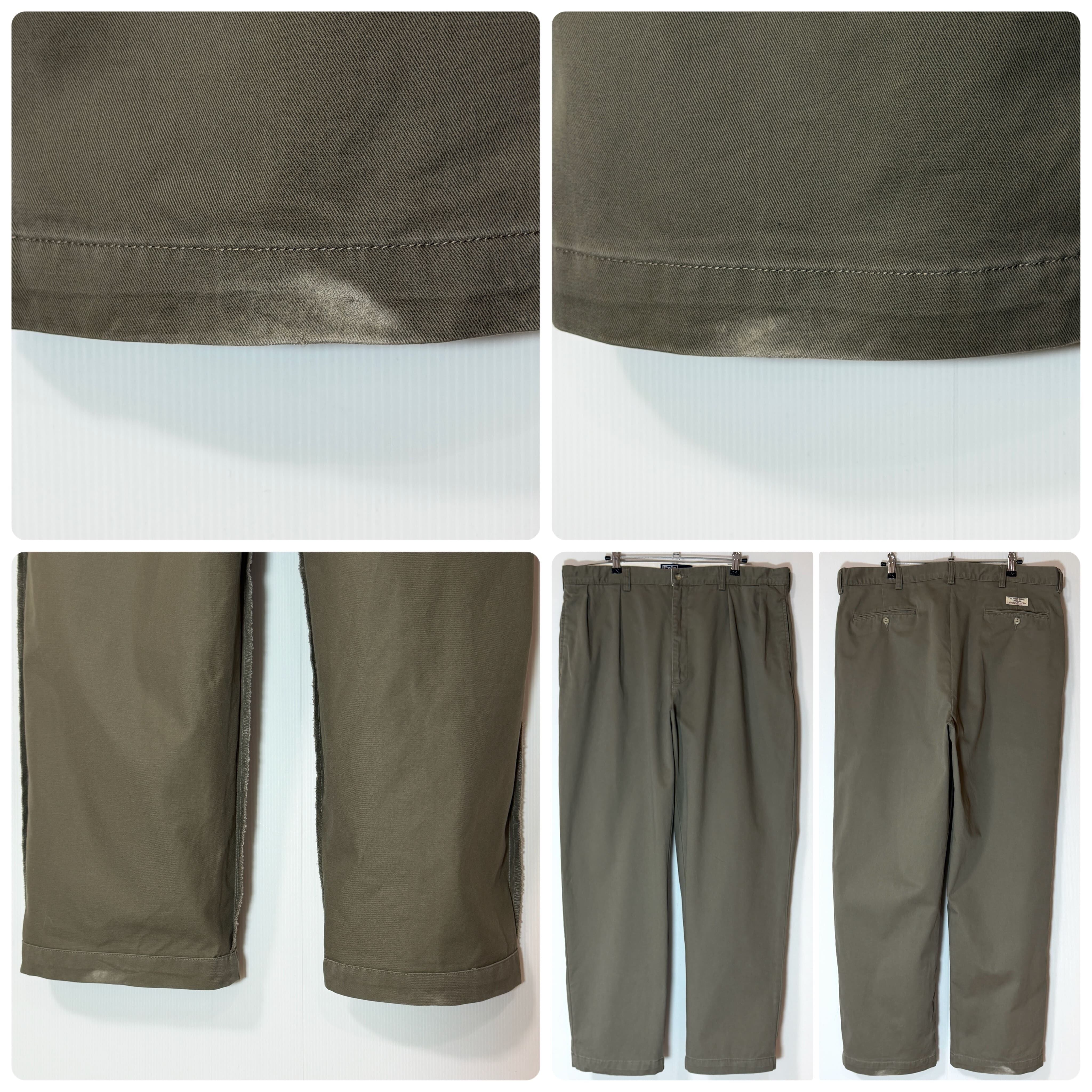 90s Polo Ralph Lauren ポロラルフローレン ツータック チノパン【W38L30】【カーキ/オリーブグリーン/Olive Green】ANDREW PANT アンドリューパンツ 2タック インプリーツ スラックス トラウザース パンツ ワイドバギー テーパード メンズ ボトムス ポロチノ 厚手 コットン 極太 1990年代 two tuck pleated chino trousers 100% COTTON p26013469