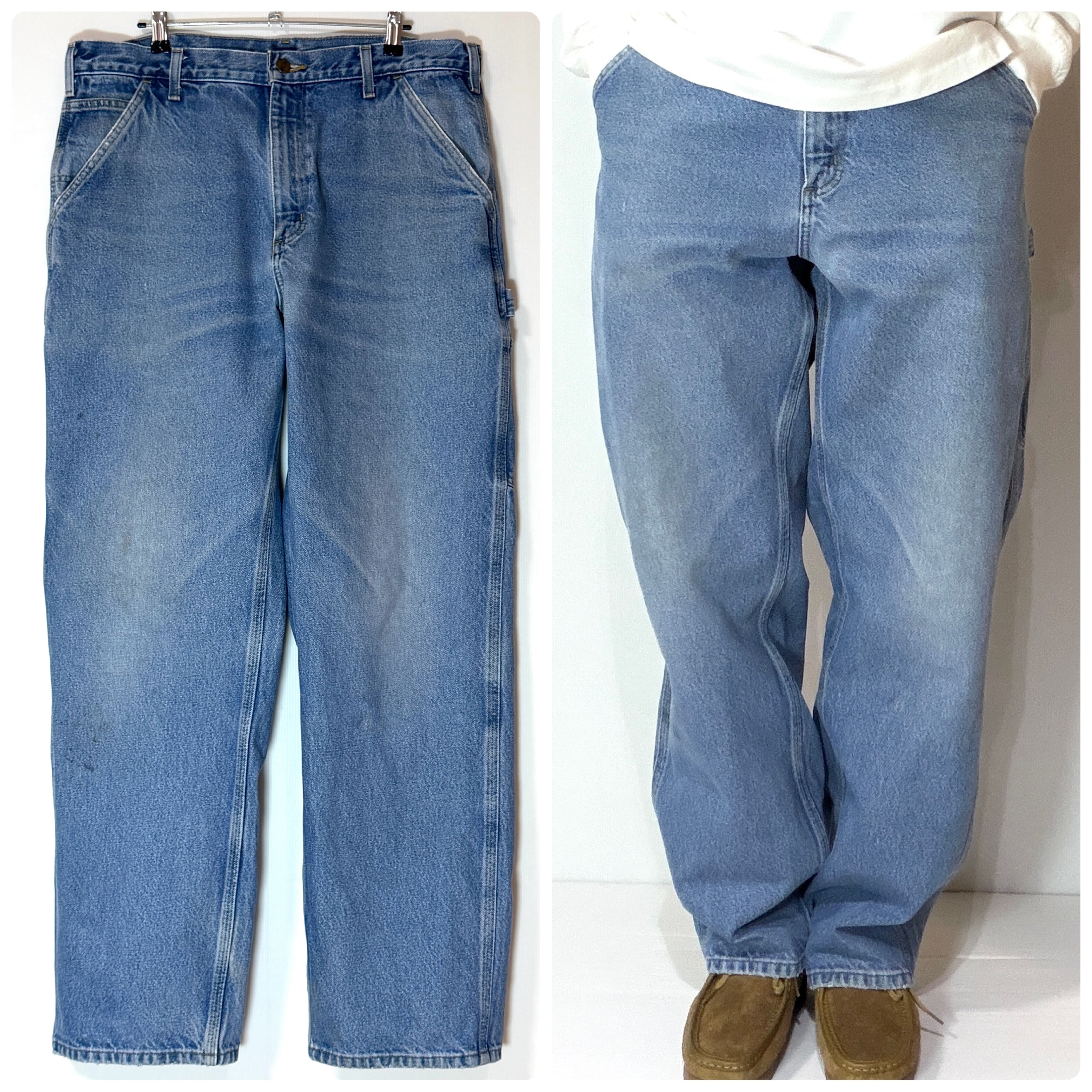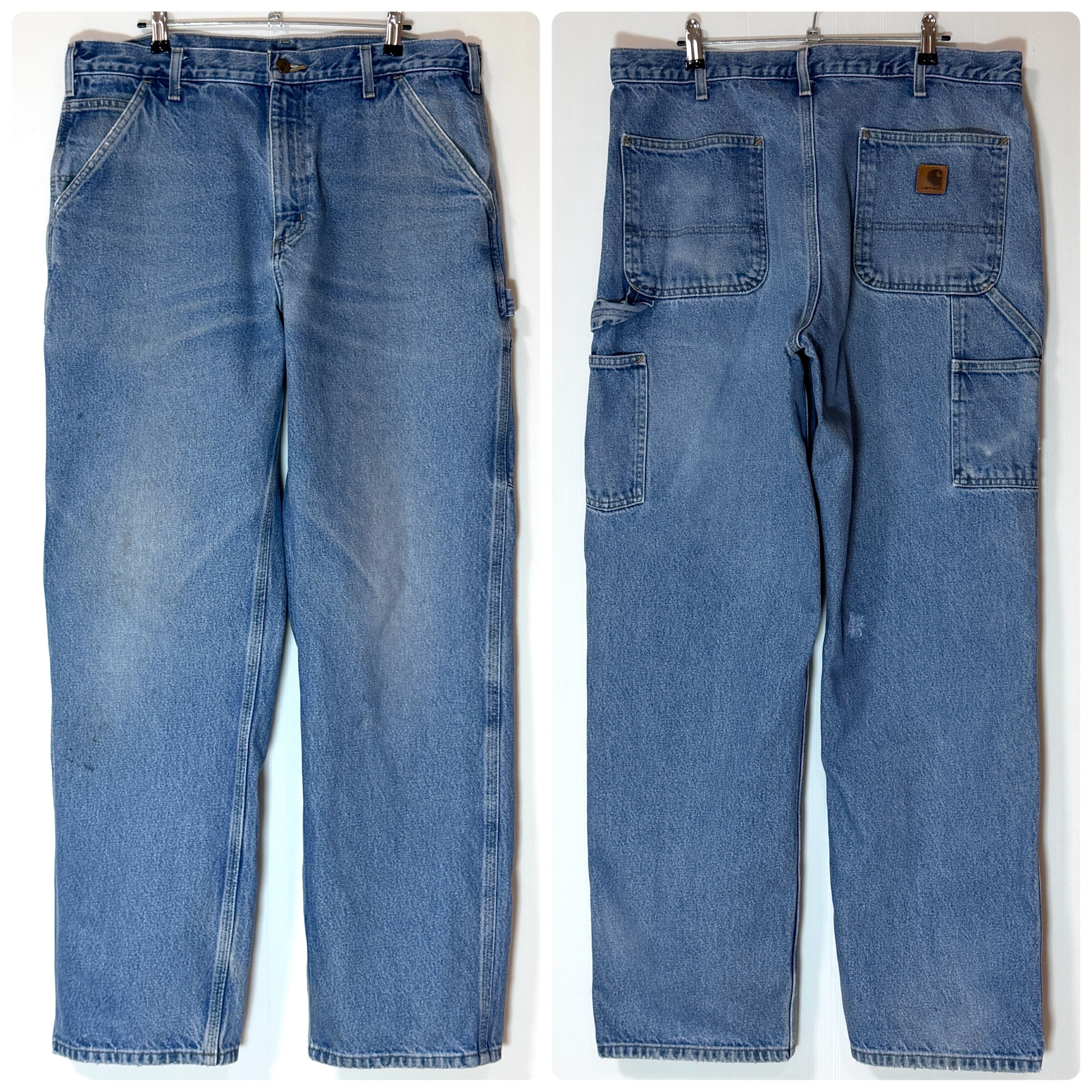 美フェード US企画 Carhartt カーハート ヘビーウェイト デニム ペインターパンツ【実寸W36L32】【ストーンウォッシュ】Dungaree Fit ダンガリーフィット ワンポイントレザーピスネーム レザーパッチ 超厚手 肉厚 コットン ワークパンツ ジーンズ ルーズ ワイドバギー メンズ ボトムス リアルワーク グッドフェード US規格 アメリカ流通 アメリカ買付 Heavyweight Denim Painter Pants Work Pant p26013458
