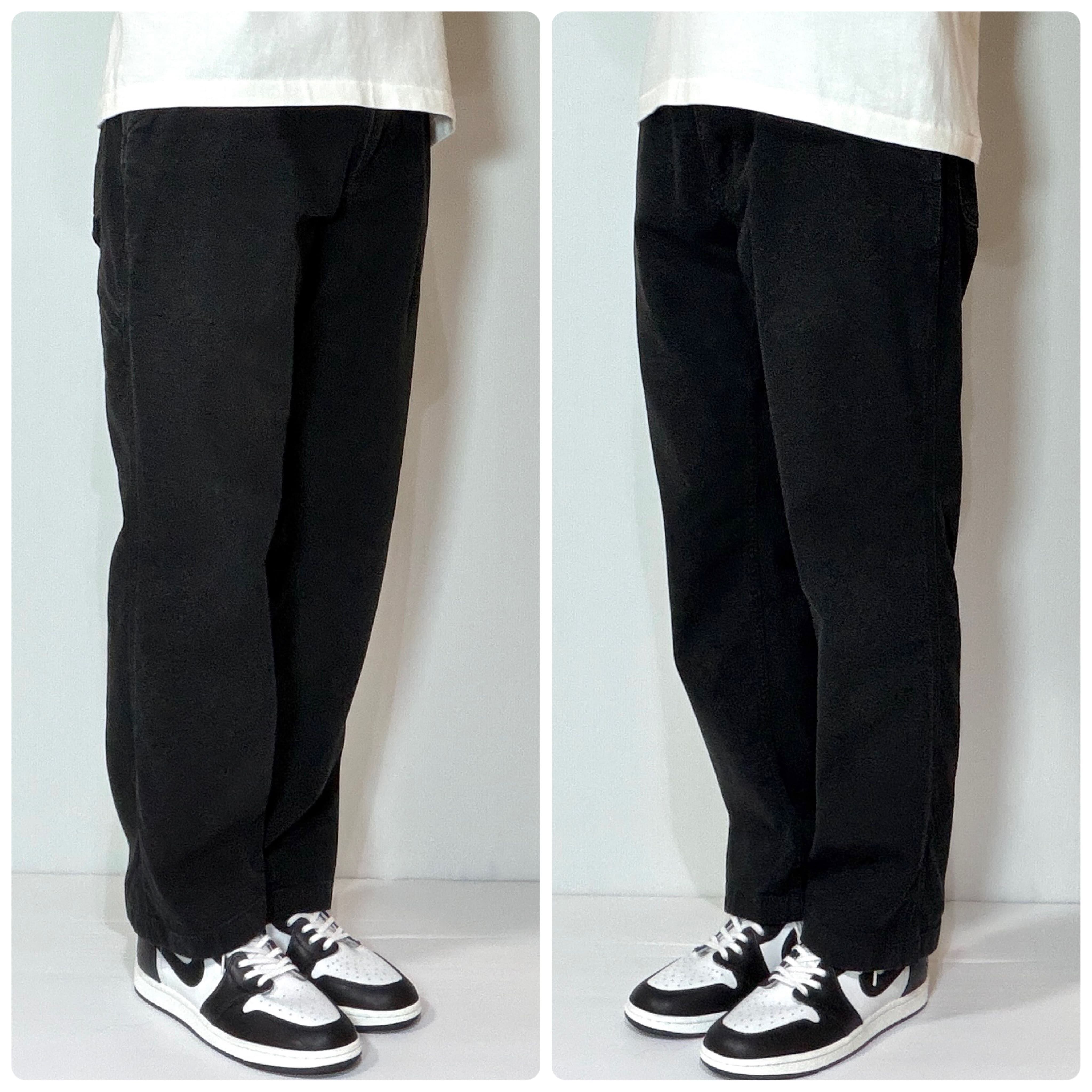 ・ストレッチの効いたややライトオンスのダック地で厚手のチノパンくらいの厚みの生地感、ヘビーダックよりも履きやすい柔らかい肌触りのシングルニーペインターパンツ