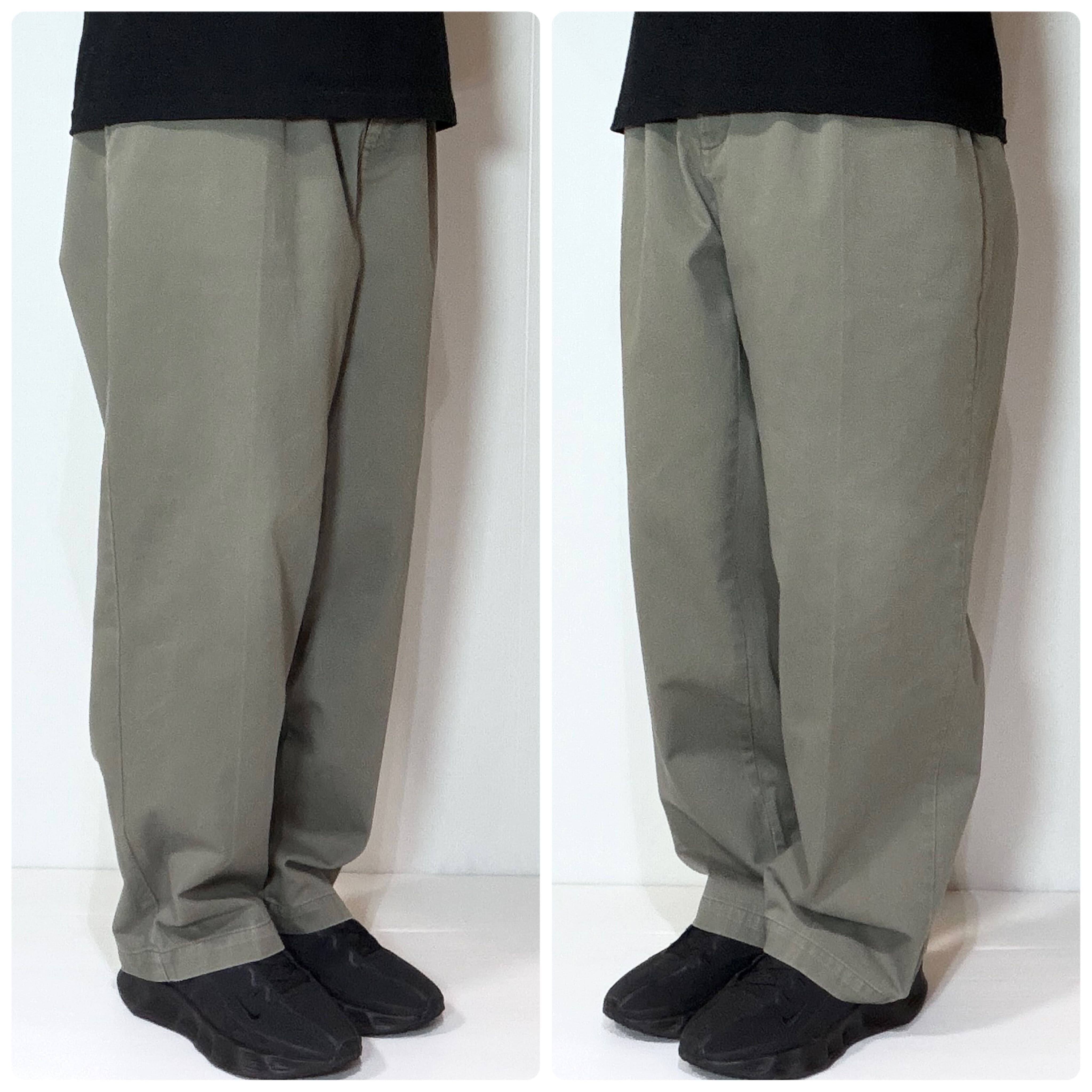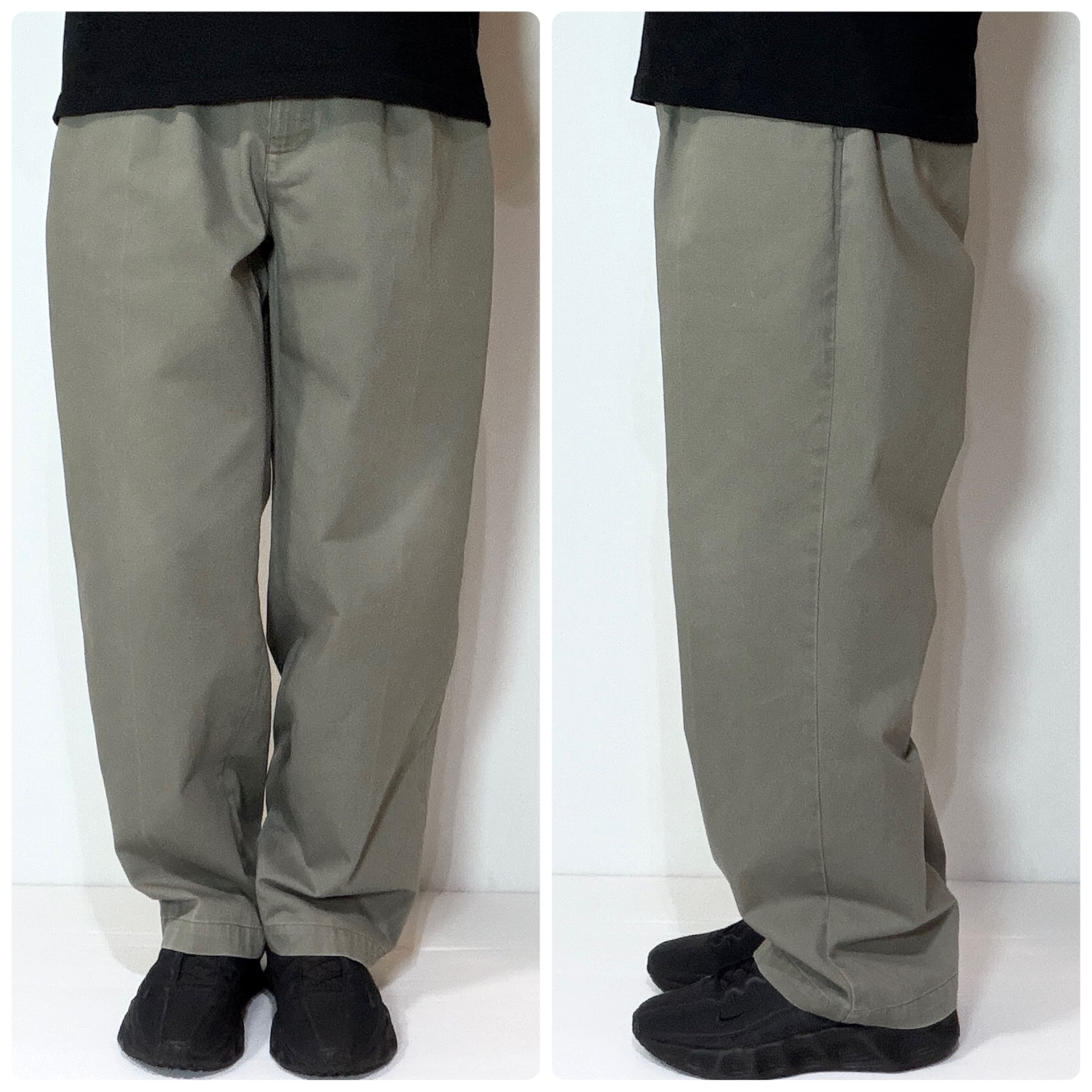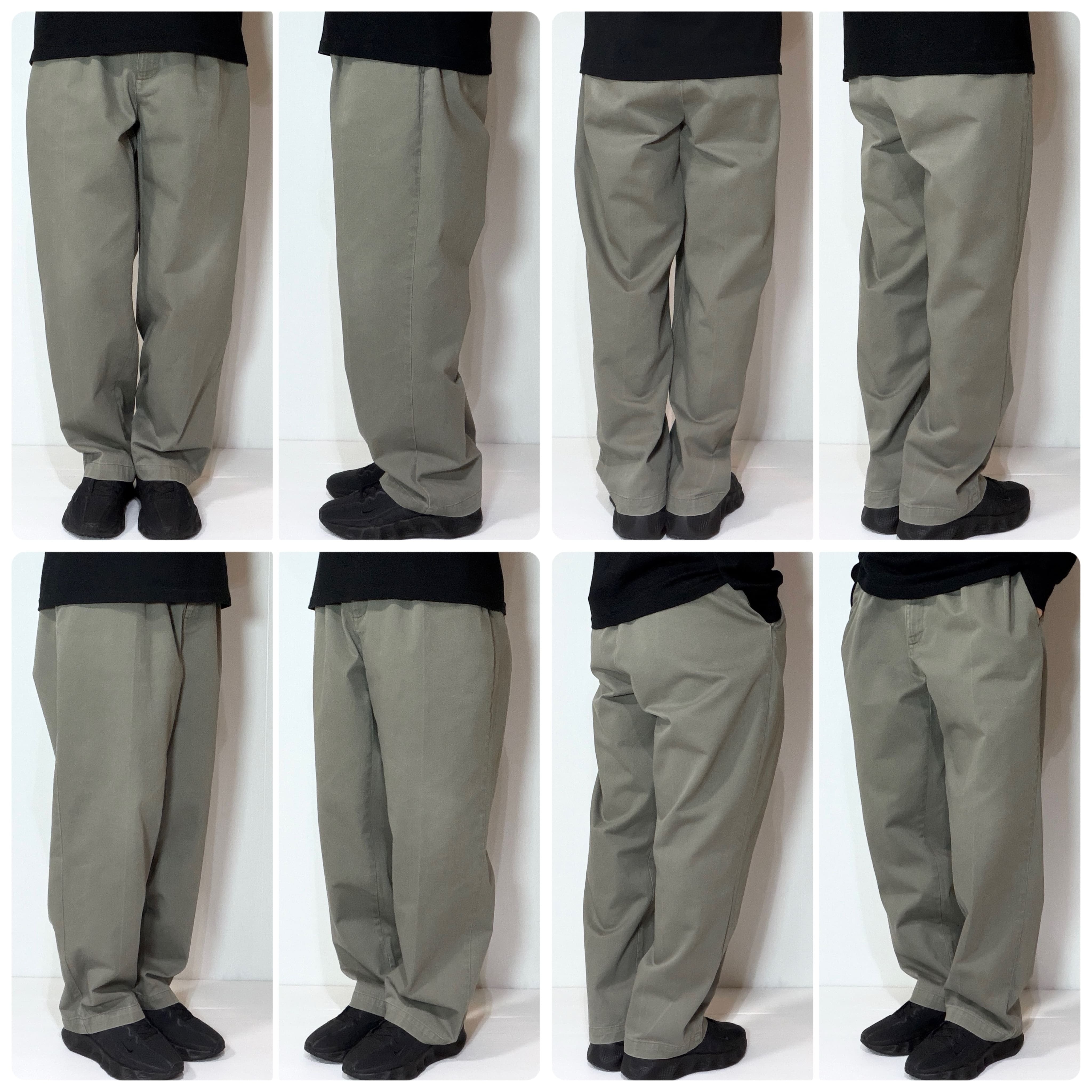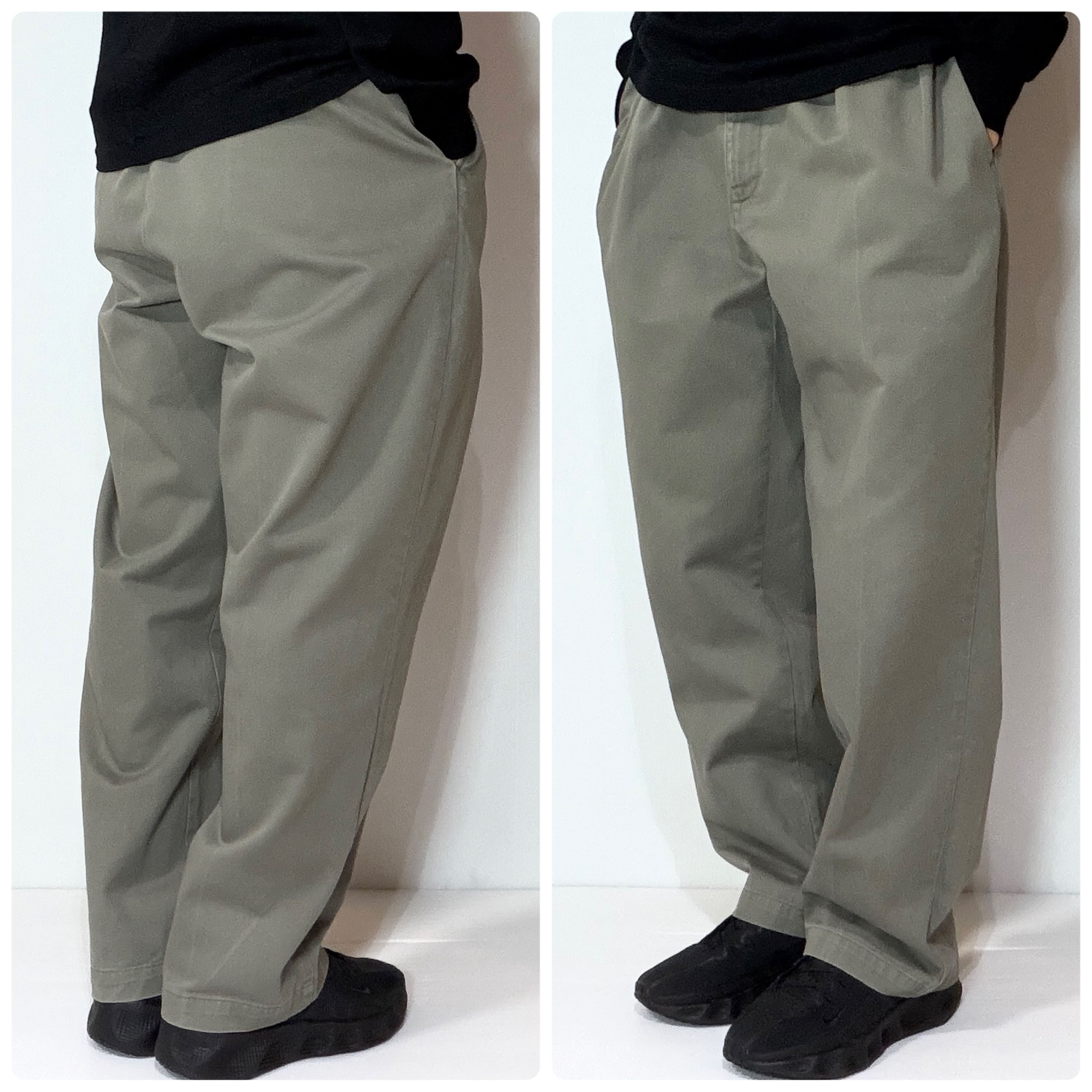 ・厚手のチノクロスのコットンツイル素材で腰回りやわたり幅やゆったりとしたツータックのワイドなシルエット