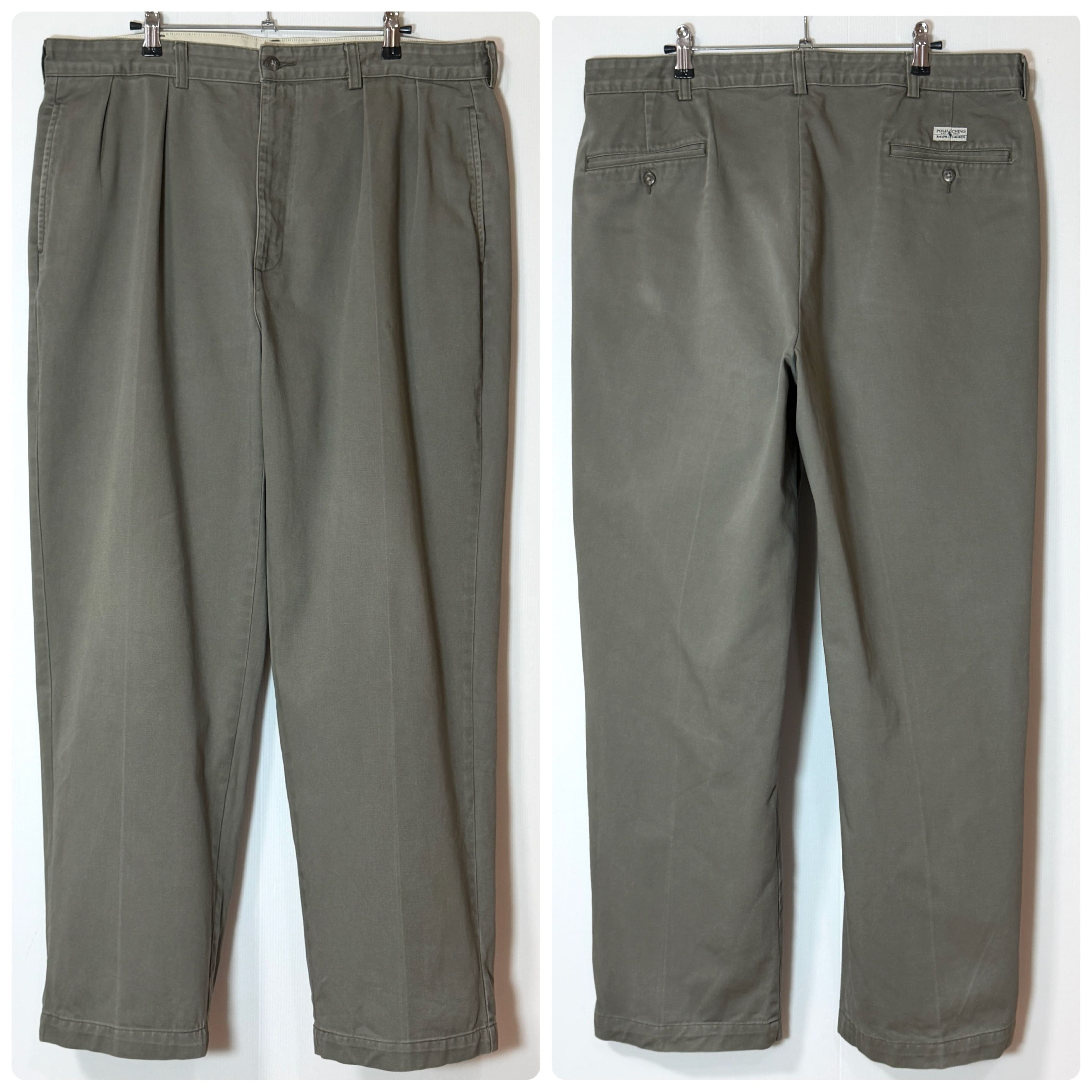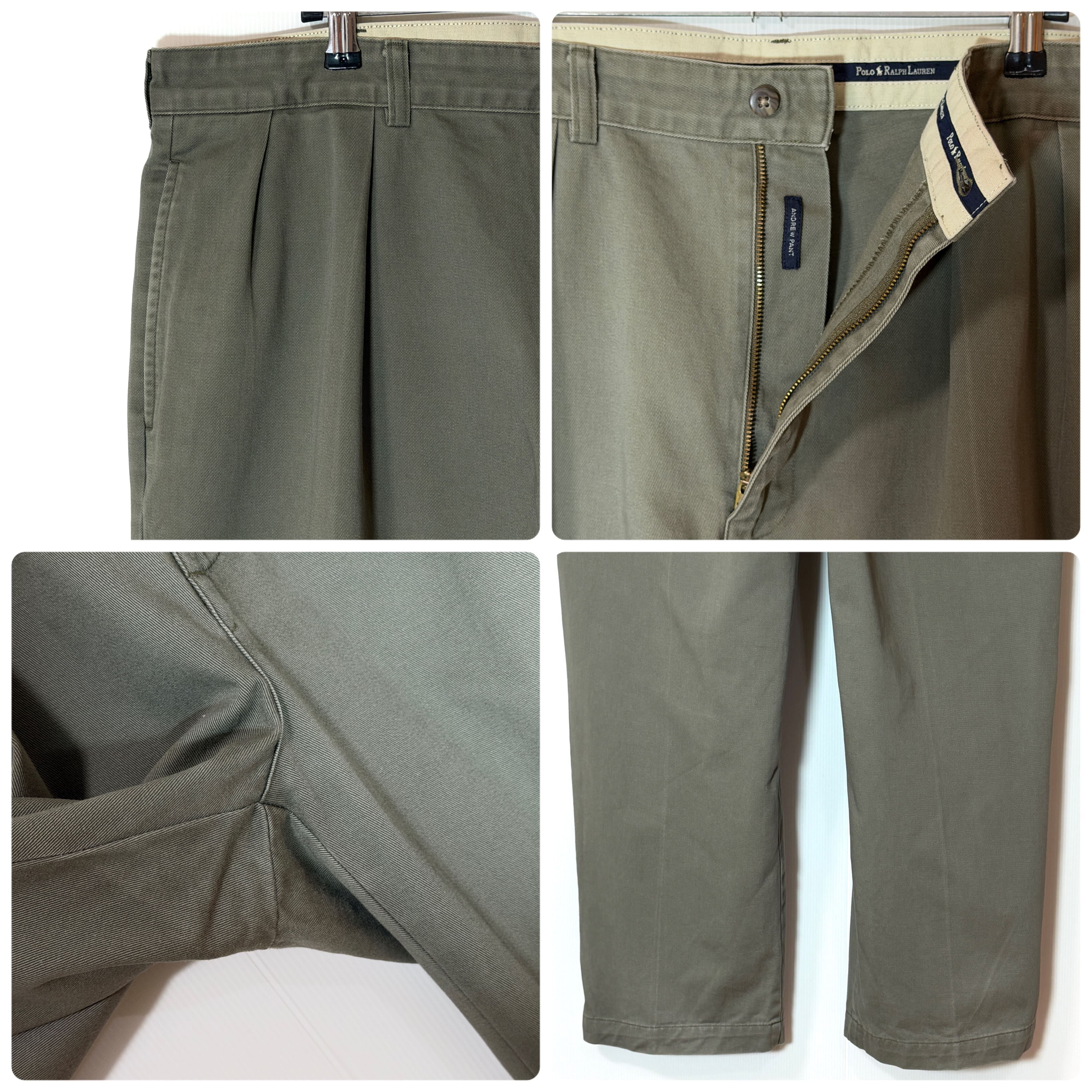 90s Polo Ralph Lauren ANDREW PANT ポロラルフローレン ツータック チノパン アンドリューパンツ 2タック インプリーツ スラックス トラウザース パンツ ワイドバギー テーパード メンズ ボトムス ポロチノ 厚手 コットン 極太 1990年代 two tuck pleated chino trousers 100% cotton アメリカ買付