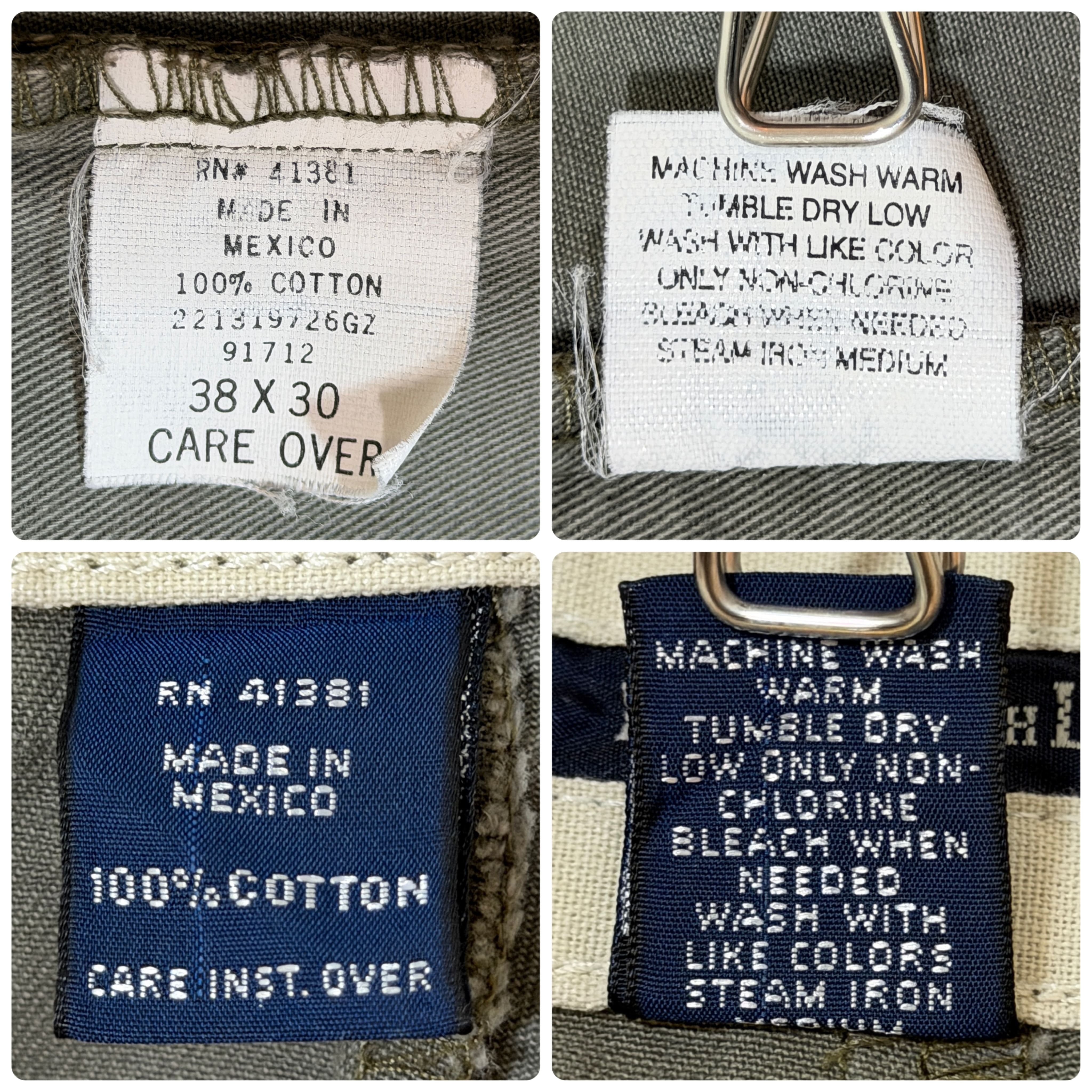 ・90sメキシコ製、ロック機能付きのブラスジップ、両玉縁のバックポケット、ワンポイント刺繍ロゴピスネーム、ウエストのブランドロゴ入りのライニングテープ、レアカラーのカーキ