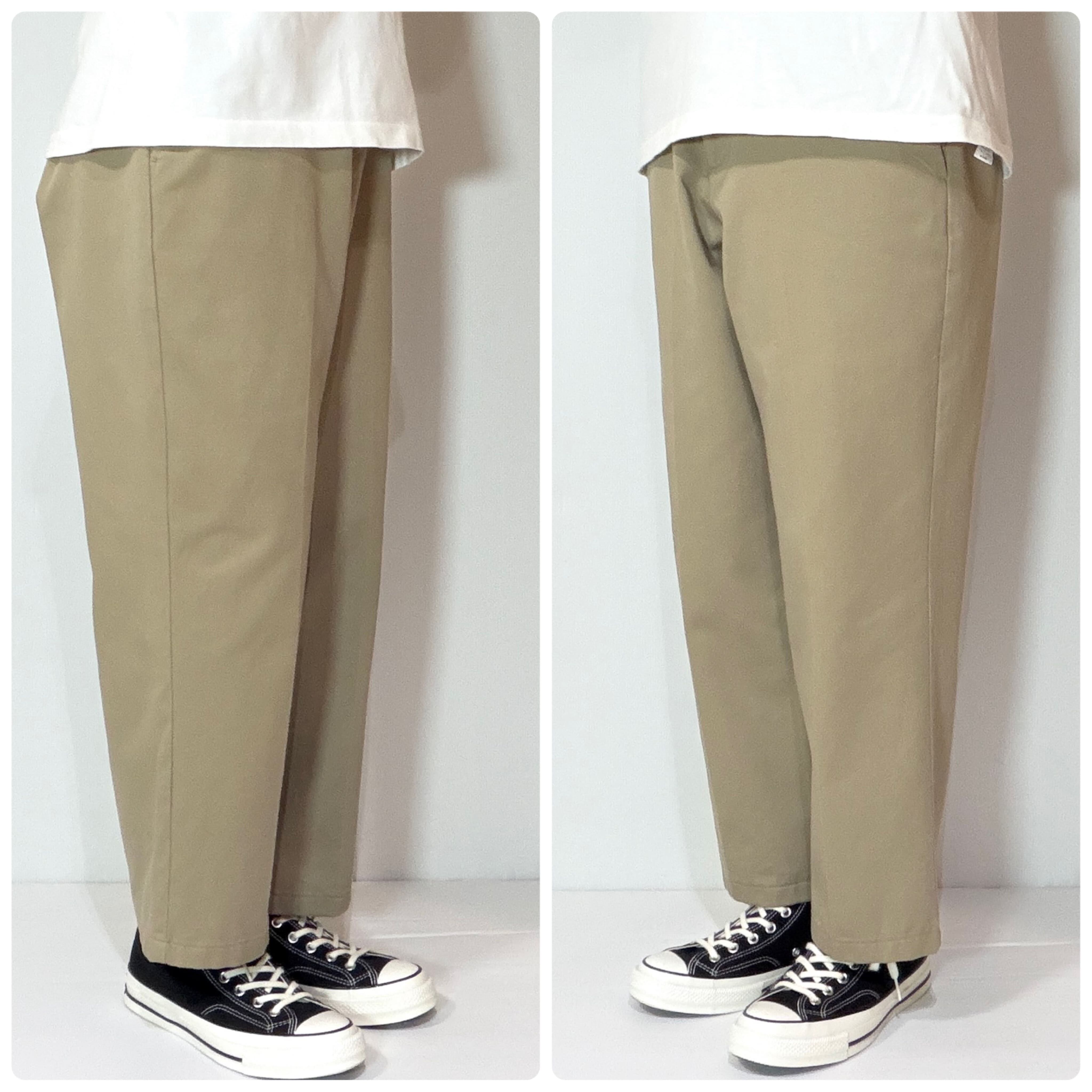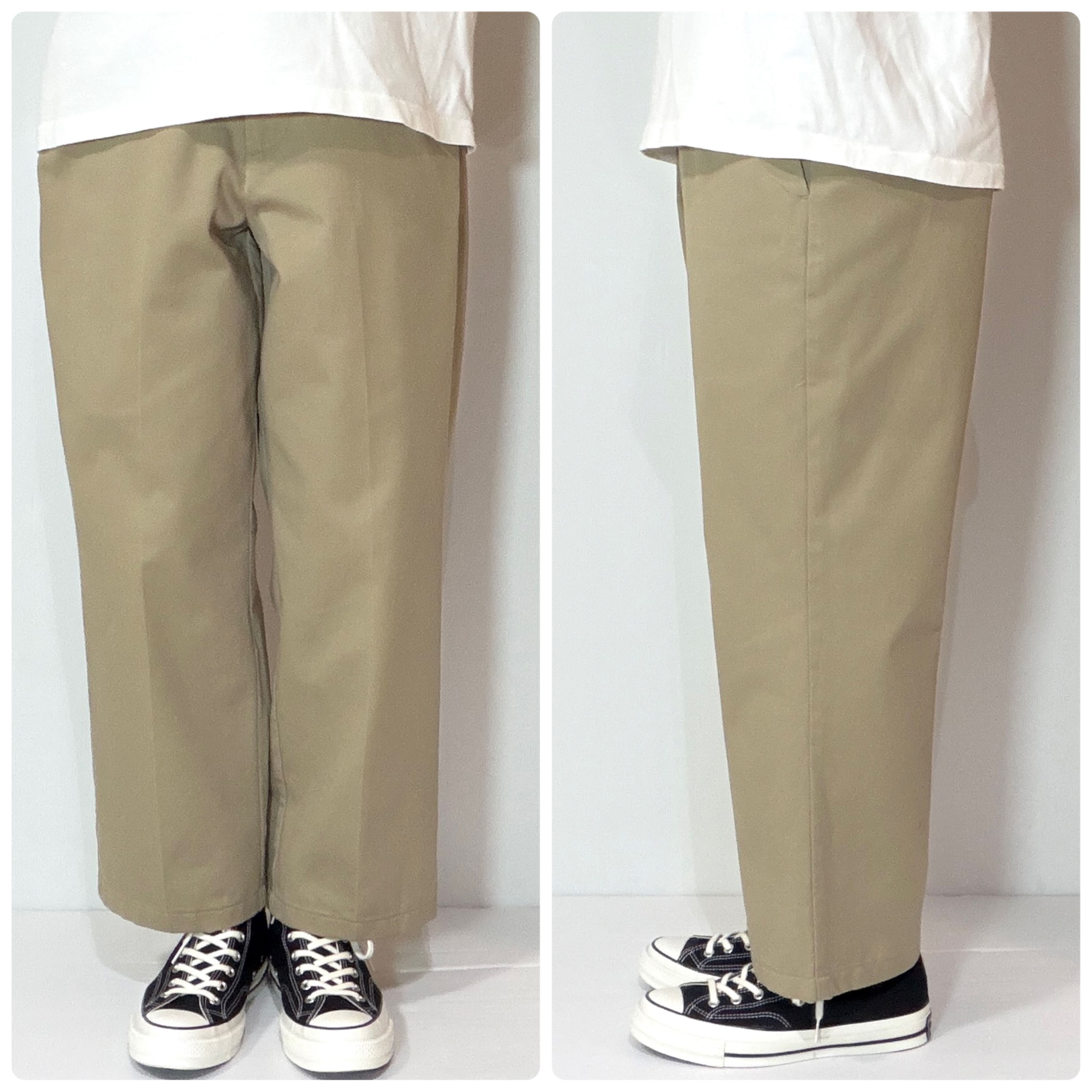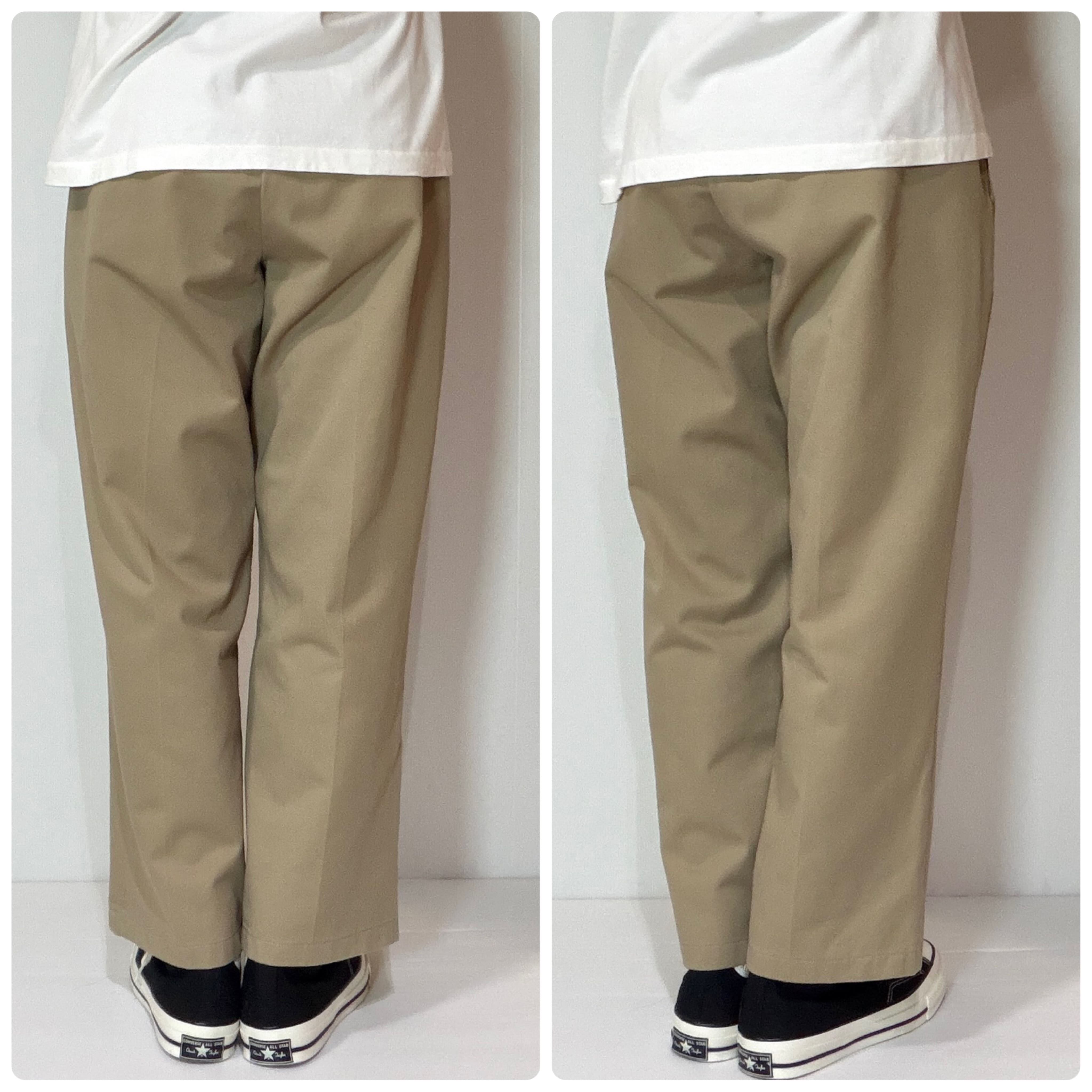 ・腰回りやわたり幅も広く綺麗にストンと落ちるワイドストレートシルエット、Dickies874(ディッキーズ)とよく似た形で、それを上品にコットン素材にしたようなモデルです。