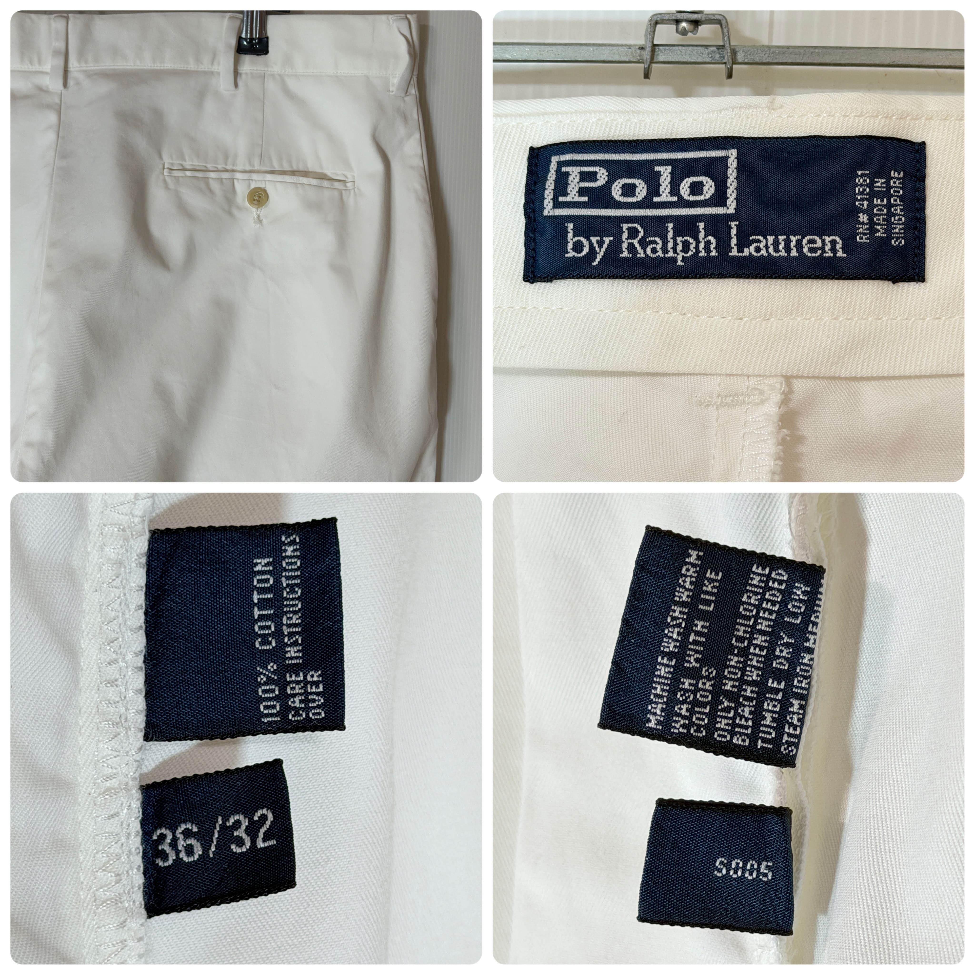 希少カラー Polo by Ralph Lauren ポロラルフローレン ライトオンス コットン ノータック チノパン【W36L32】【ホワイト/白/WHITE】チノクロス スラックス パンツ ワイドバギー テーパード メンズ ボトムス ポロチノ クラシックチノ トラウザーズ 完全無地 薄手 希少カラー アメリカ買付 NO TUCK CHINO PANT 100% COTTON TROUSERS p26023492