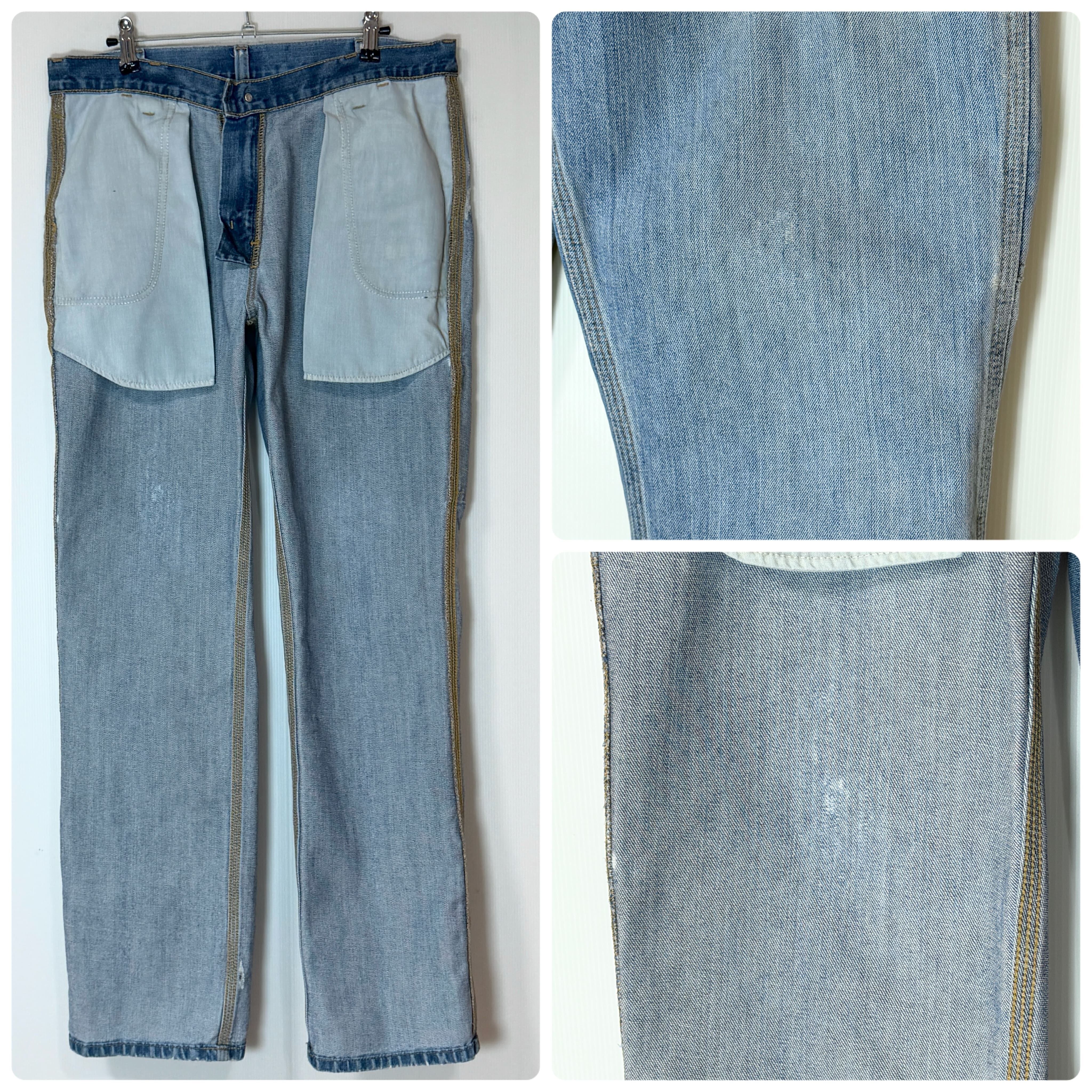 ・元々は厚手の生地ですが標準的な厚みくらいになったポリ混の速乾性にも優れたデニム素材、ダブルニーよりも春夏に使いやすい生地感と色味のシングルニーペインターパンツです。
