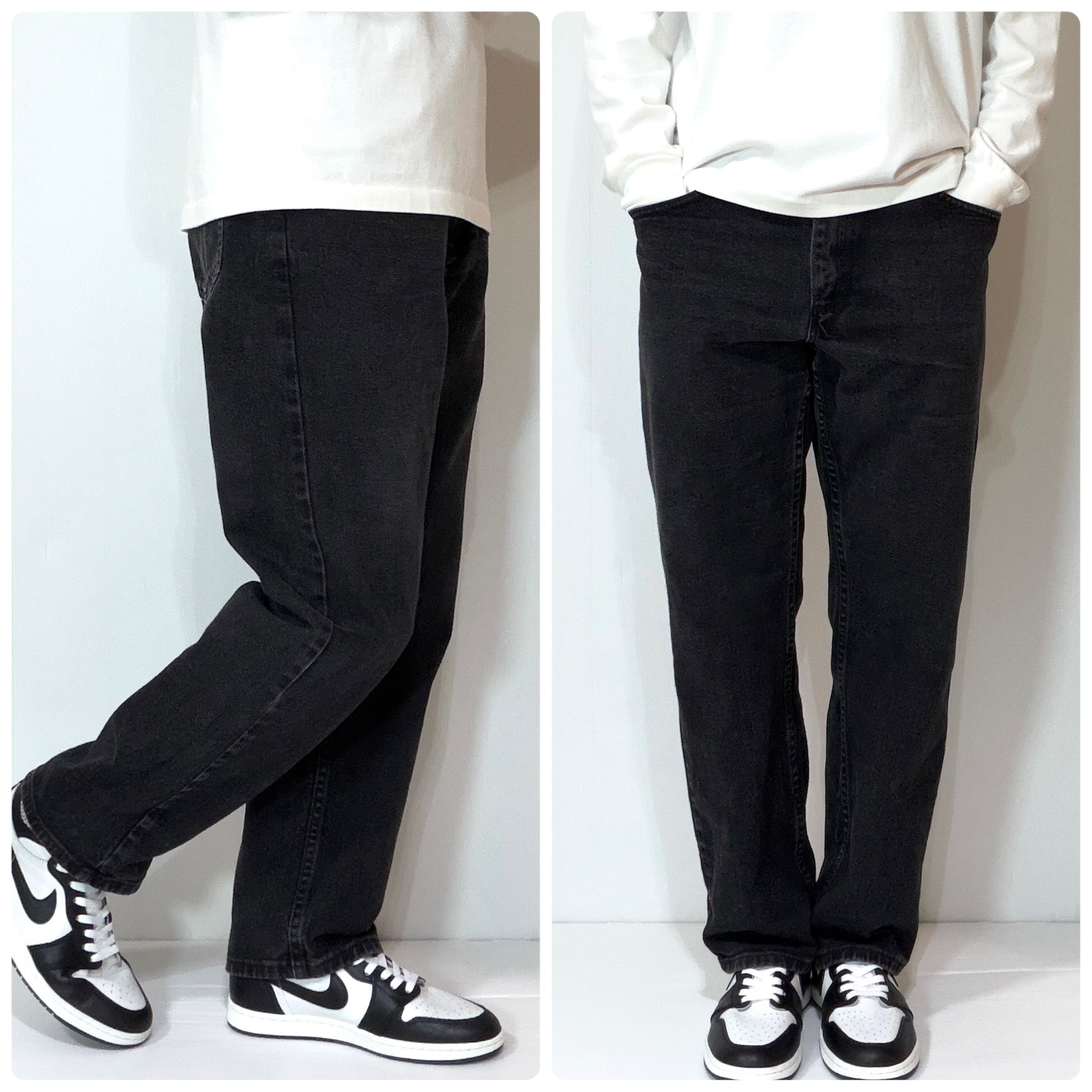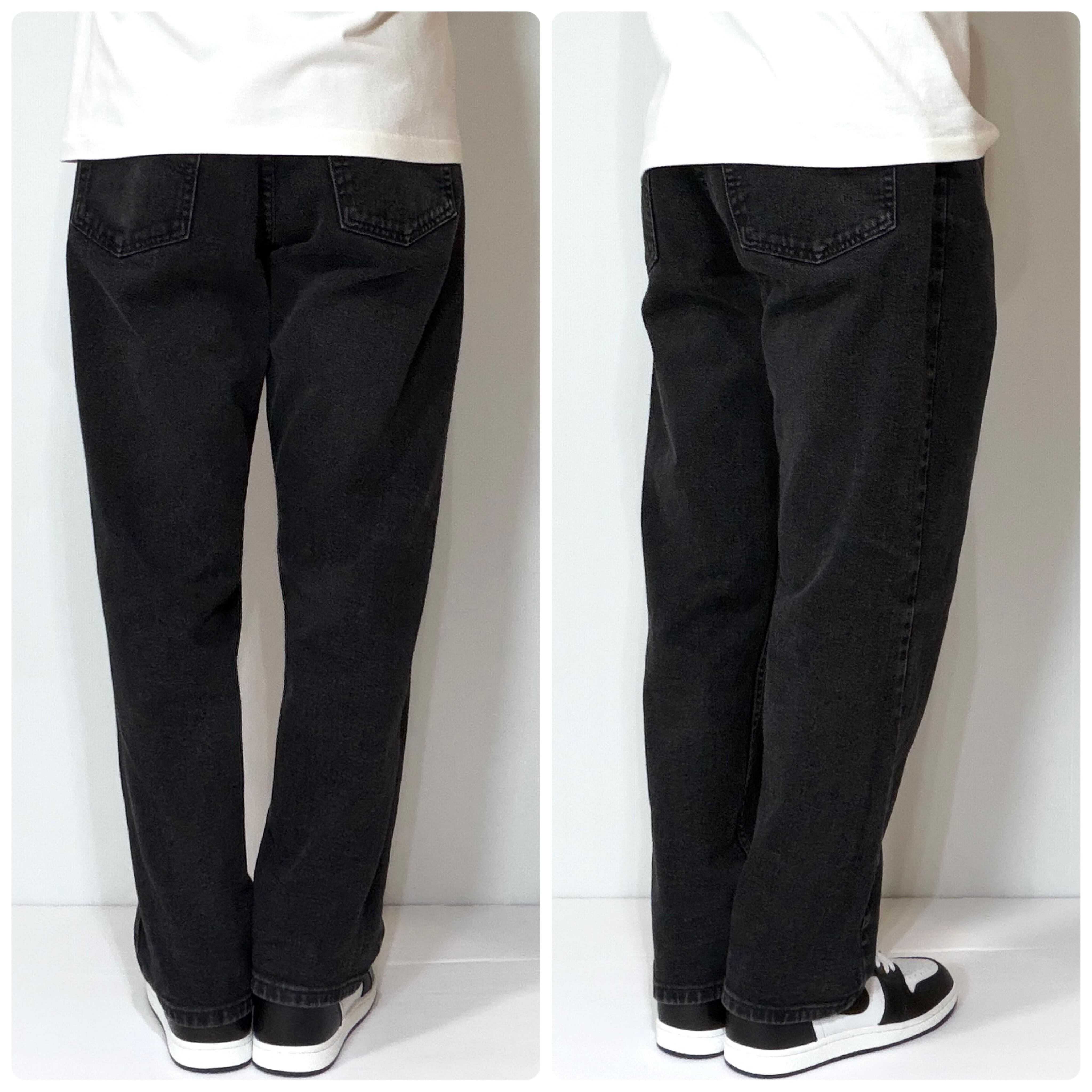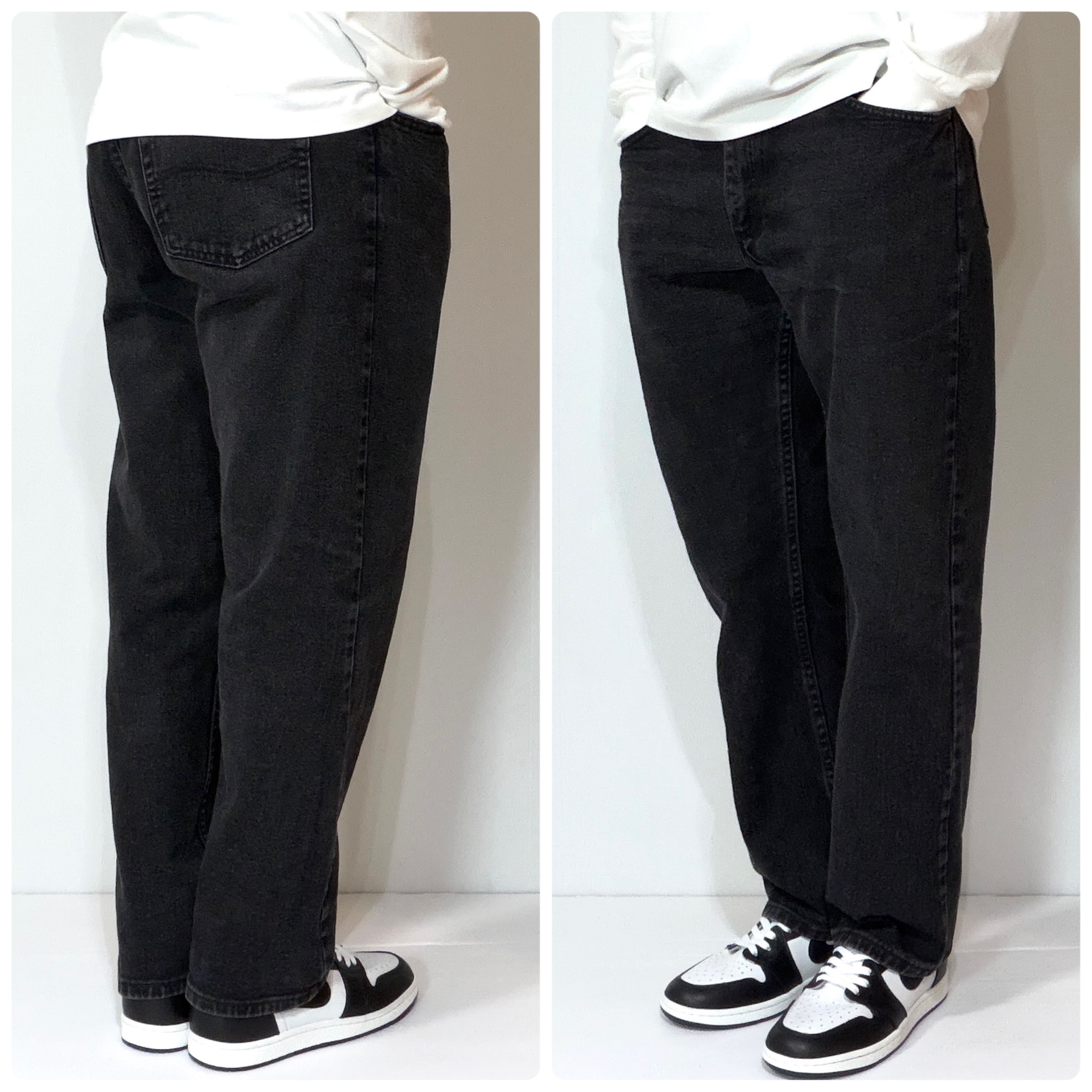 ・Leeの125周年記念年代のレギュラーフィットのブラックジーンズ、Levi'sの501や505のような流行りに左右されないスタンダードなストレートフィットです。