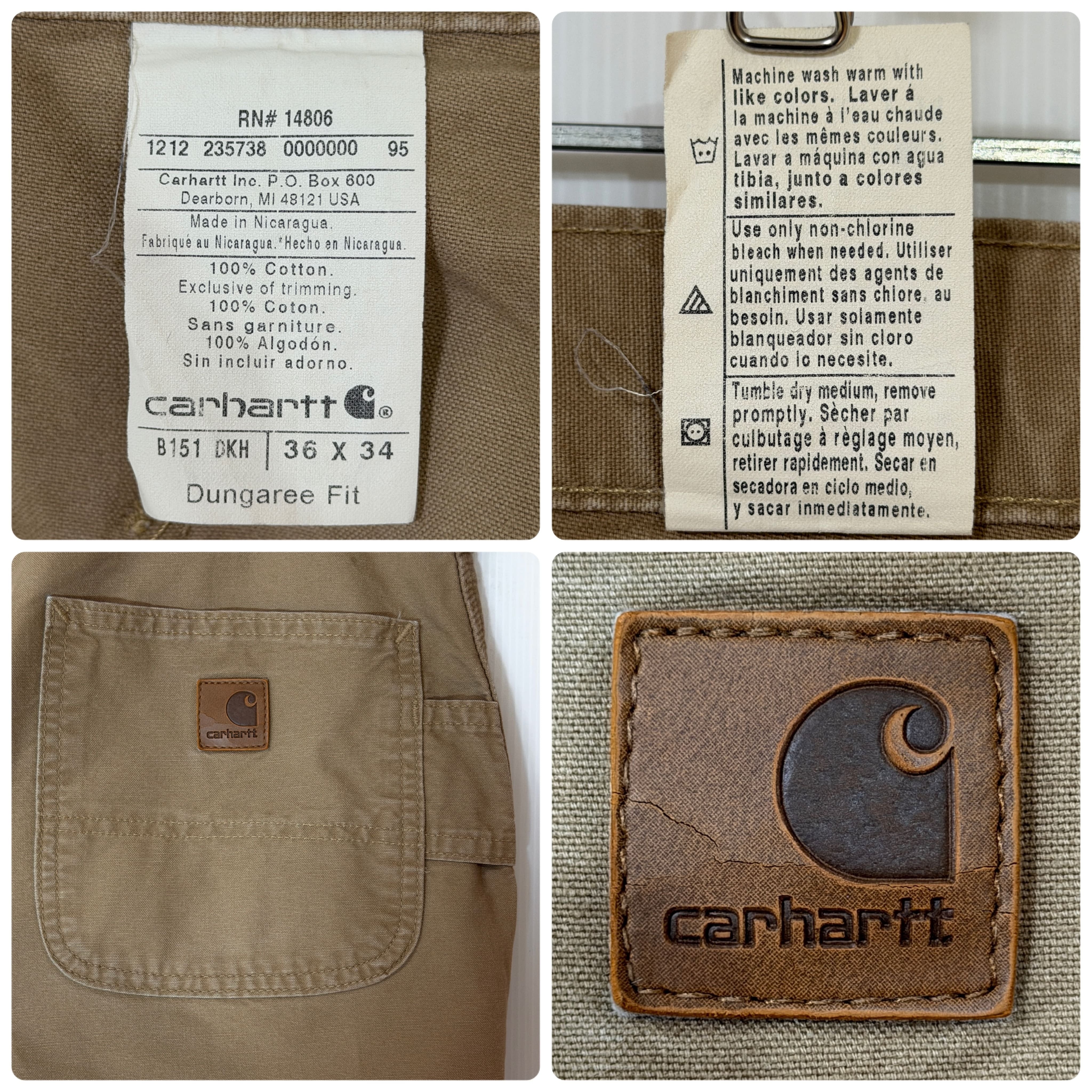 US企画 Carhartt B151 DKH Light Duck Painter Pants DUNGAREE FIT CANVAS WORK PANT カーハート ワンポイントレザーピスネーム レザーパッチ ライトオンス ライトダック地 ペインターパンツ ワークパンツ メンズ ボトムス ダンガリーフィット レアカラー ゴールデンサイズ 極太 ワイドバギー ワイドパンツ US規格 アメリカ流通 10s 2012年ニカラグア製