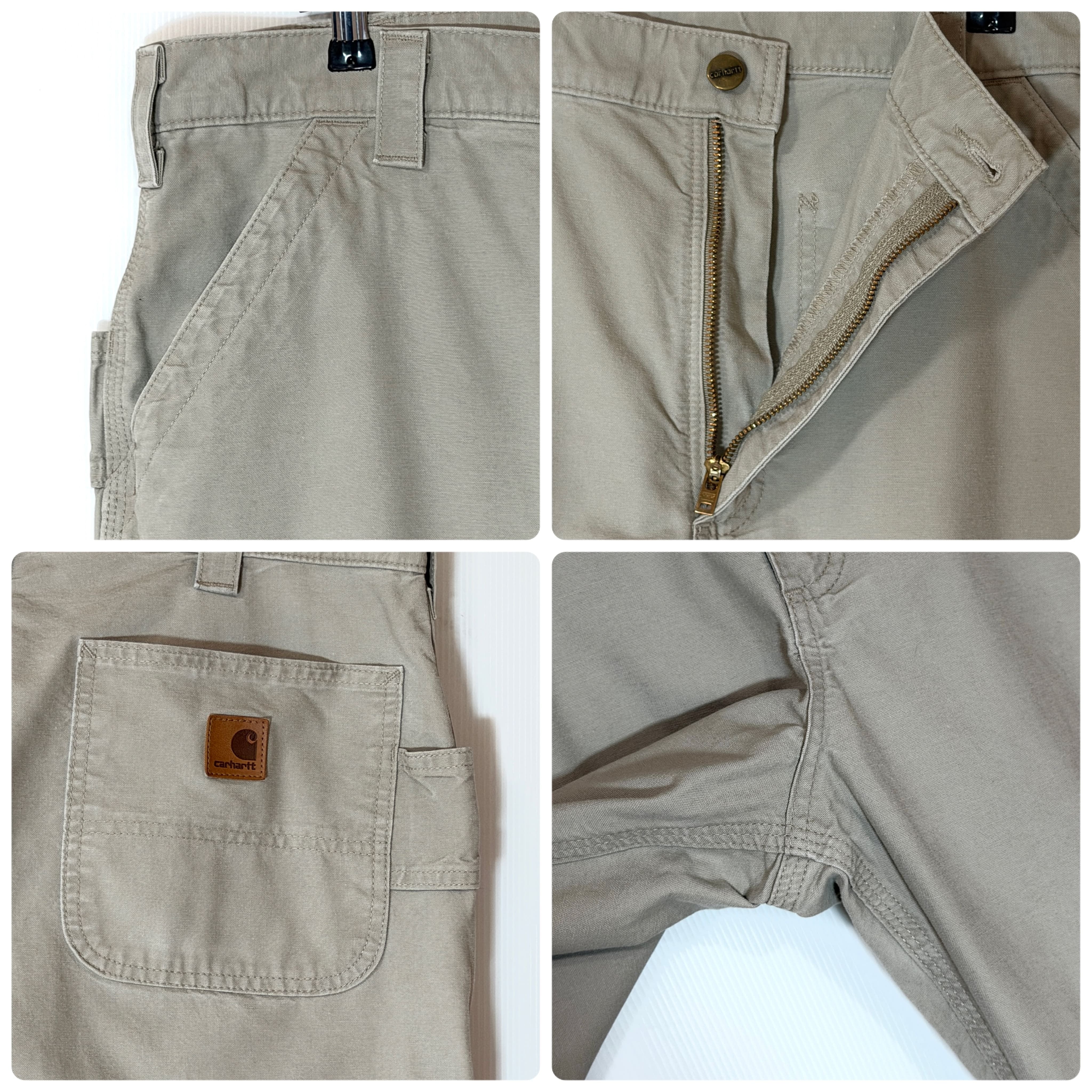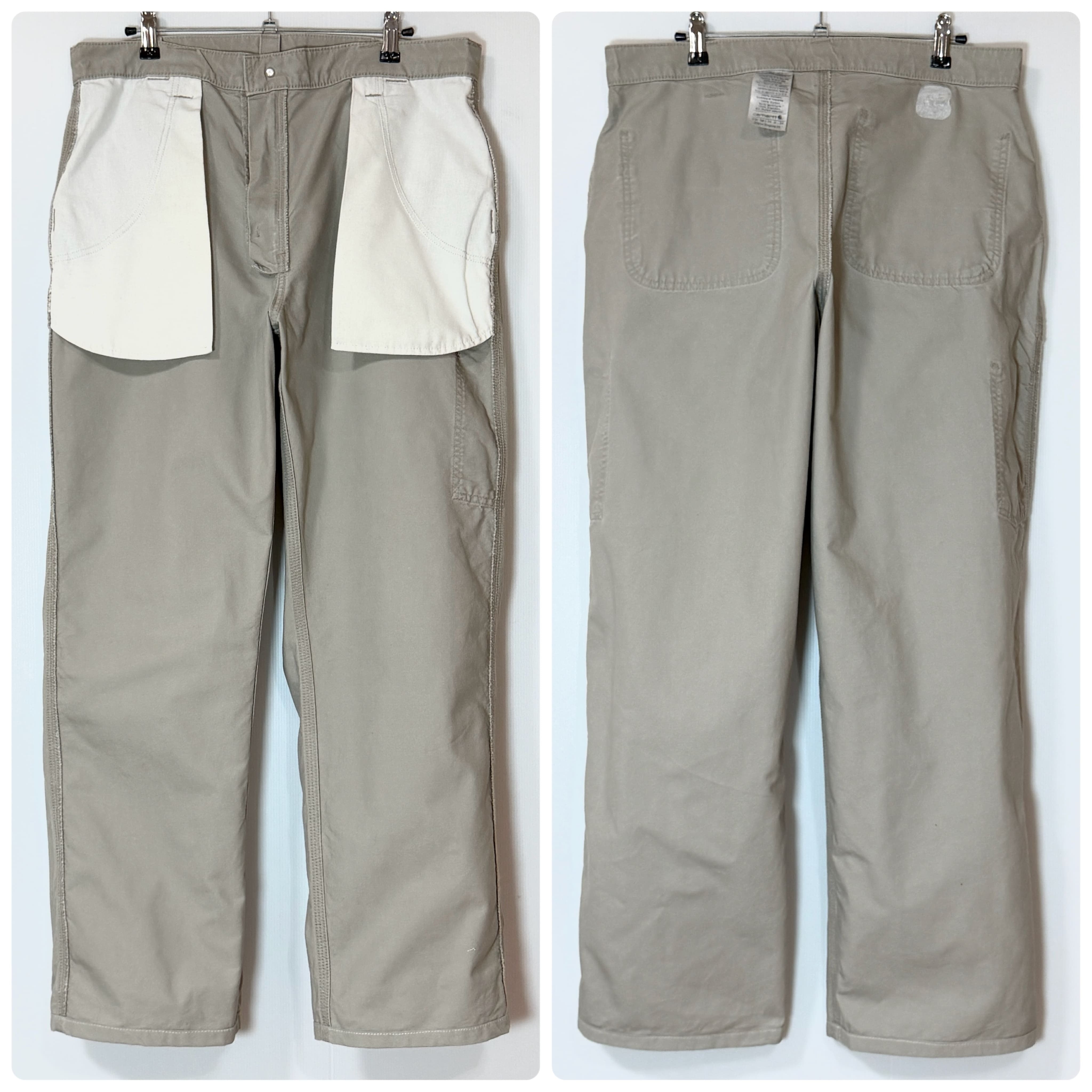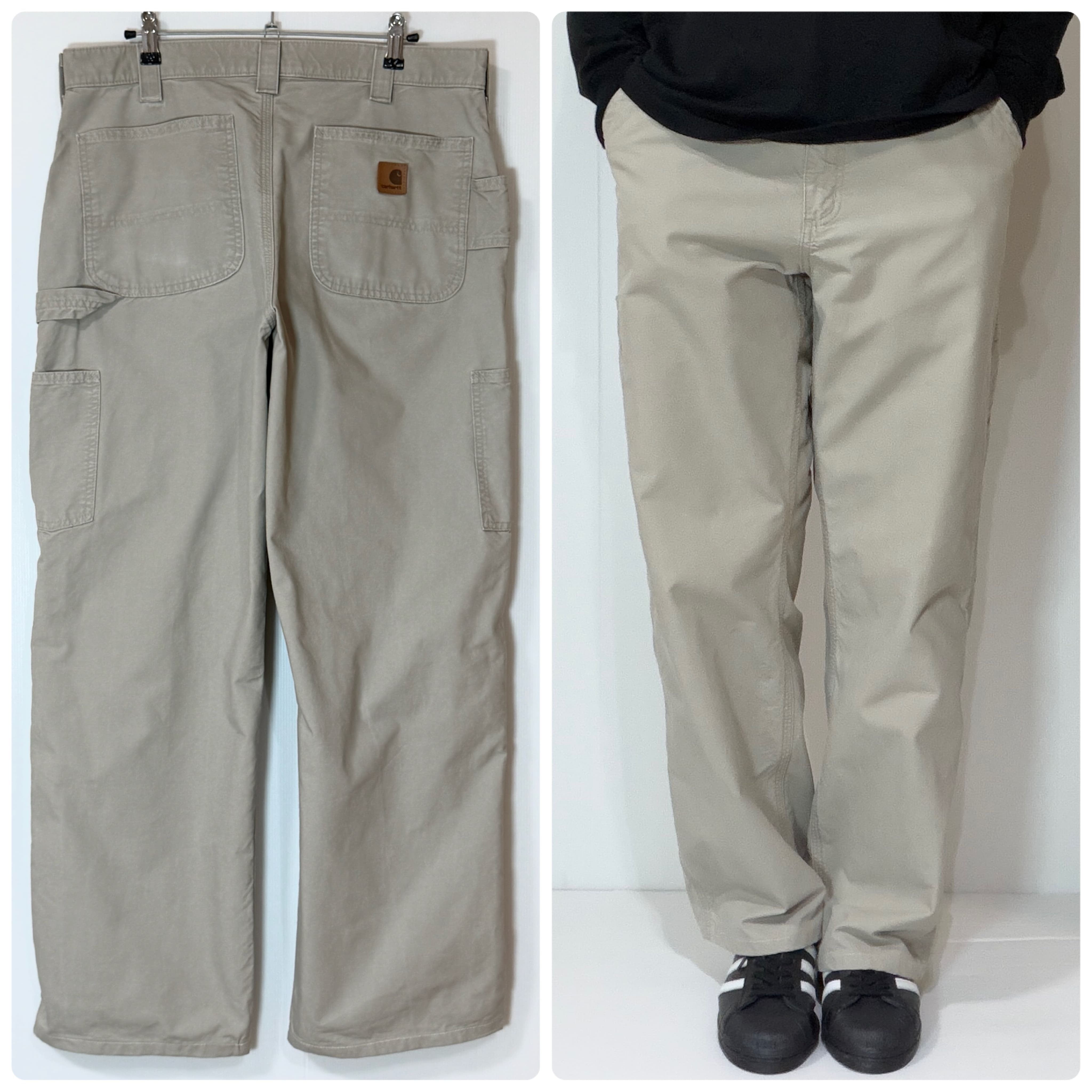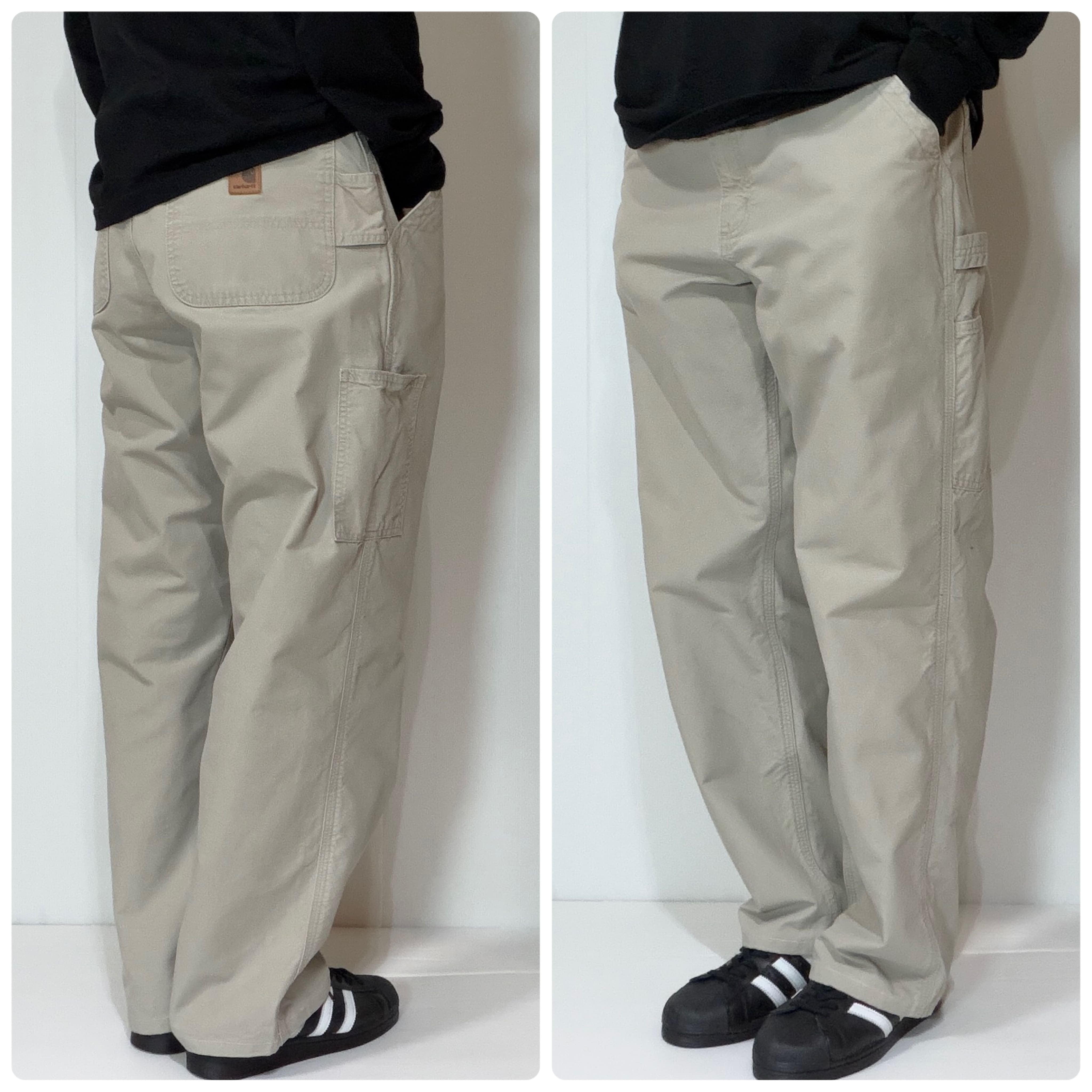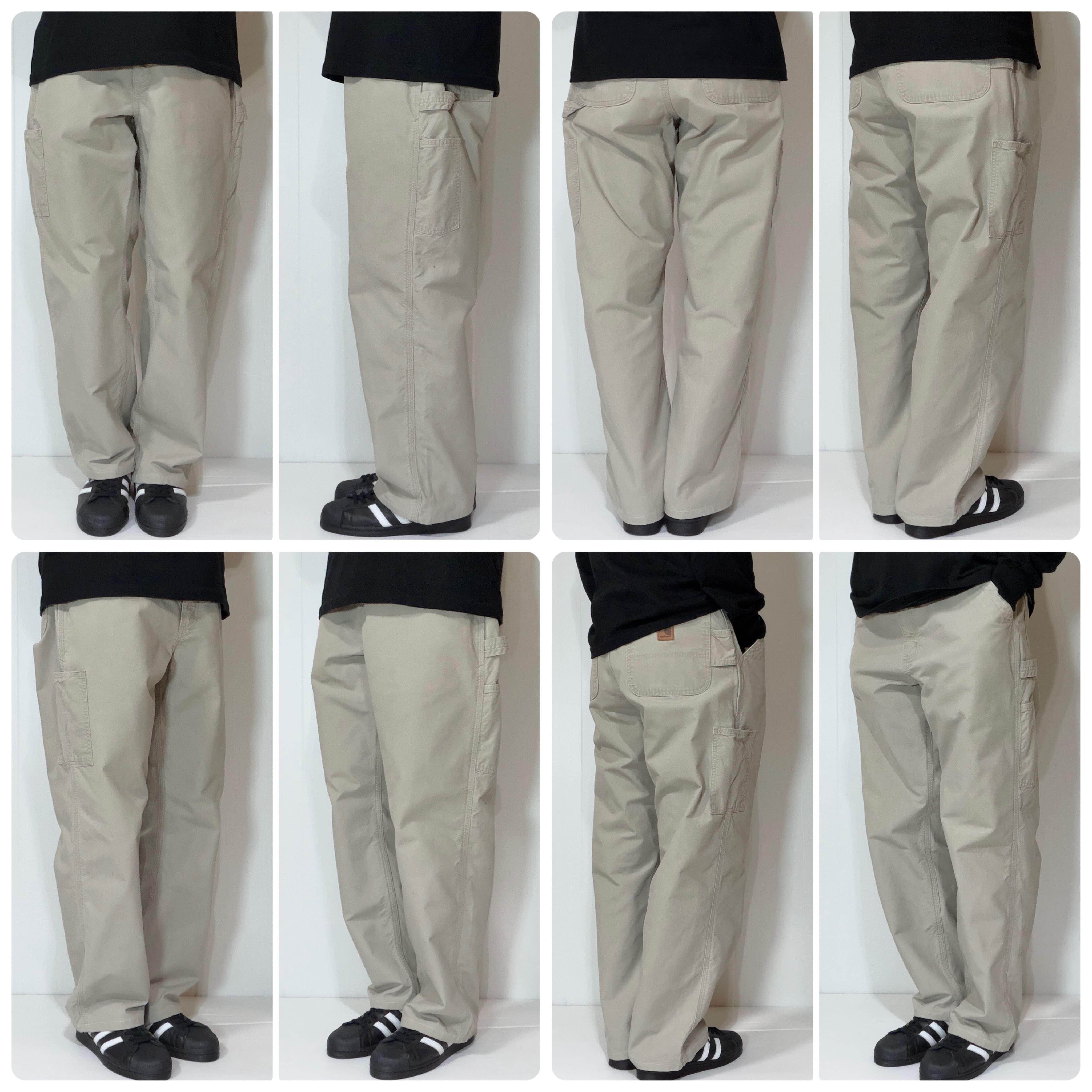 US企画 Carhartt B151 TAN Light Duck Painter Pants ORIGINAL DUNGAREE FIT CANVAS WORK PANT カーハート ワンポイントレザーピスネーム レザーパッチ ライトオンス ライトダック地 ペインターパンツ ワークパンツ メンズ ボトムス ダンガリーフィット グッドフェード レアカラー ゴールデンサイズ 極太 ワイドバギー ワイドパンツ US規格 アメリカ流通 10s