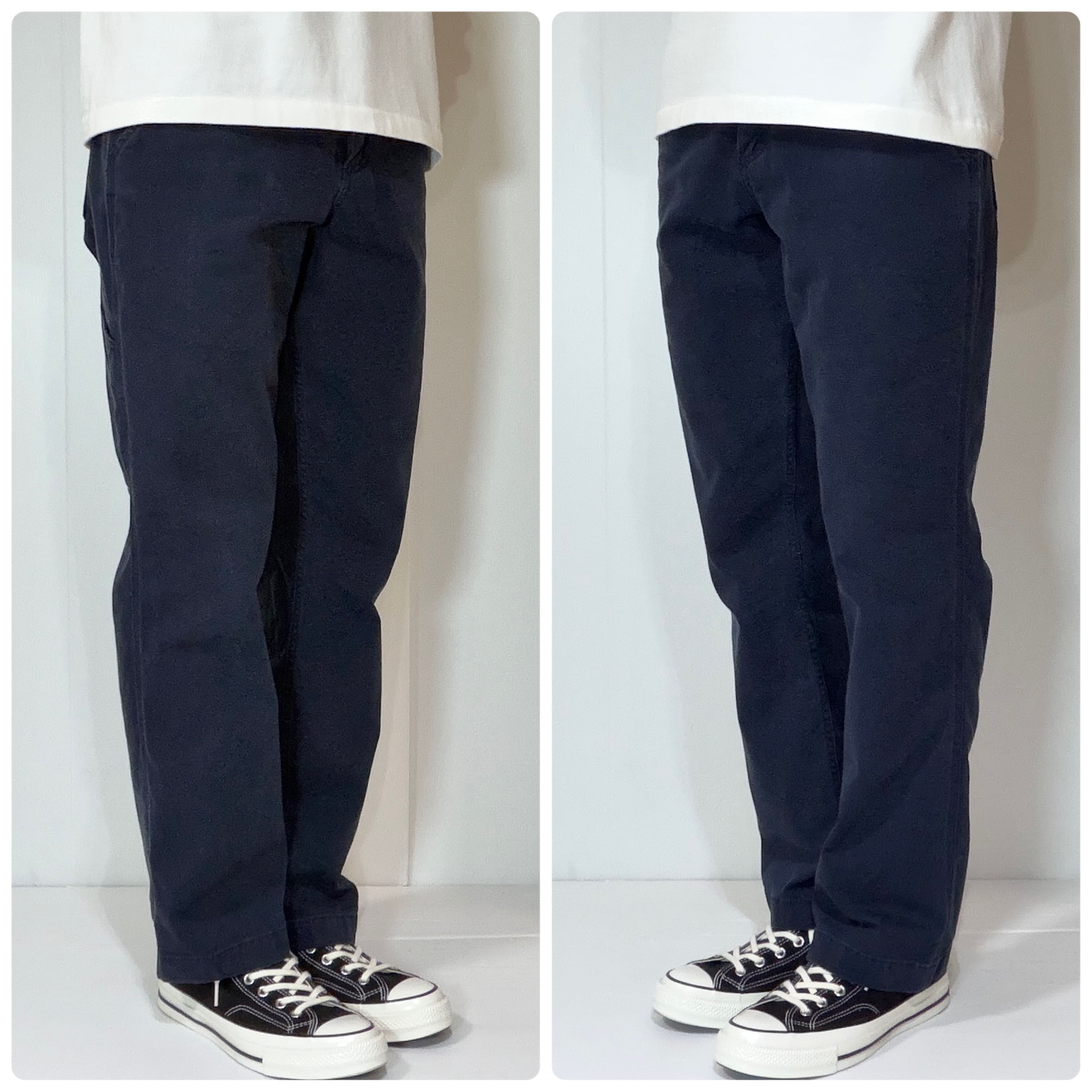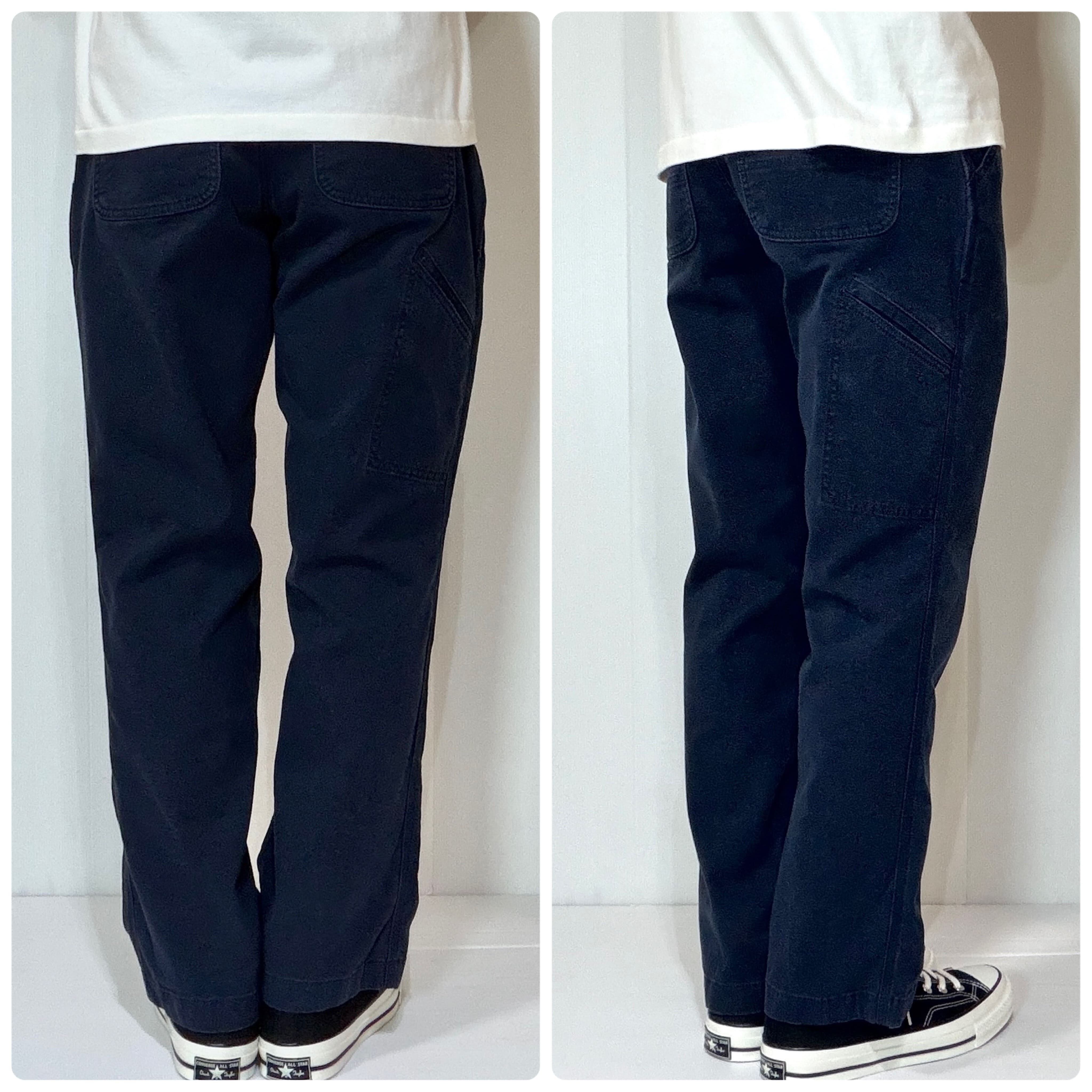 ・ストレッチの効いたややライトオンスのダック地で厚手のチノパンくらいの厚みの生地感、ヘビーダックよりも履きやすい柔らかい肌触りのシングルニーペインターパンツ