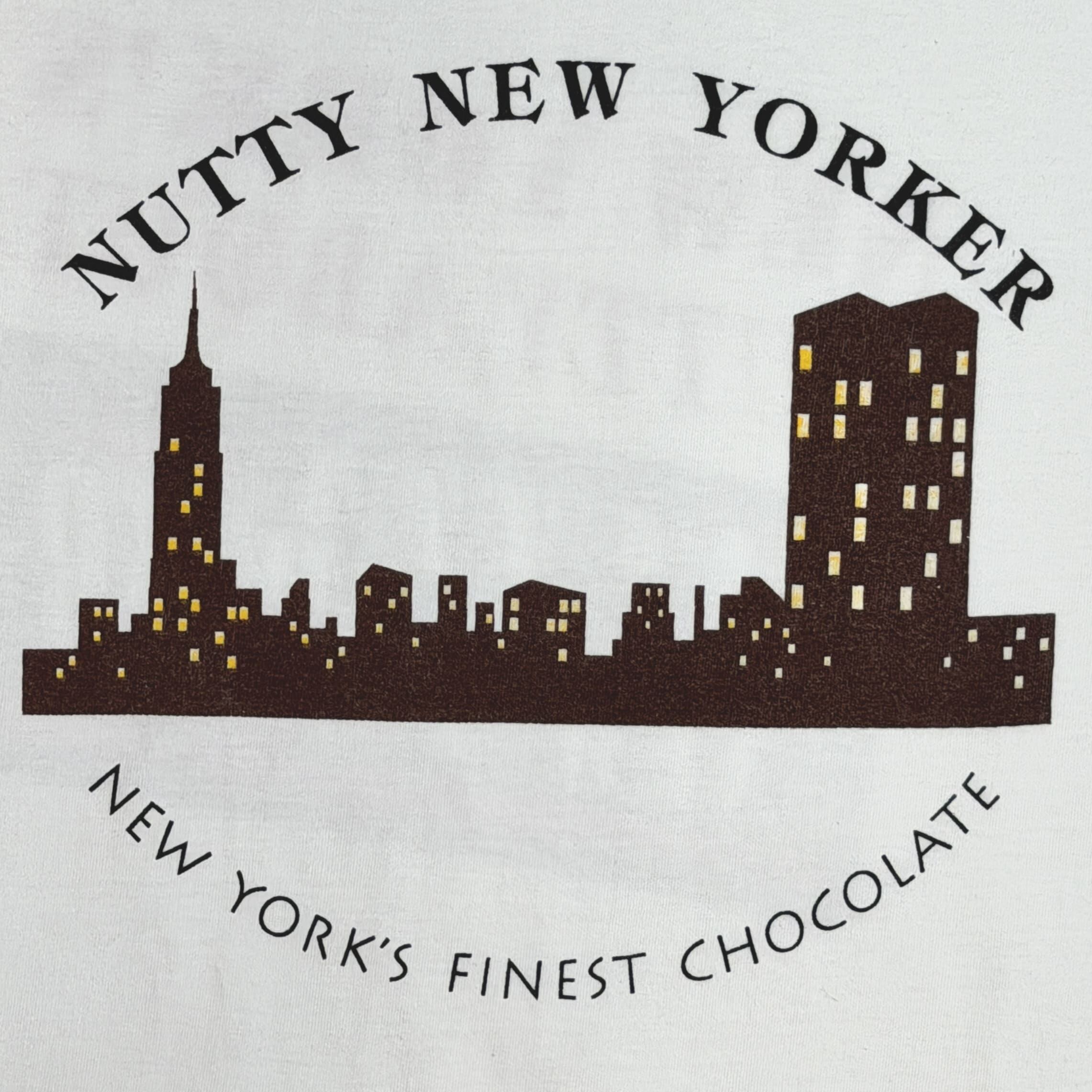 ・フロントプリントは、雑誌『The New Yorker(ザ・ニューヨーカー)』のロゴのパロディで、「NEW YORK'S NUTTY ABOUT...(ニューヨークは〜に夢中)」というフレーズと、お菓子の「Nutty(ナッツ入りの/狂ったような)」を掛けたダブルミーニングのジョークのきいたデザイン、バックプリントはエンパイアステートビルとツインタワーを含む当時のニューヨークのスカイラインの夜景が描かれており、「NEW YORK'S FINEST CHOCOLATE(ニューヨークで最高のチョコレート)」というコピーが添えられています。レッドとブラウンのグラフィックが映える両A面のデザインです。