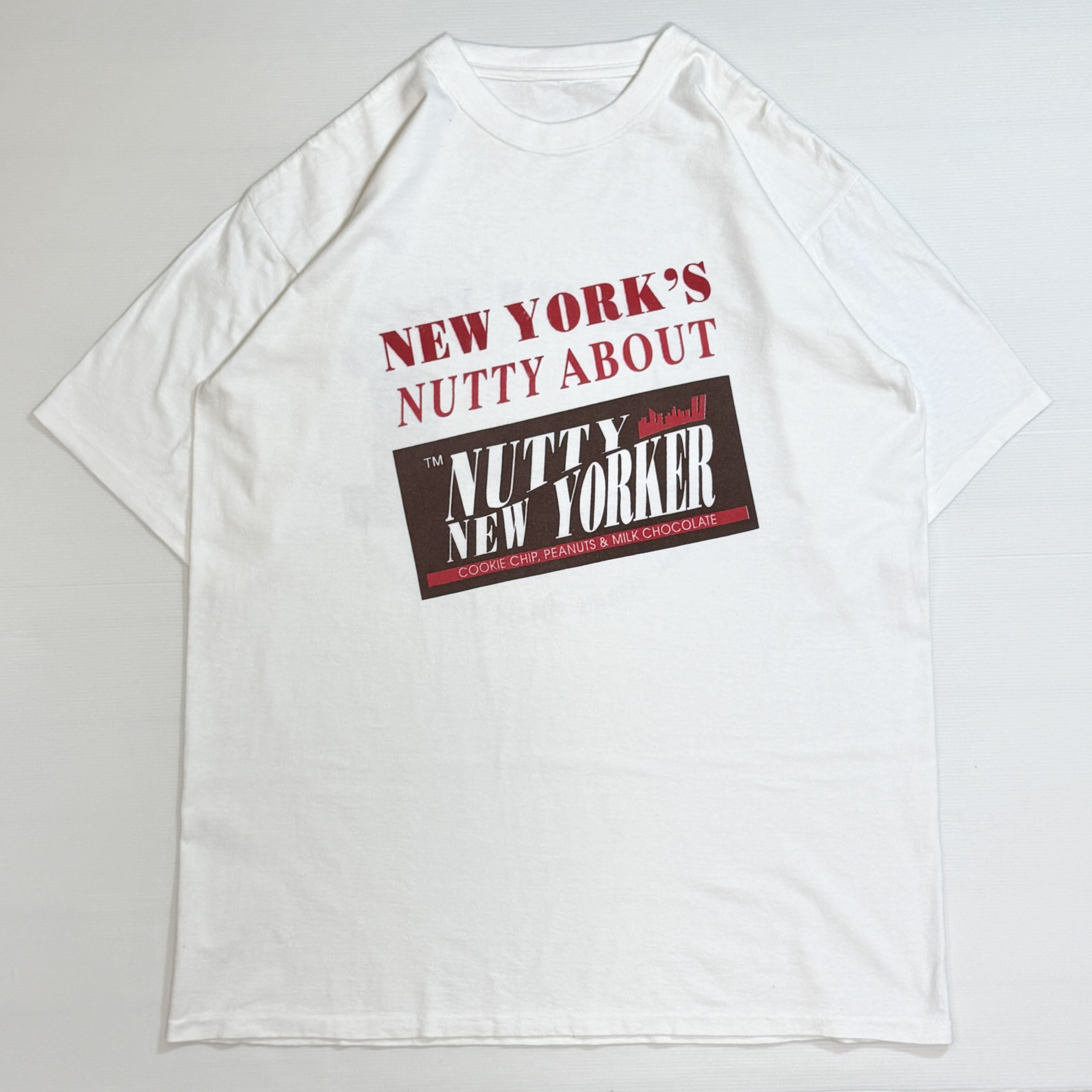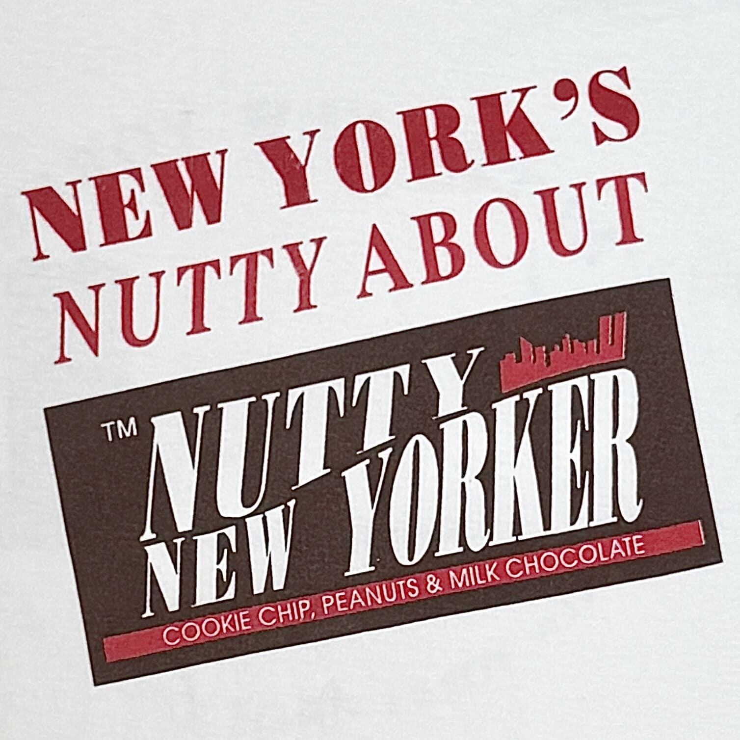 ・ニューヨークで販売されていた「NUTTY NEW YORKER」というチョコレート(クッキーチップ、ピーナッツ、ミルクチョコを組み合わせたお菓子)のプロモーション用の企業モノのスーベニアTシャツです。