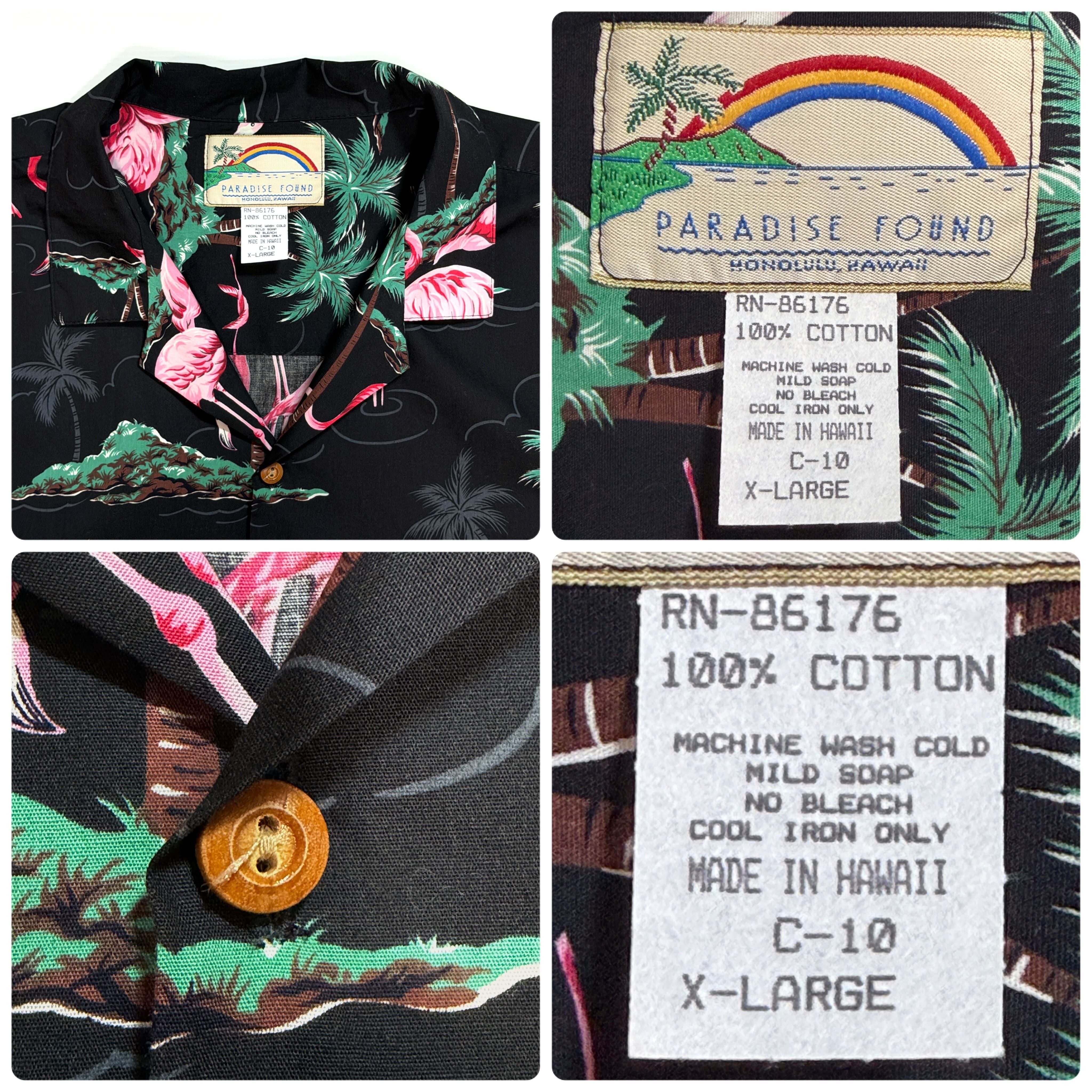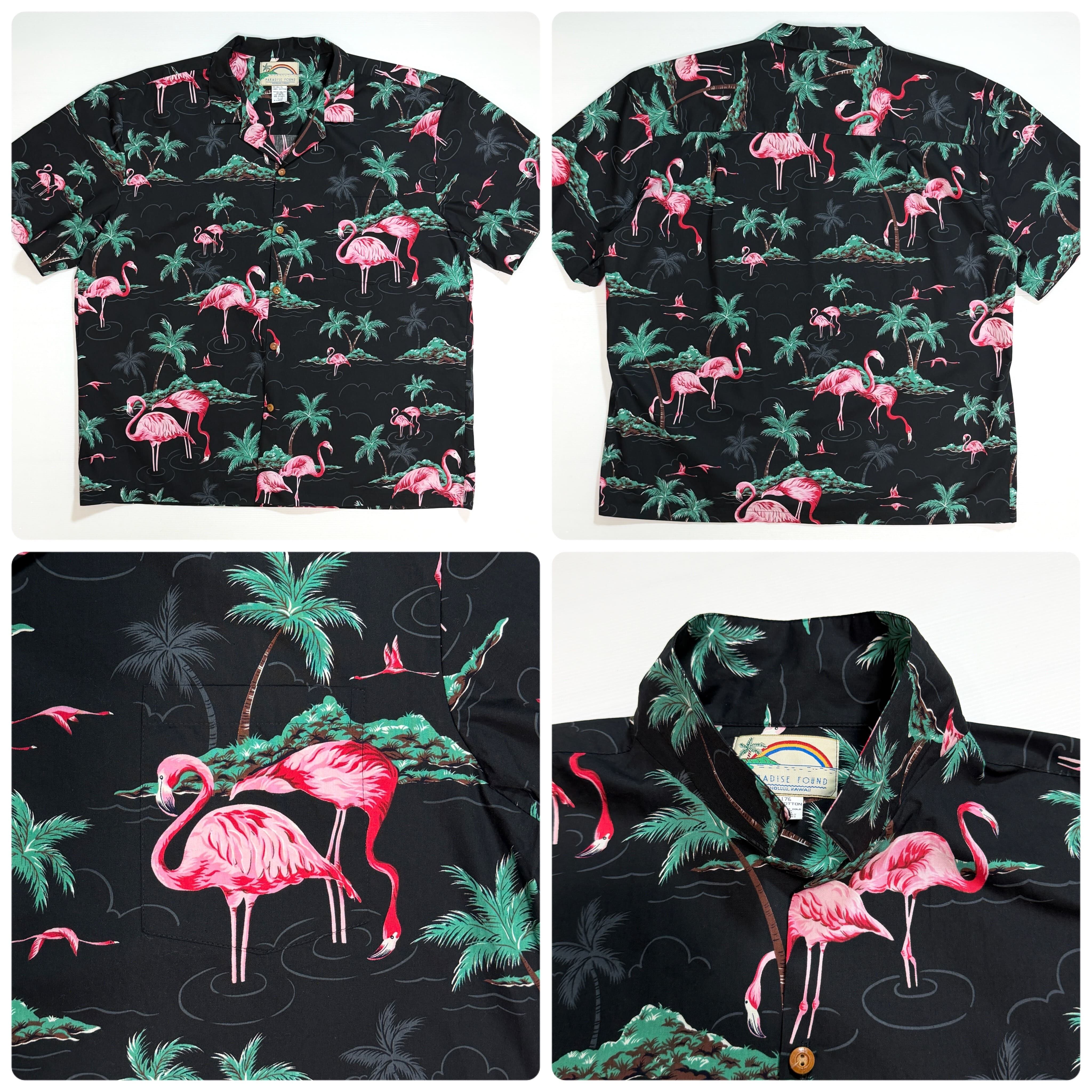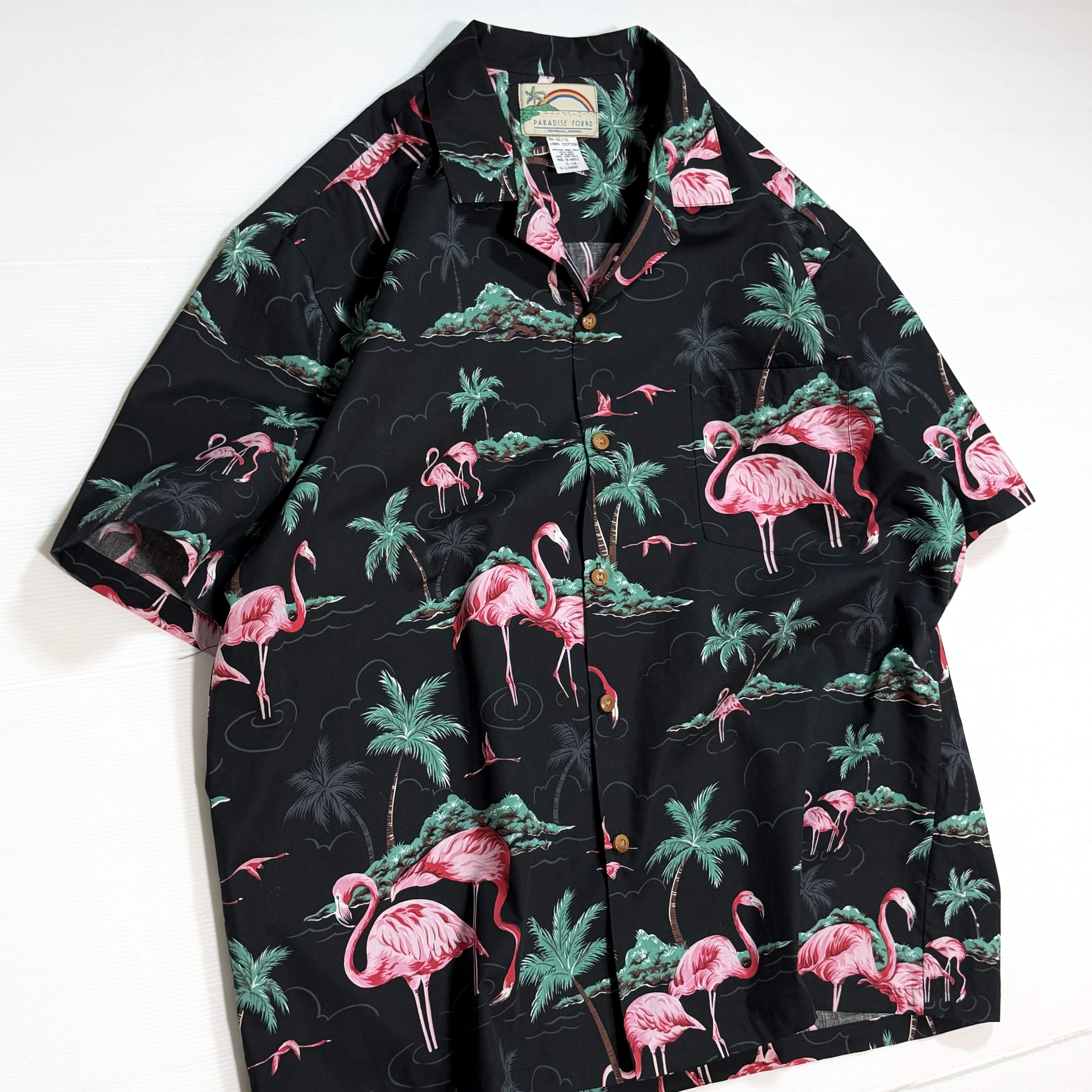 ・1970年代後半から続くハワイの名門ブランドPARADISE FOUND(パラダイス ファウンド)のフラミンゴ柄オープンカラーアロハシャツです。