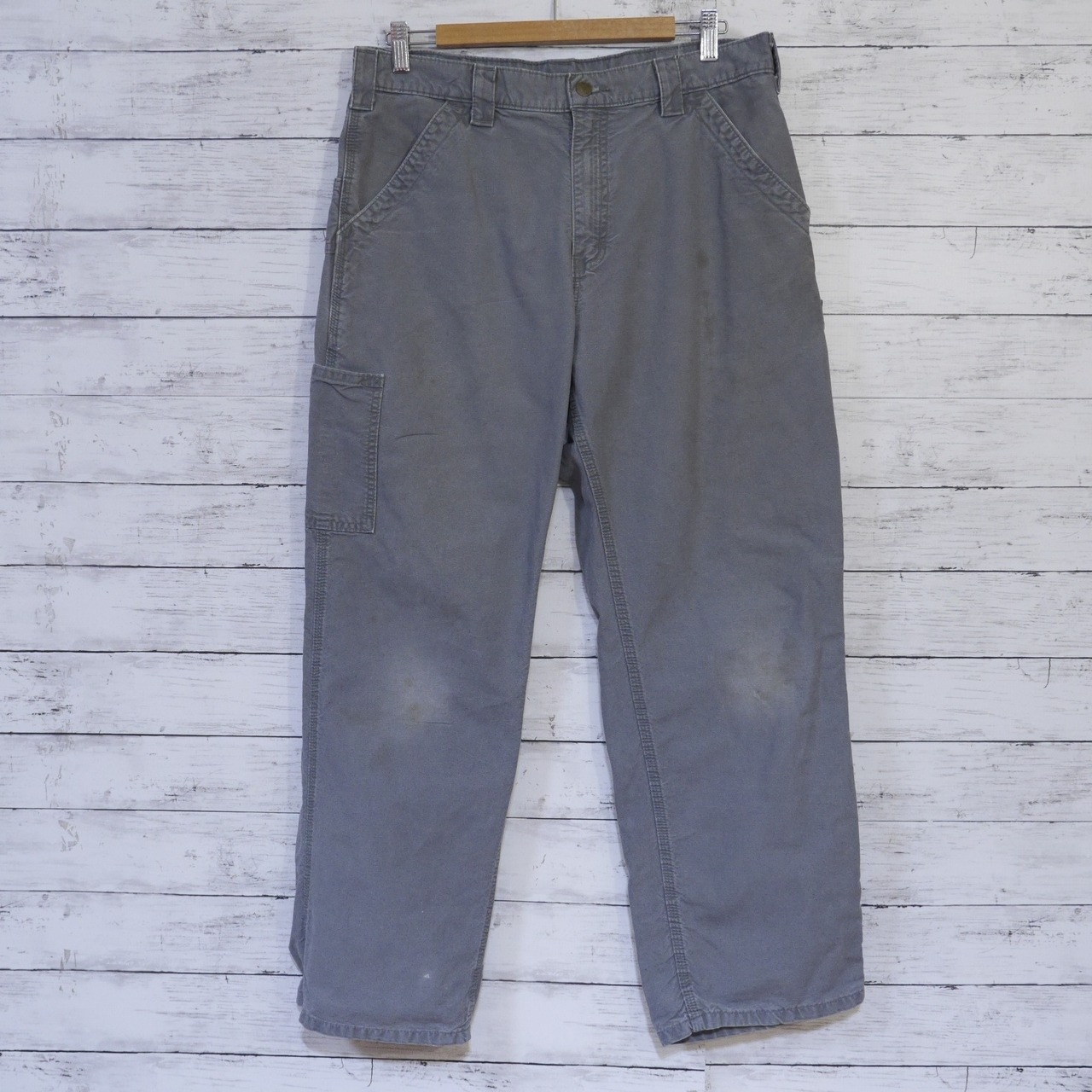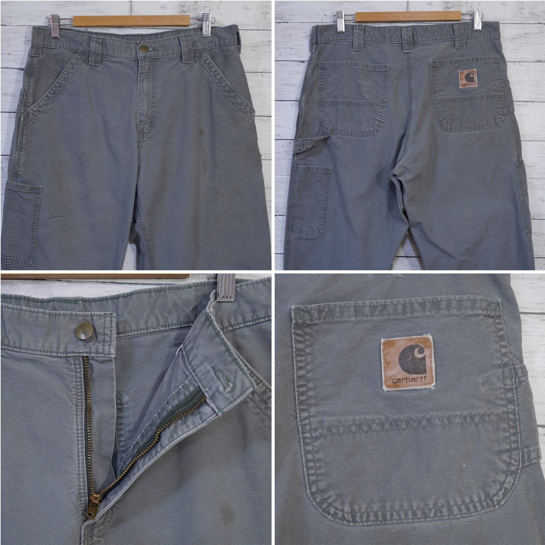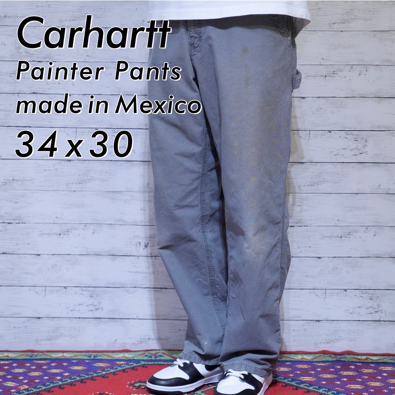 Carhartt カーハート W34 L30 ゴールデンサイズ グレー レザーピスネーム ライトオンス ダック地 ペインターパンツ メキシコ製 20202657