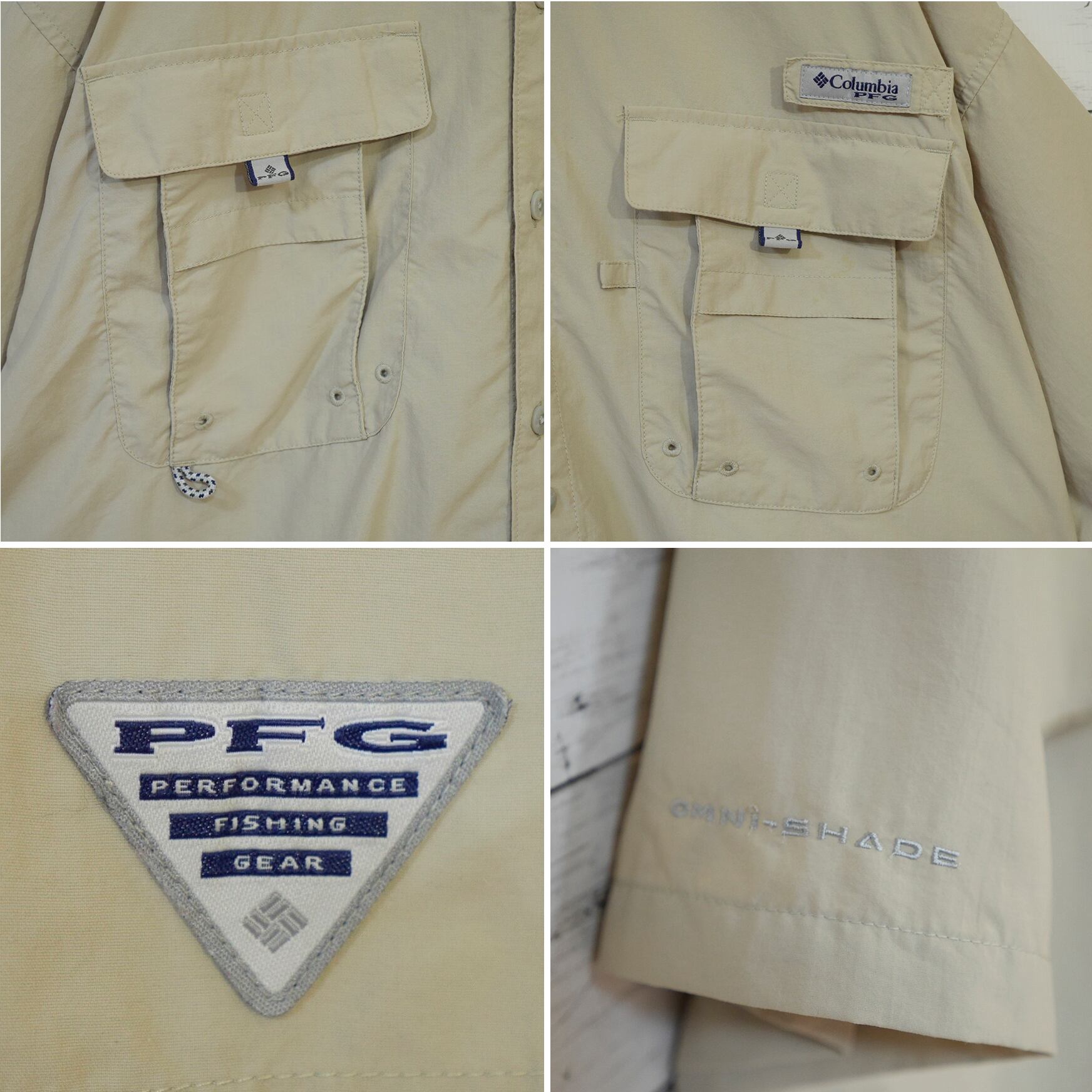 Columbia コロンビア ダブルフラップポケット 半袖 ボタンダウンシャツ BDシャツ PFG フィッシングシャツ MEN'S L ベージュ COLUMBIA PFG PERFORMANCE FISHING GEAR 20202695 | June