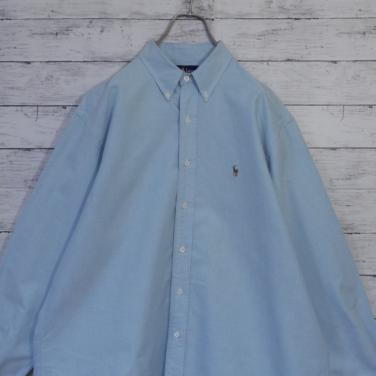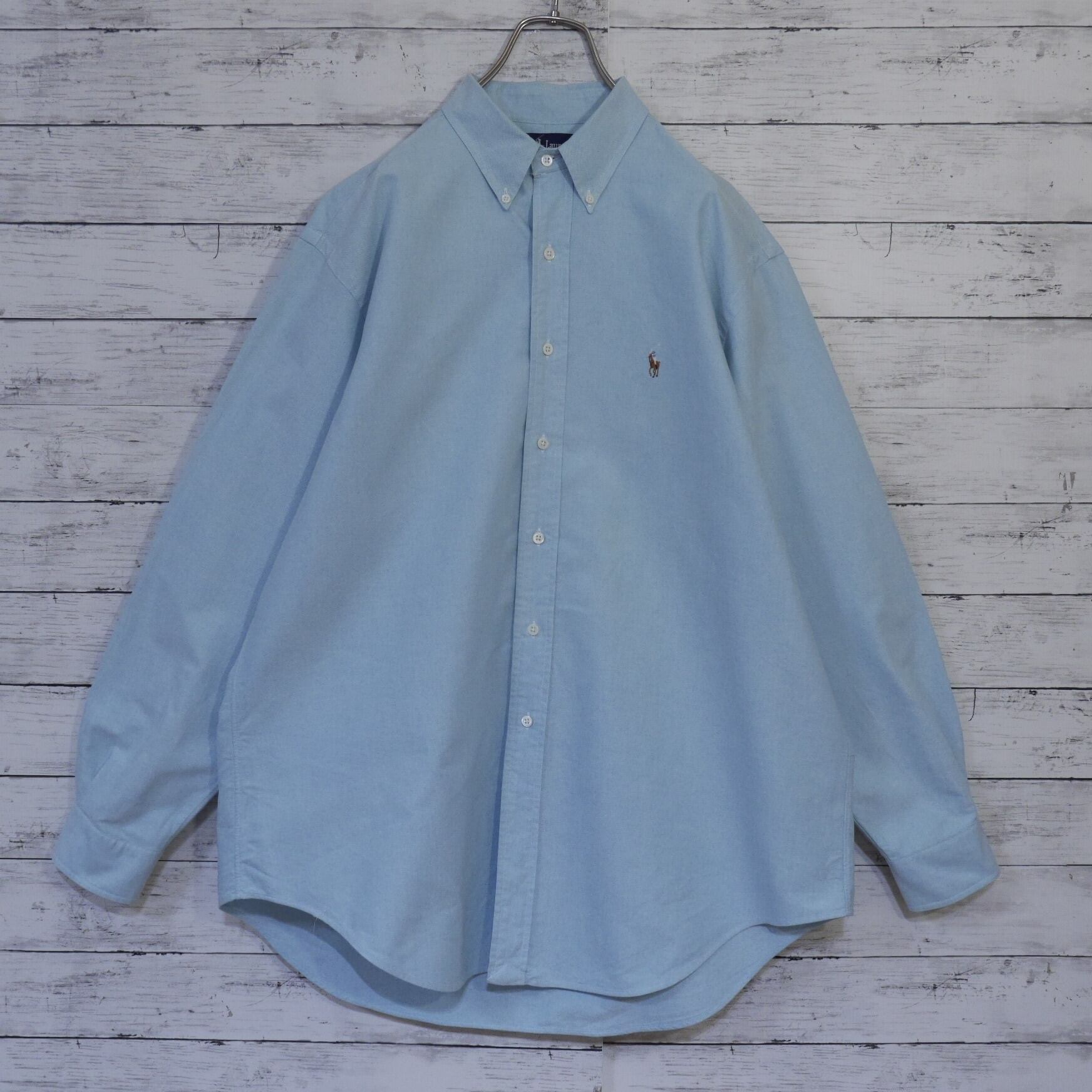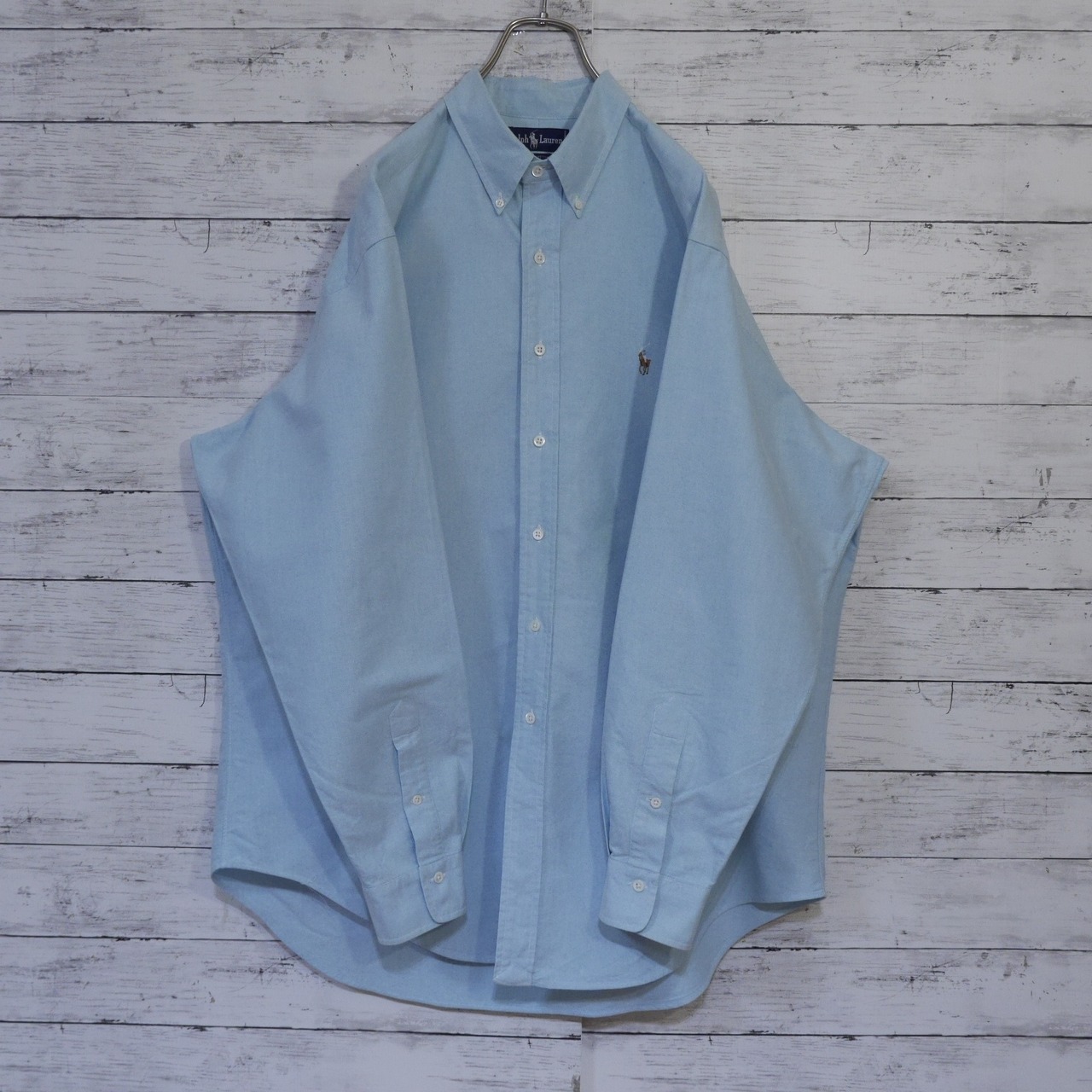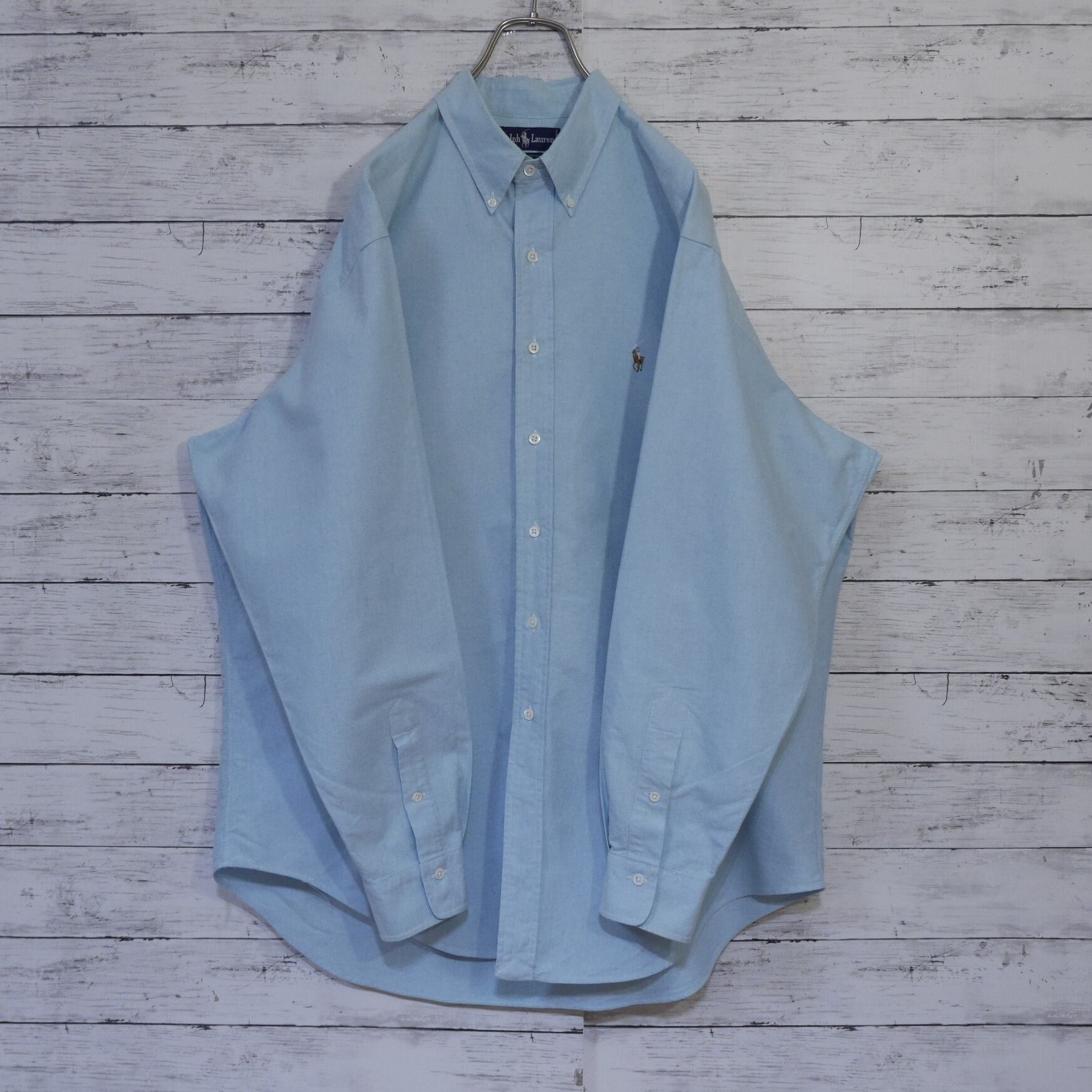 Polo Ralph Lauren ポロラルフローレン 厚手 無地 ポニー刺繍ロゴ 長袖 ボタンダウンシャツ BDシャツ ライトブルー 水色 17 1/2 - 35 XL 100% COTTON 20202710