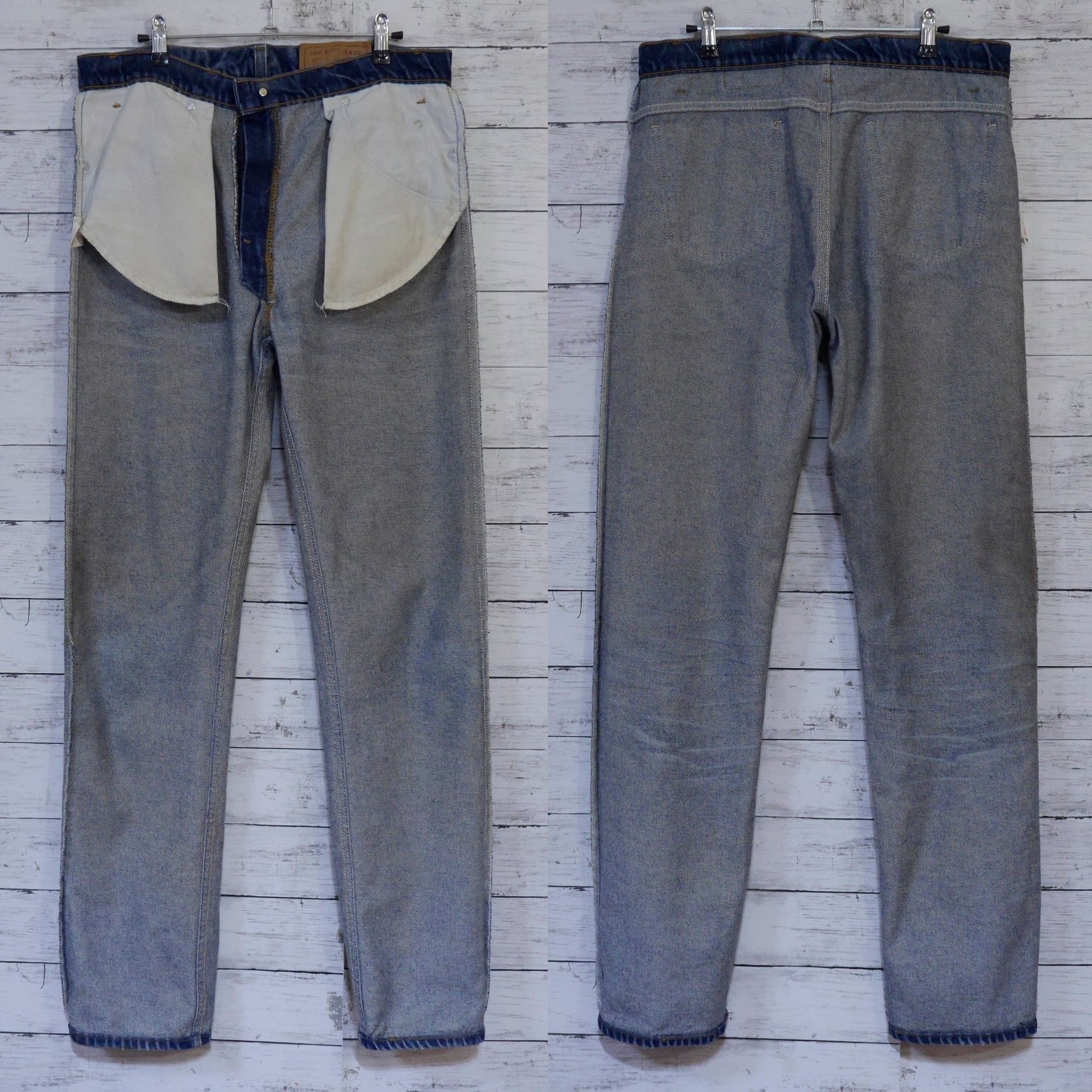 ・1993年10月USA製、トップボタン裏刻印575、リーバイスジップ、オレンジタブ、紙パッチ、裾上げをしてないオリジナルレングス