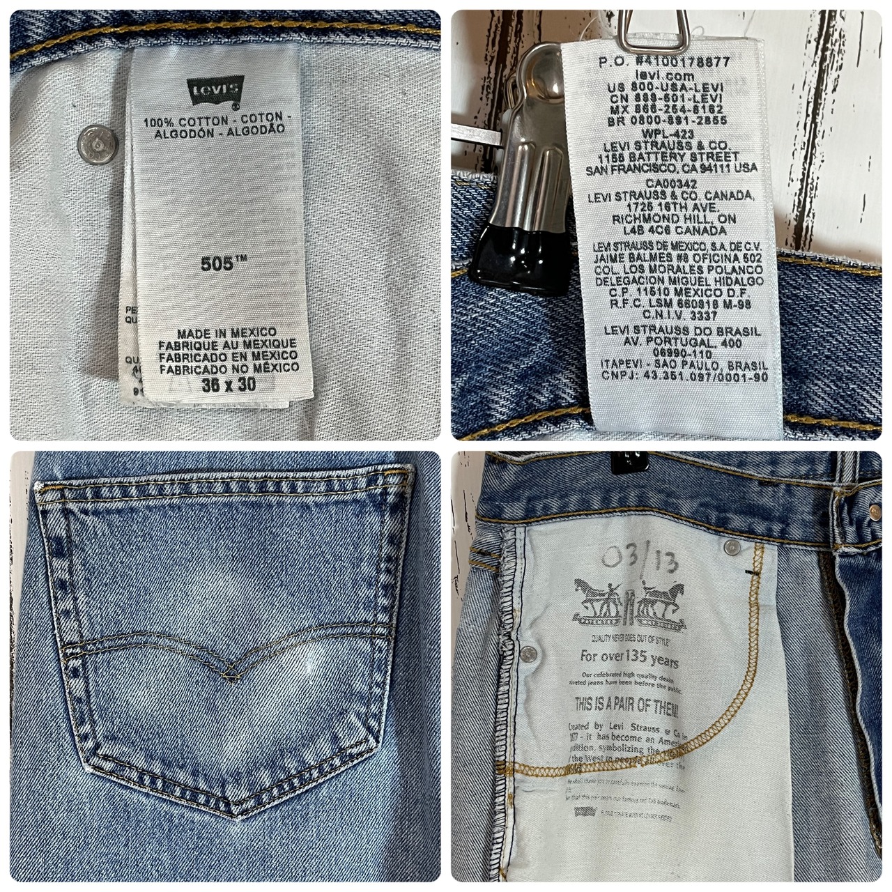 メキシコ製 Levi's リーバイス 505 W36 L30 ジーンズ デニムパンツ レギュラー ストレートフィット ワイドバギー インディゴブルー オリジナルレングス 20202887 | June
