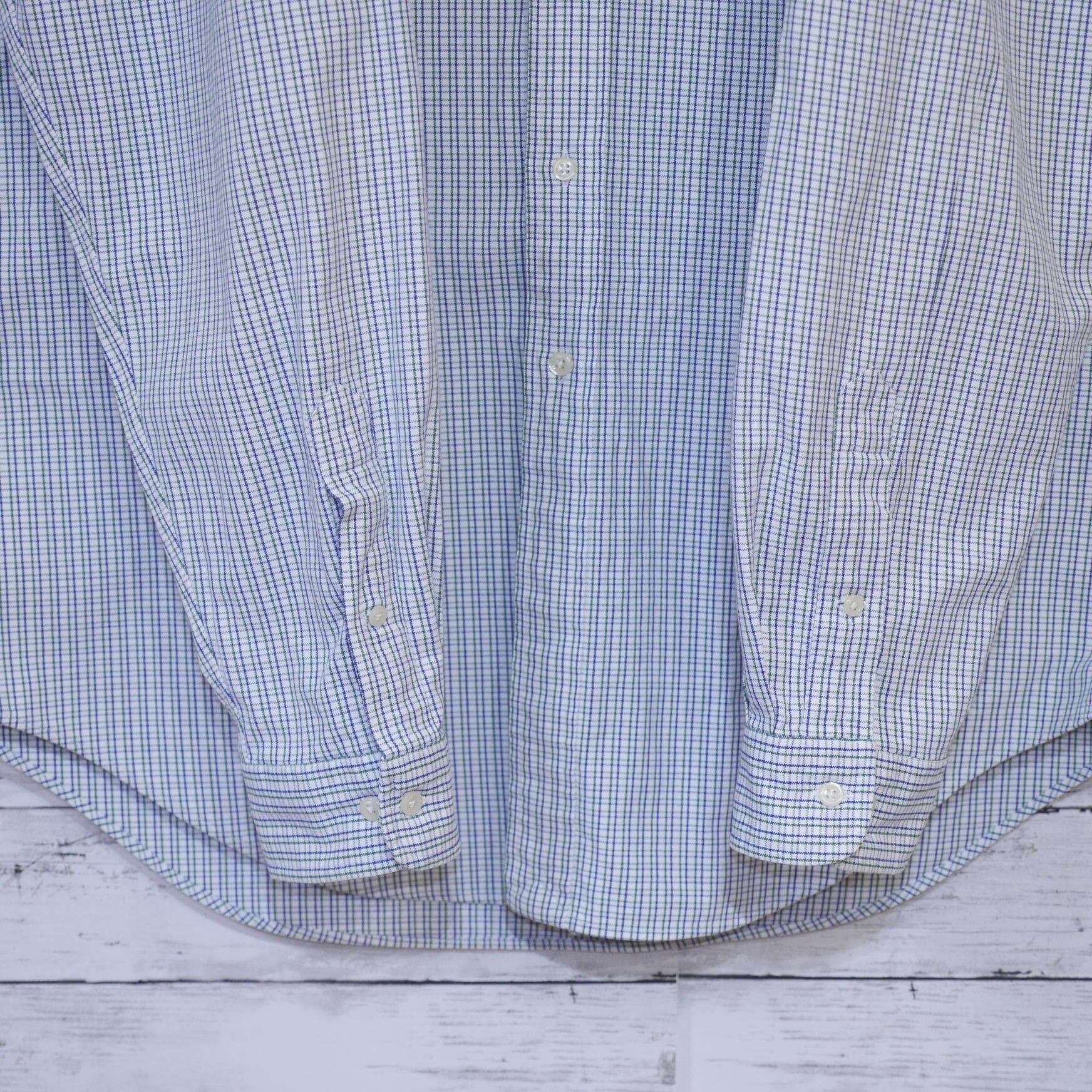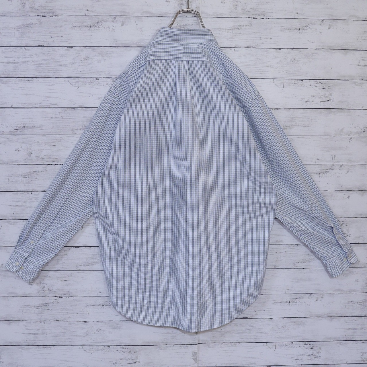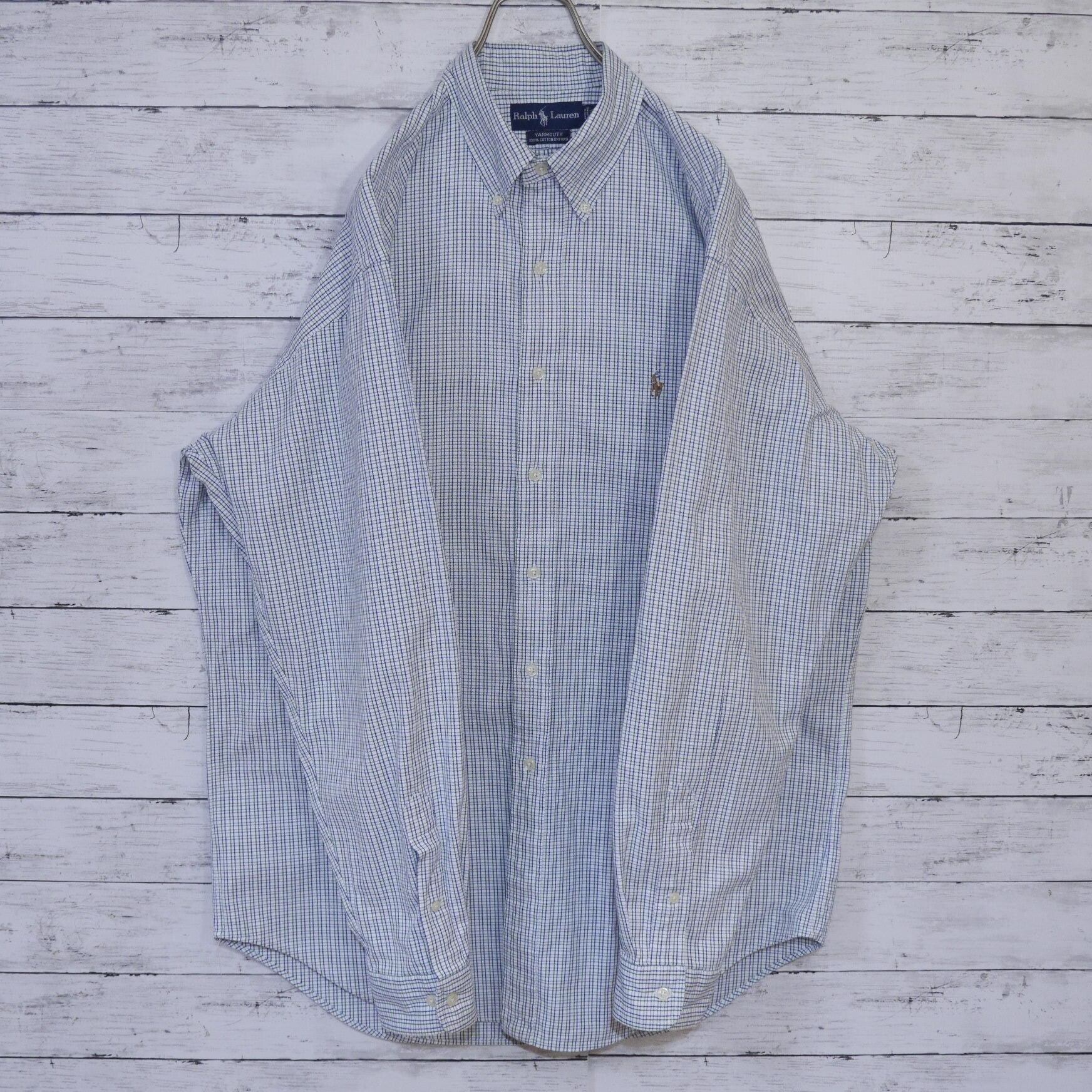 Polo Ralph Lauren ポロラルフローレン 厚手 ポニー刺繍ロゴチェック長袖シャツ BDシャツ ボタンダウンシャツ YARMOUTH 100% COTTON OXFORD 16 1/2 34/35 L-XL相当 ホワイトネイビー 20201438