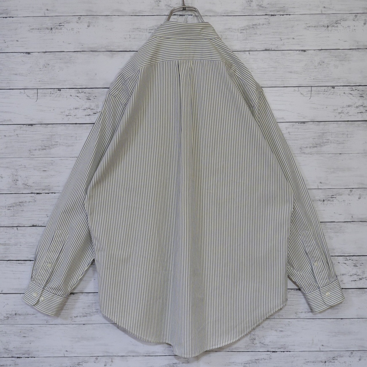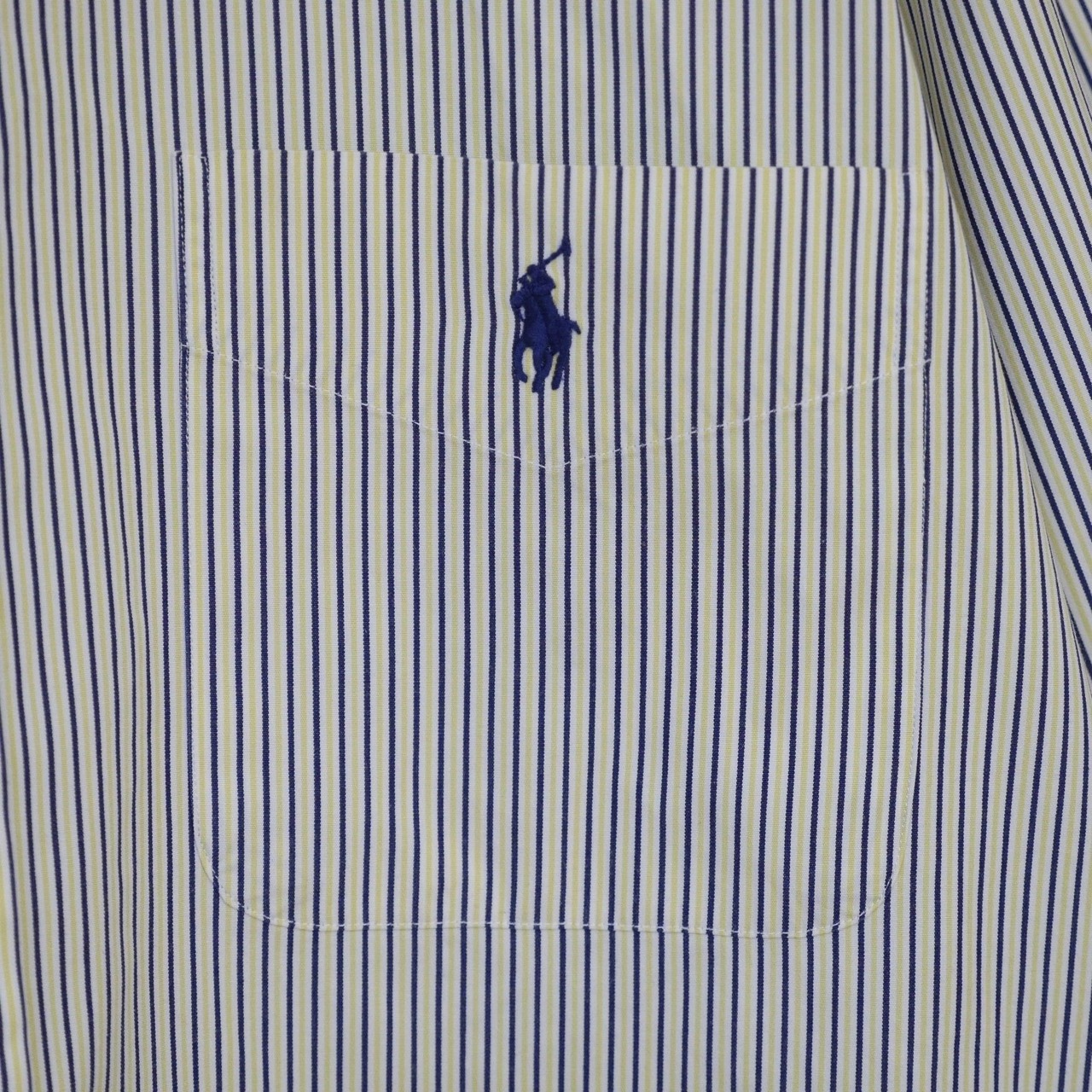 美品 Polo Ralph Lauren ポロラルフローレン 刺繍ロゴポケット ストライプ 長袖シャツ ボタンダウンシャツ BDシャツ 16 32/33 Lサイズ ホワイト ネイビー イエロー CLASSIC FIT クラシックフィット 20201584
