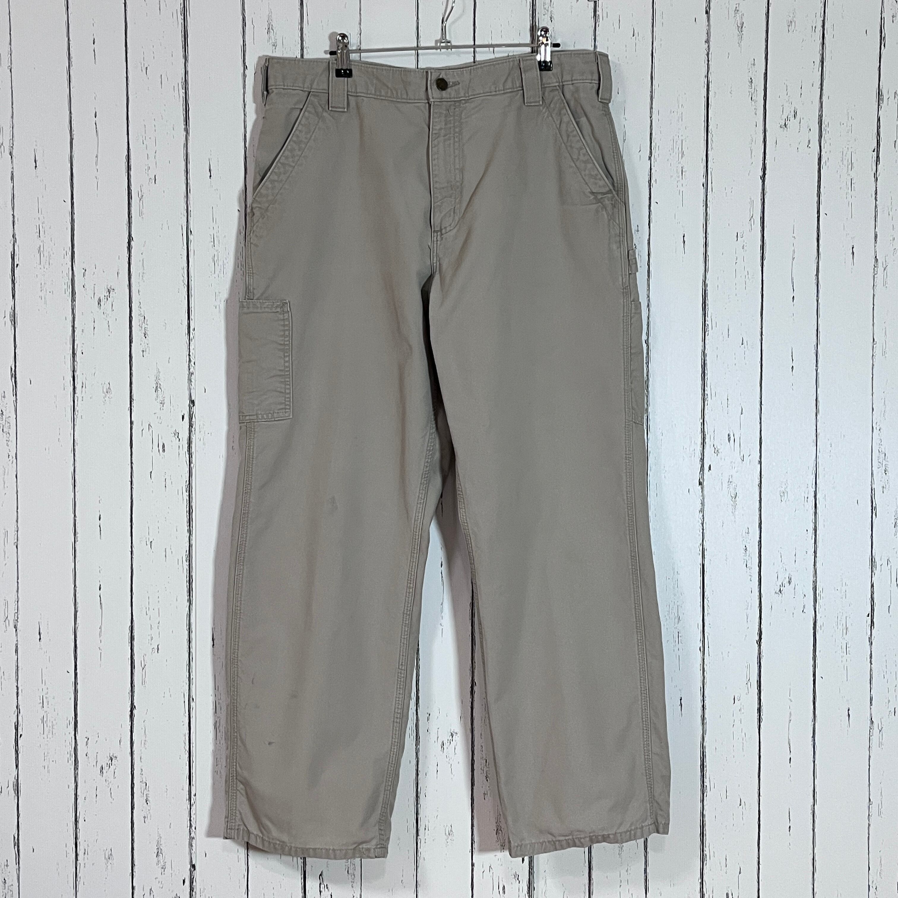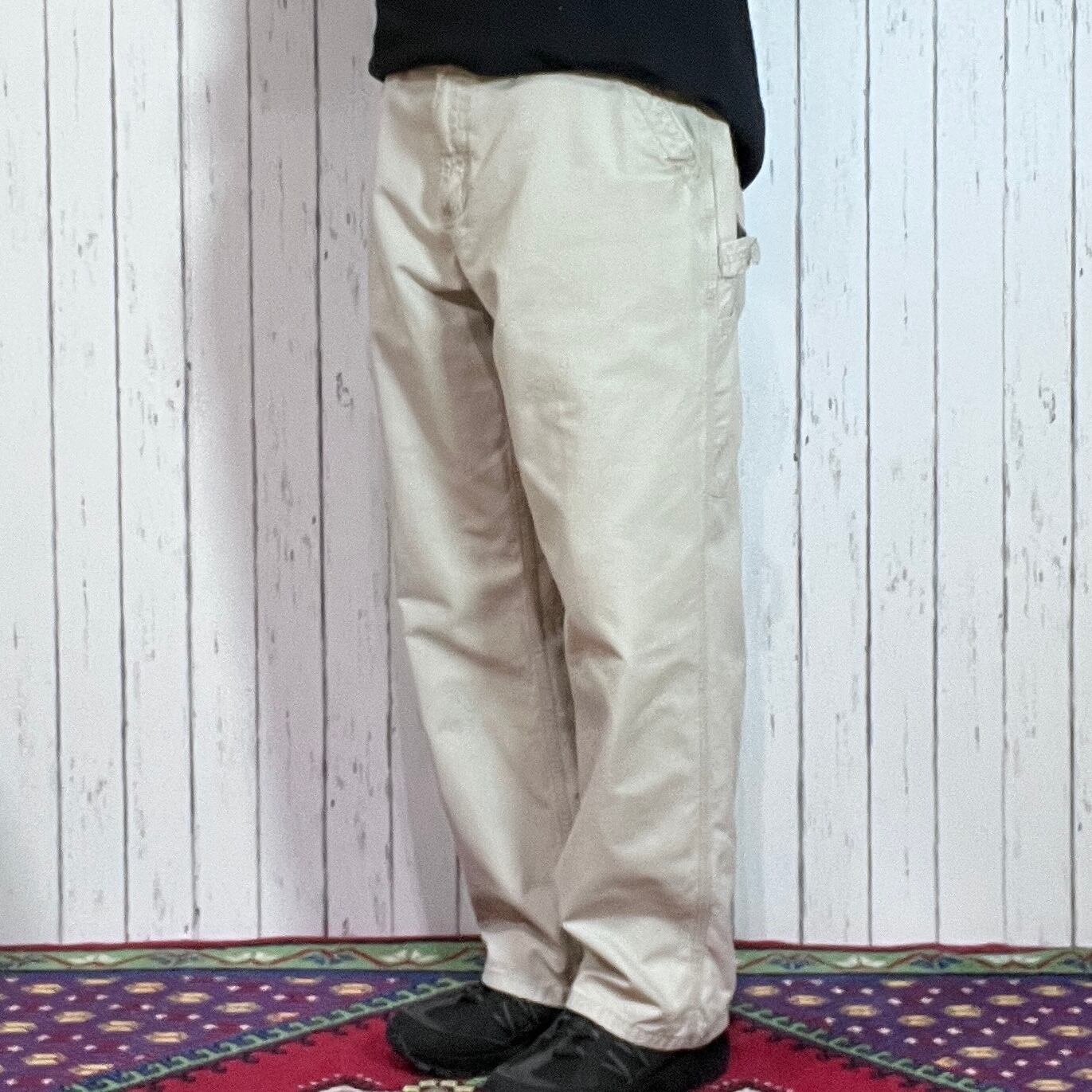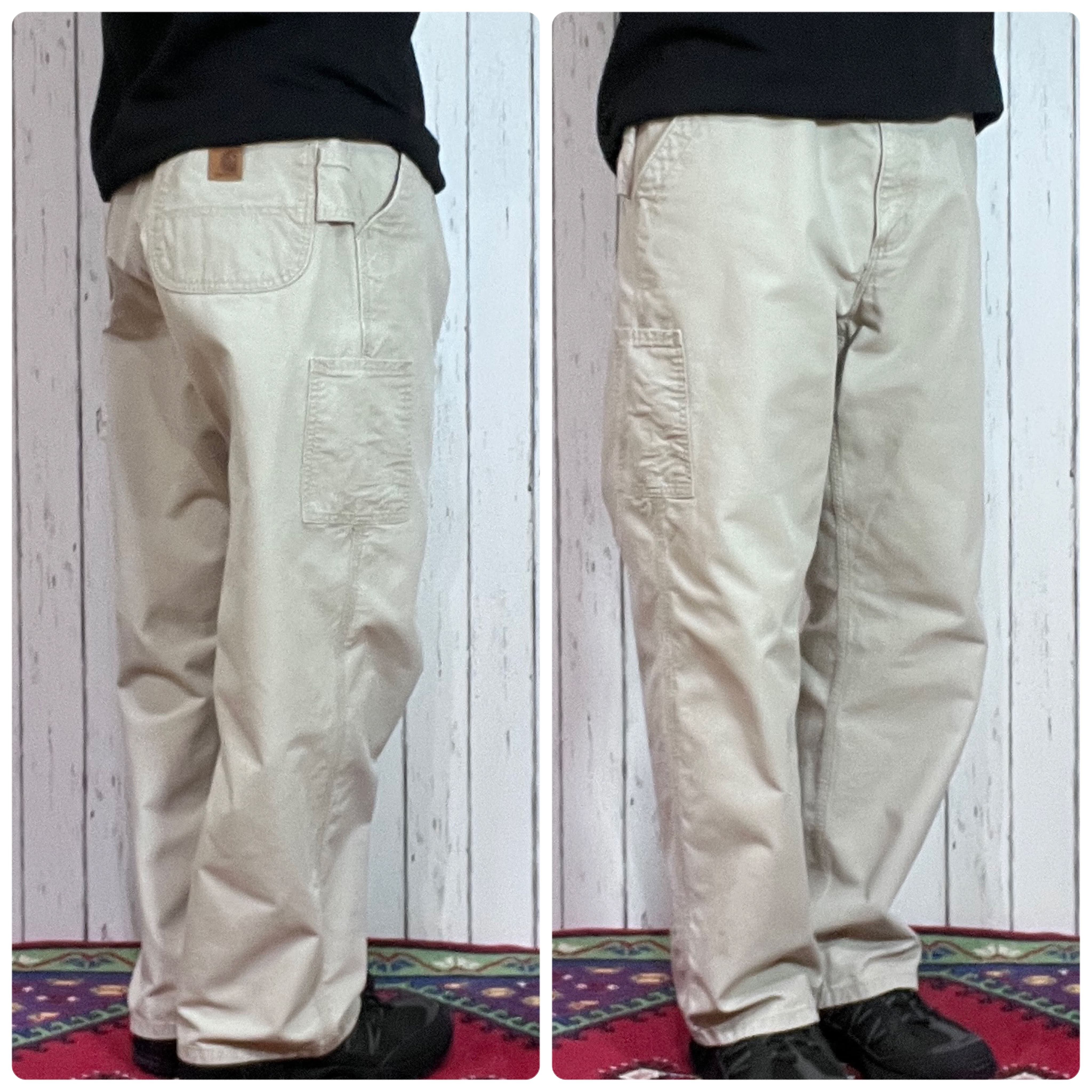 00s カーハート Carhartt W35 L30 ワンポイントレザーピスネーム ライトオンス ダック地 ペインターパンツ ワークパンツ メンズ Loose Original Fit ルーズフィット ワイドバギーパンツ ライトベージュ p24123009