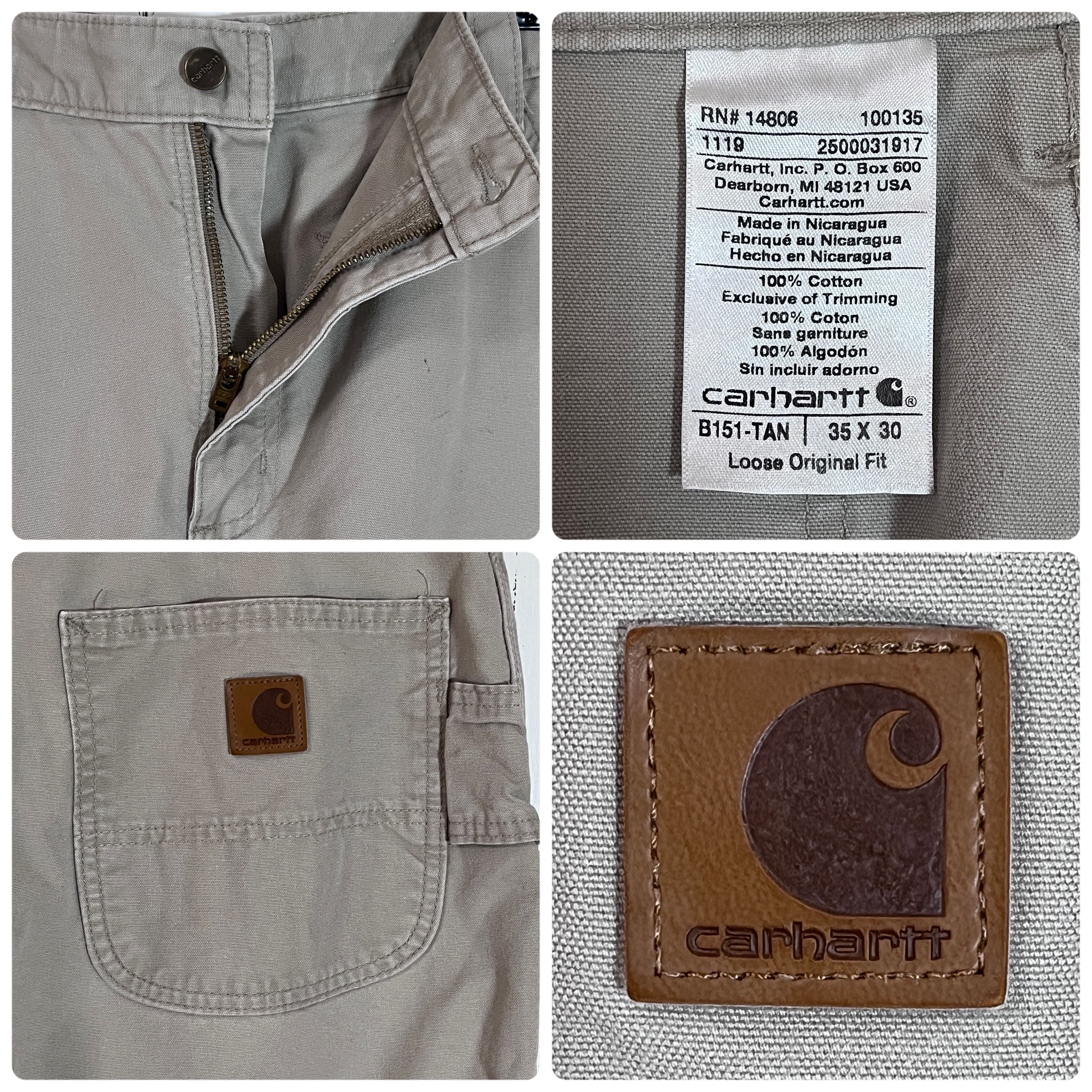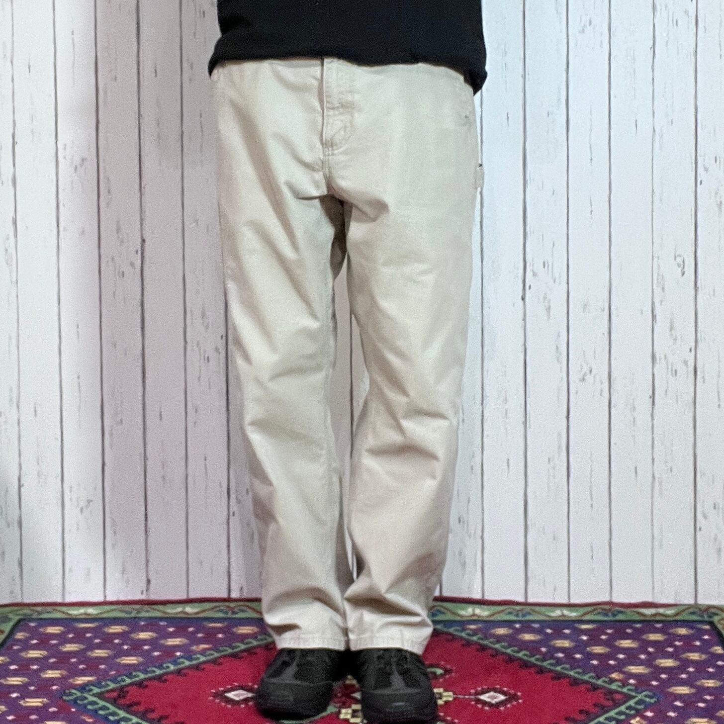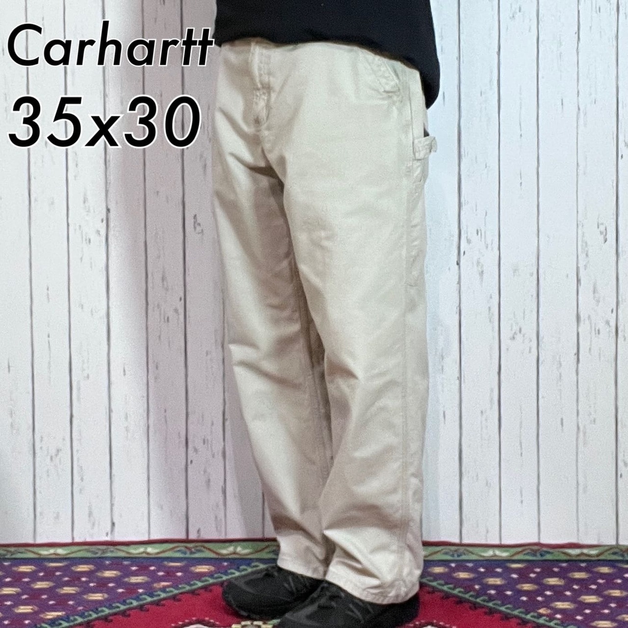 00s カーハート Carhartt W35 L30 ワンポイントレザーピスネーム ライトオンス ダック地 ペインターパンツ ワークパンツ メンズ Loose Original Fit ルーズフィット ワイドバギーパンツ ライトベージュ p24123009