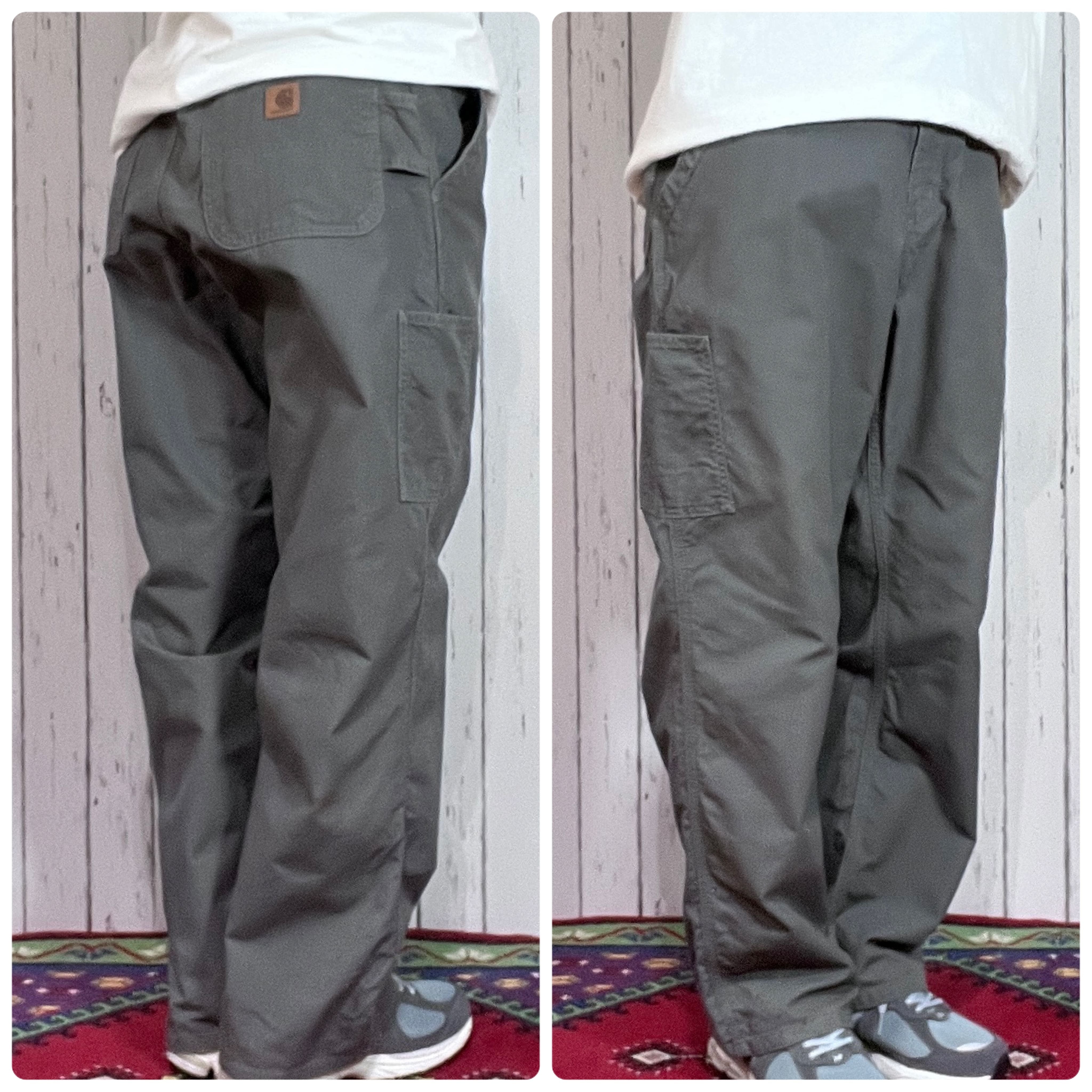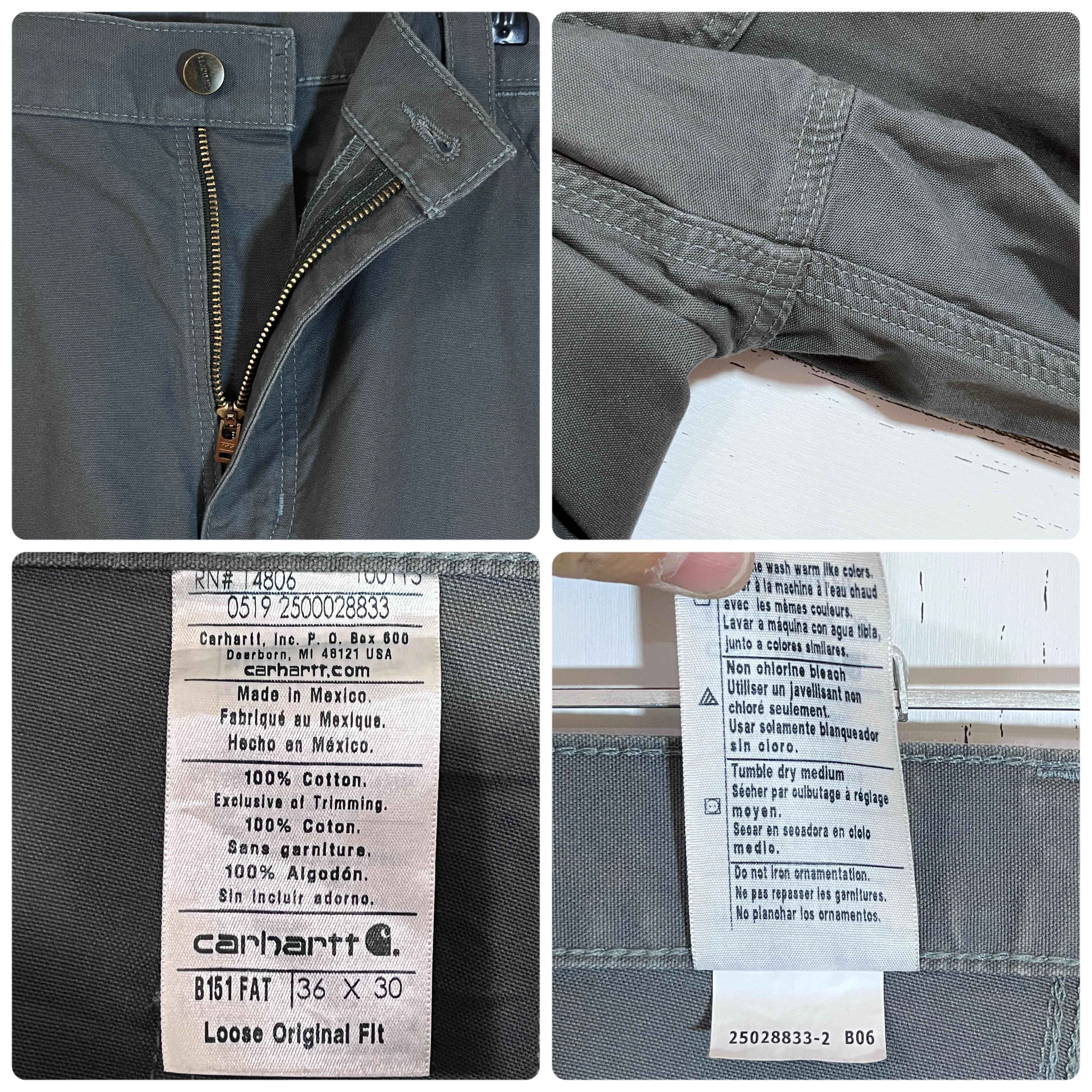 Carhartt カーハート W36 L30 B151 FAT グレー メキシコ製 ワンポイントレザーピスネーム ライトオンス ダック地 ペインターパンツ ワークパンツ メンズ ボトムス Loose Original Fit ルーズフィット ワイドバギー ゴールデンサイズ オリジナルレングス p24123021