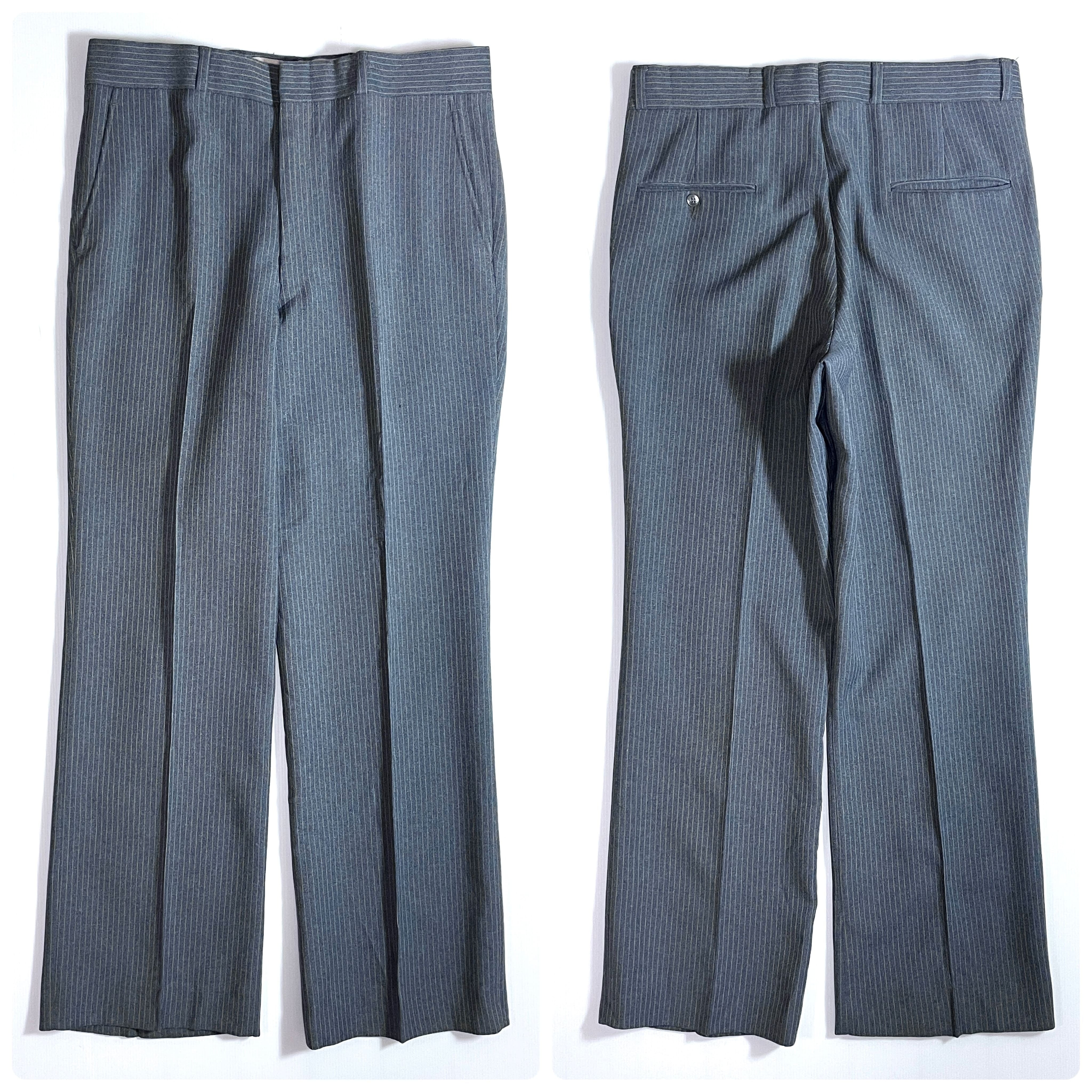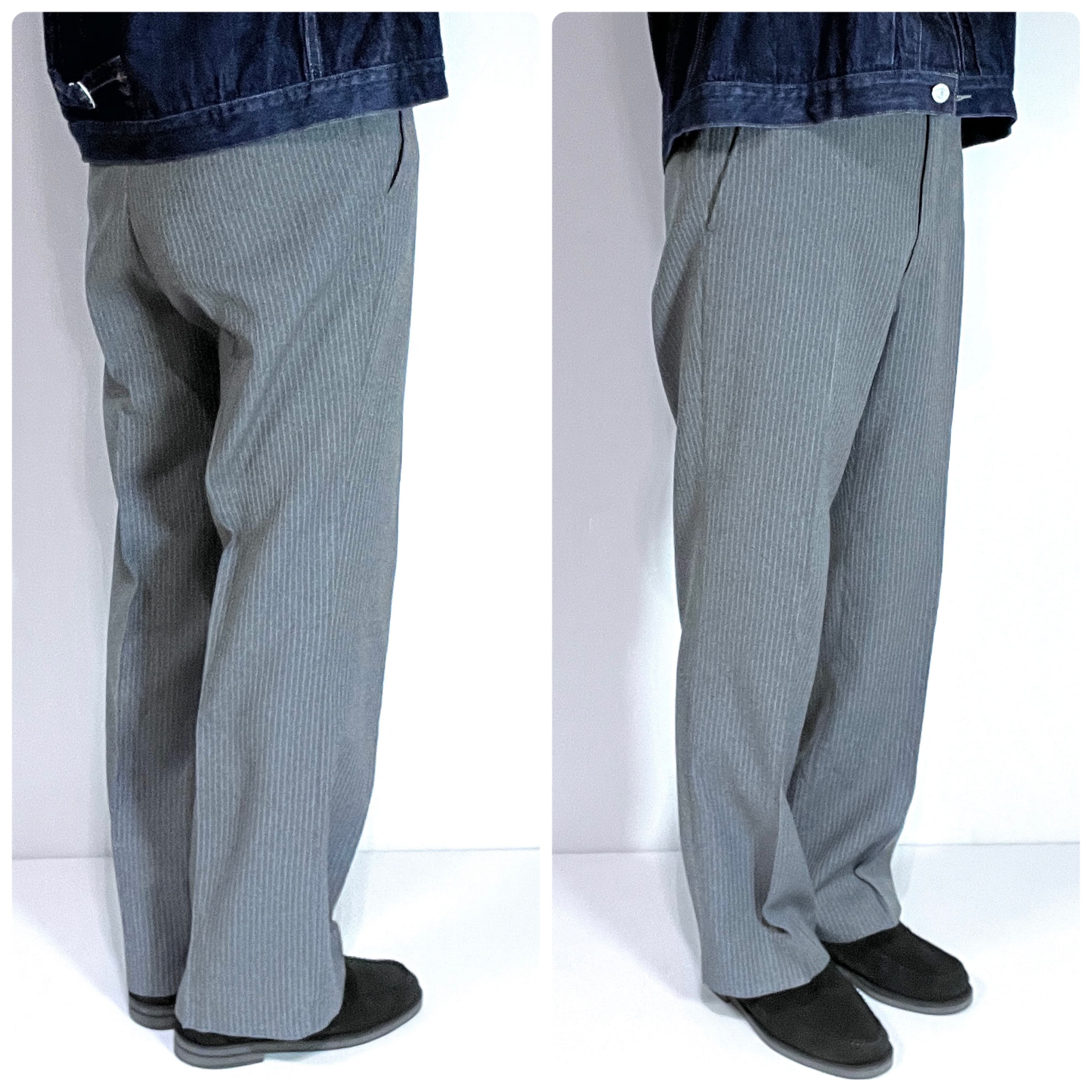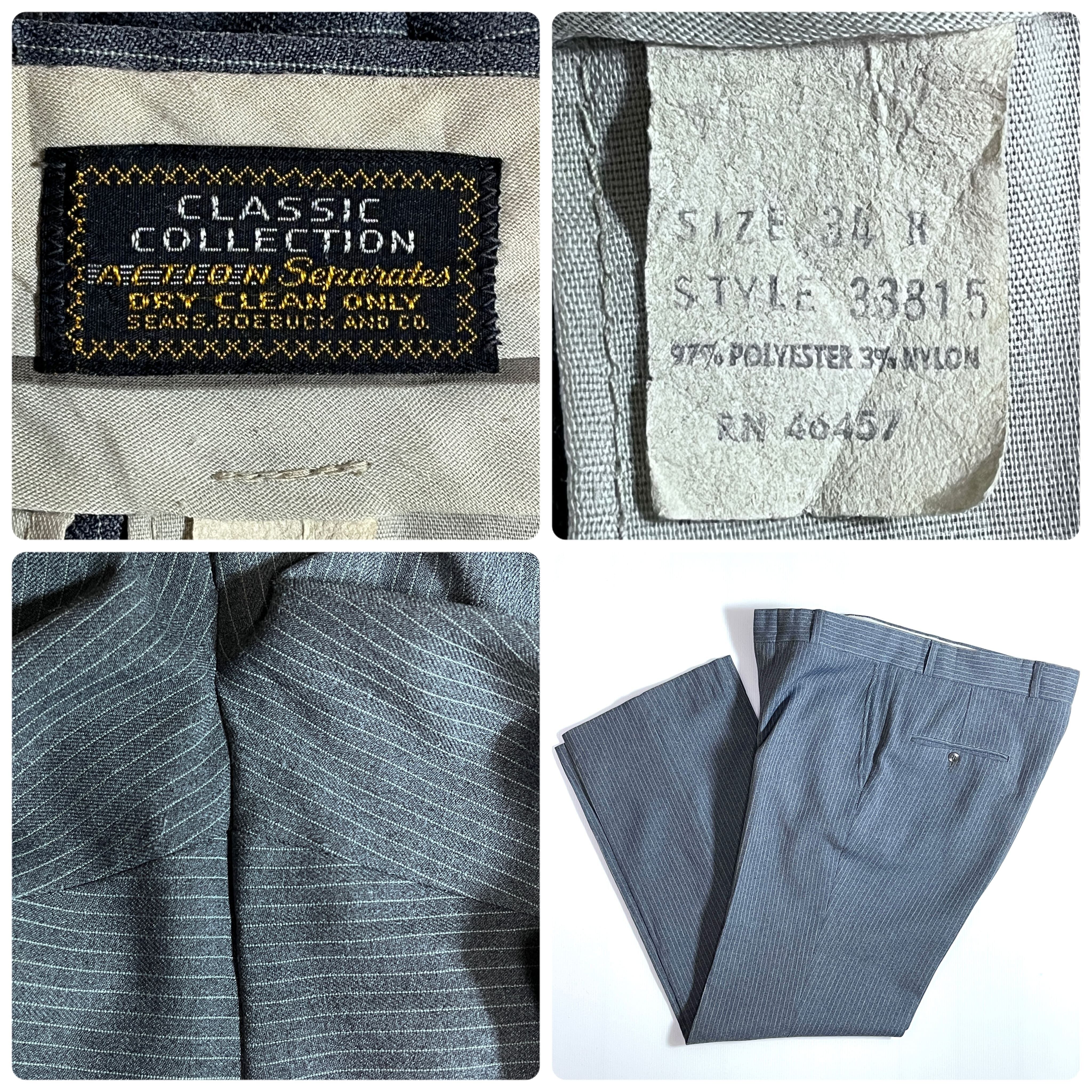 70s SEARS ROEBUCKS AND CO. シアーズ ローバックス CLASSIC COLLECTION ACTION Separates ヴィンテージ ストライプ アクション スラックス 34 R(実寸W34x L30) グレー ホワイト ストレッチ スーツパンツ チノパン ウールタッチ ポリパン ゴールデンサイズ v24123044 | June